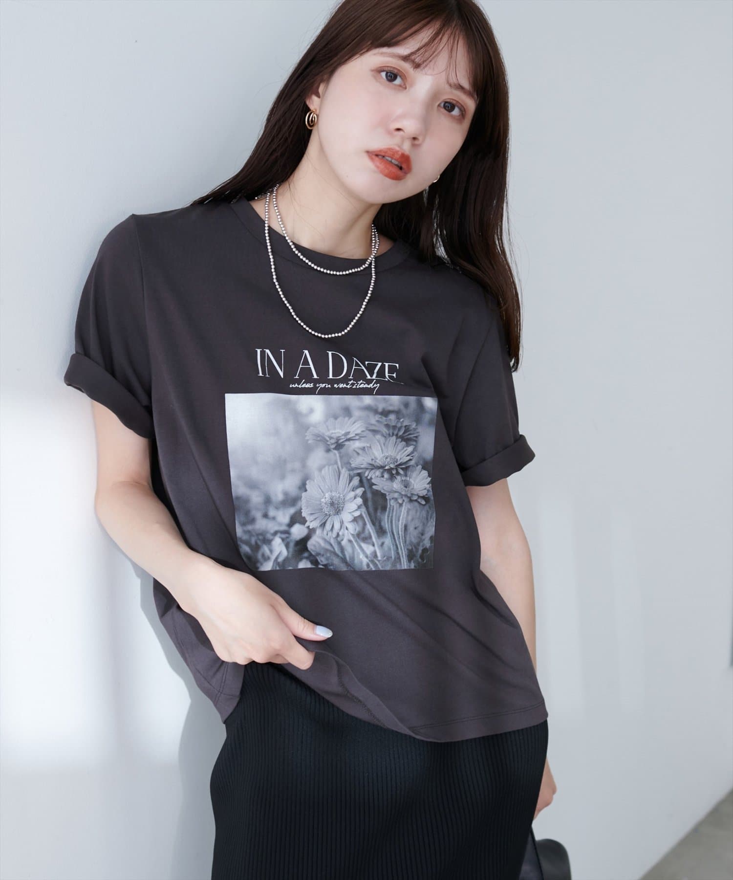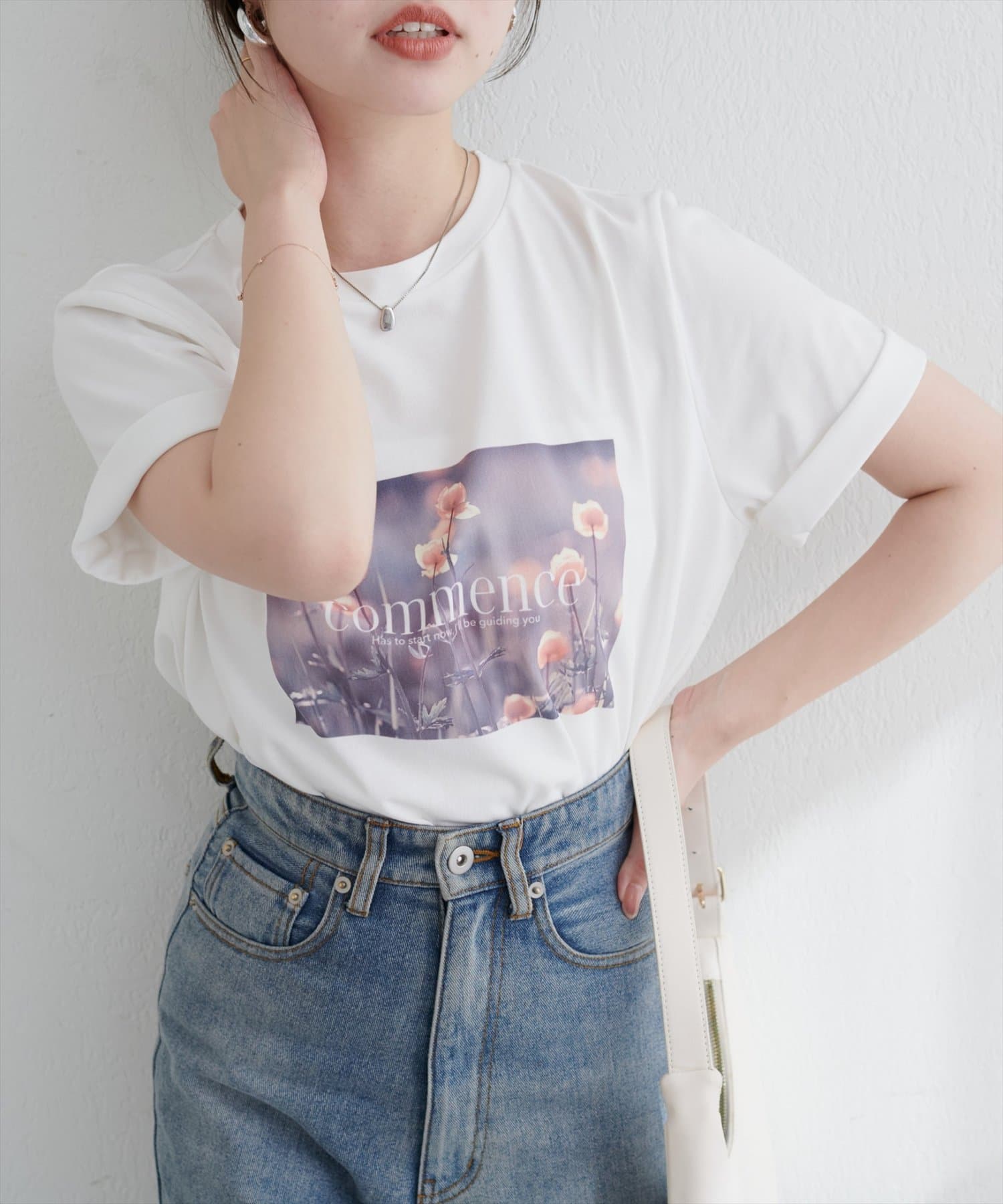 繊細な花々のフォトプリントが、着る人の個性を引き立てるアソートフラワーフォトTシャツ。