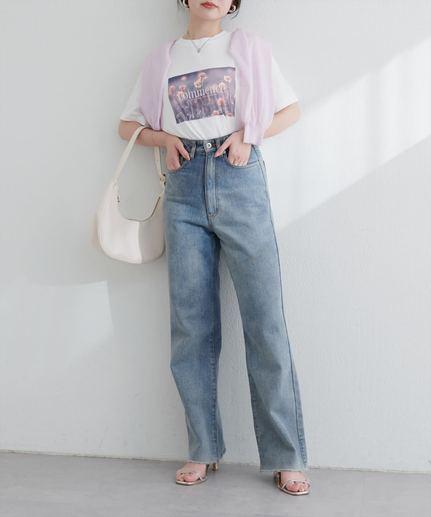 ジャケットやカーディガンを羽織れば、オフィススタイルにも。