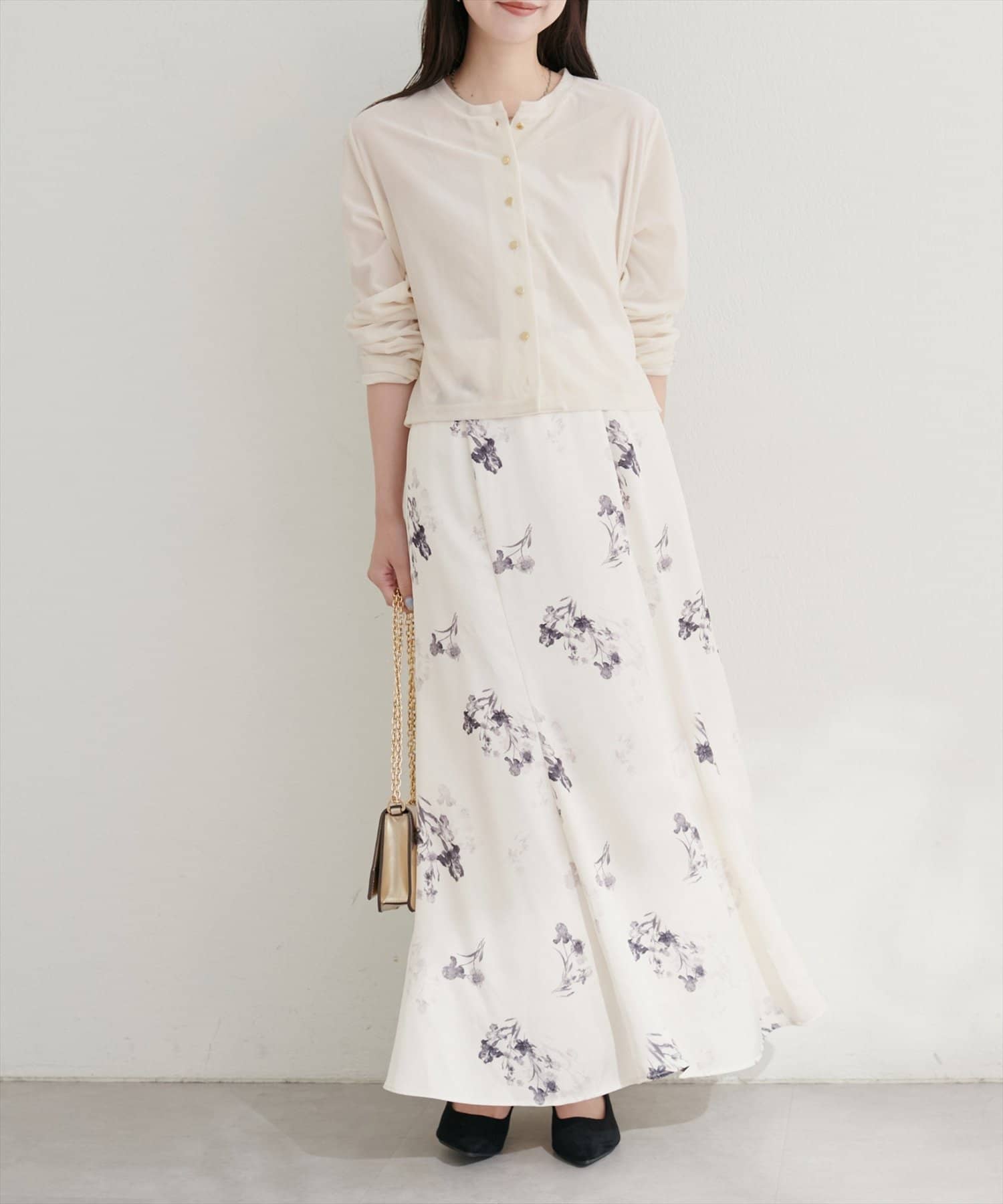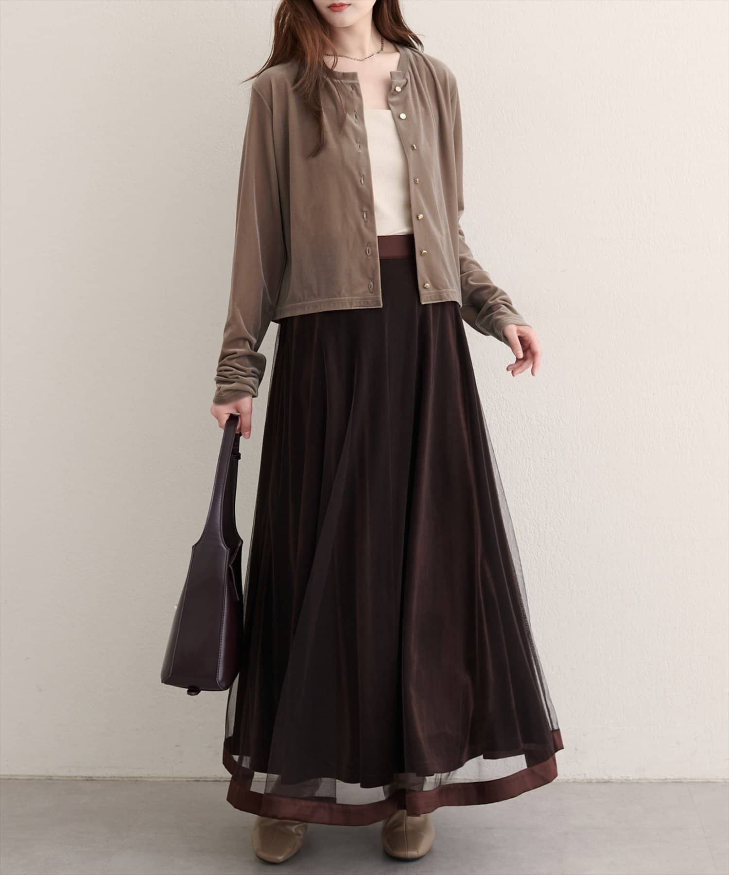 フレアスカートやワンピースと合わせて、上品な大人レディスタイルに。