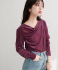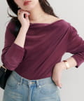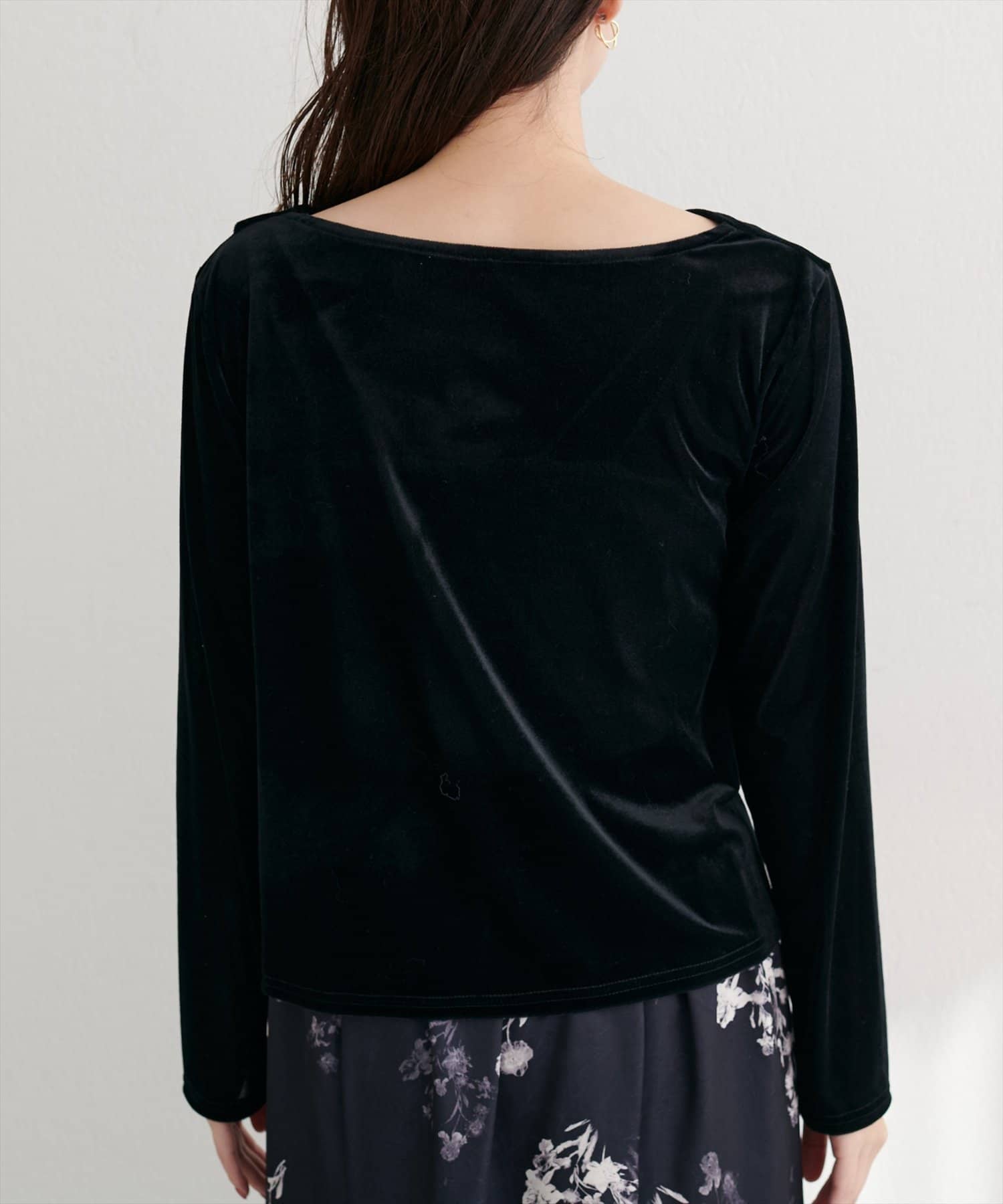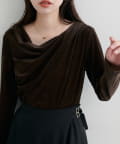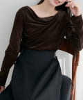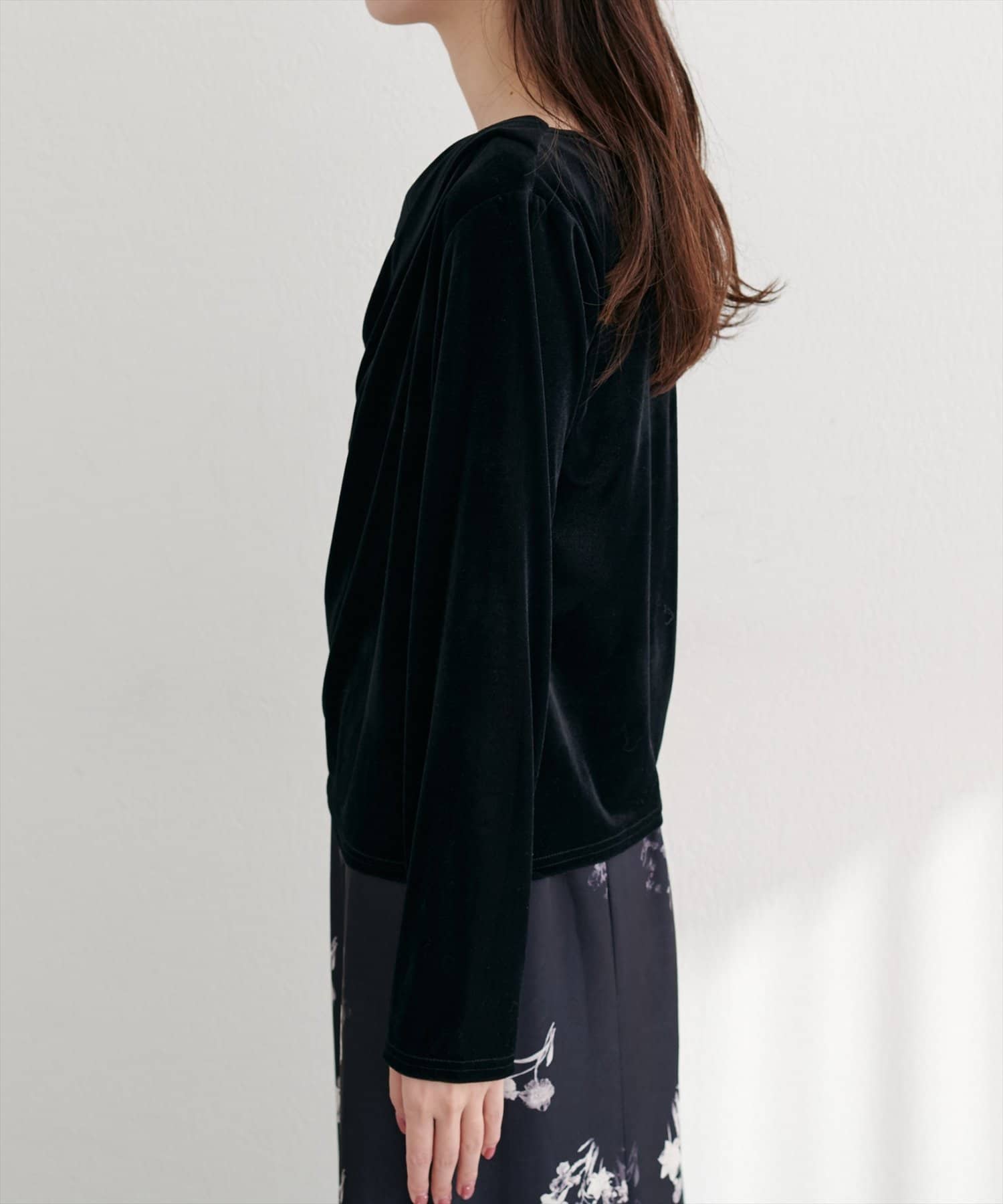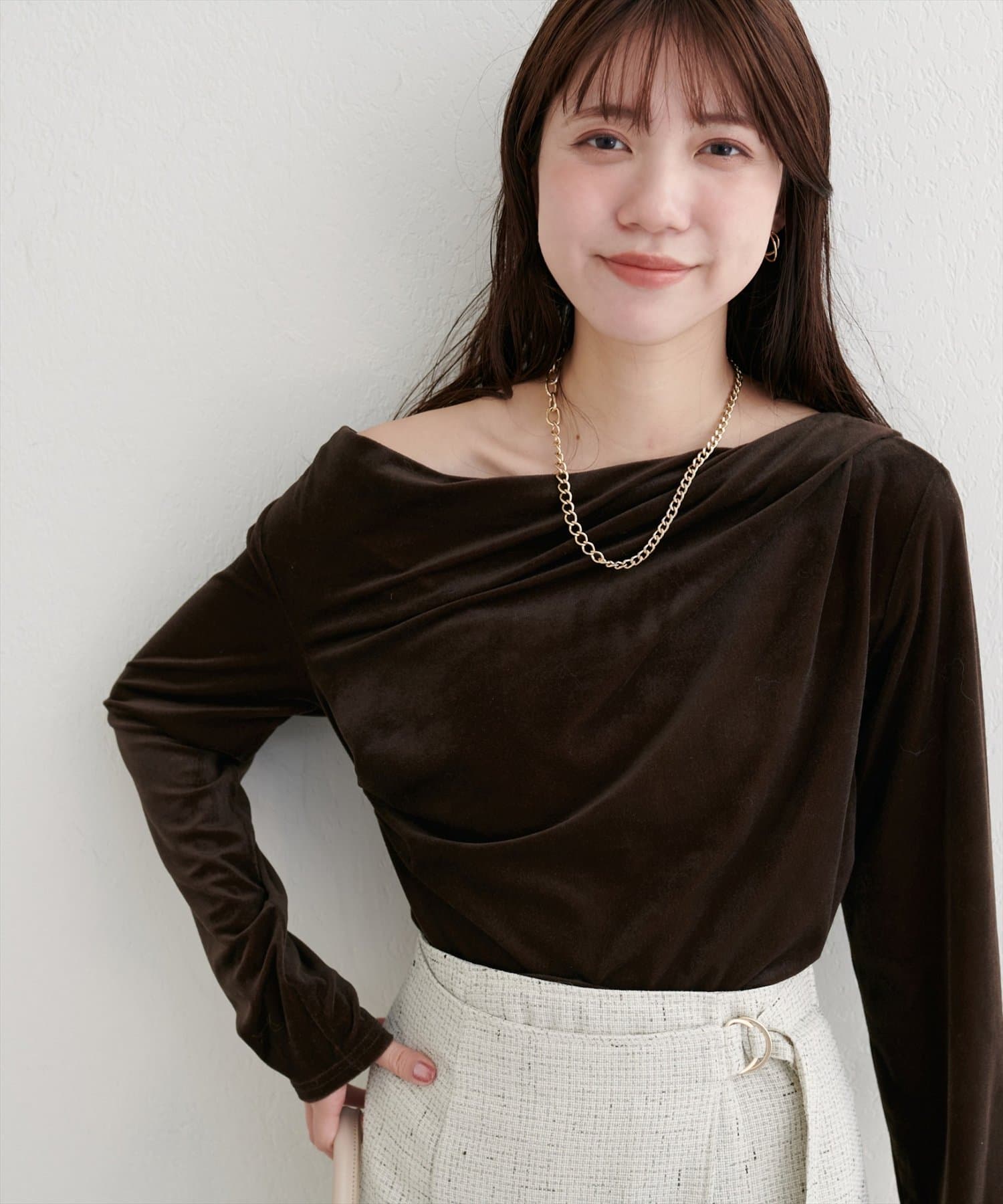 大人の抜け感を演出する、ドレープネックのベロアトップス。
