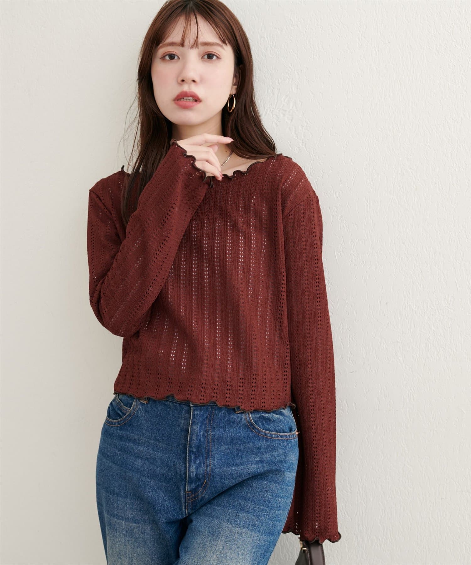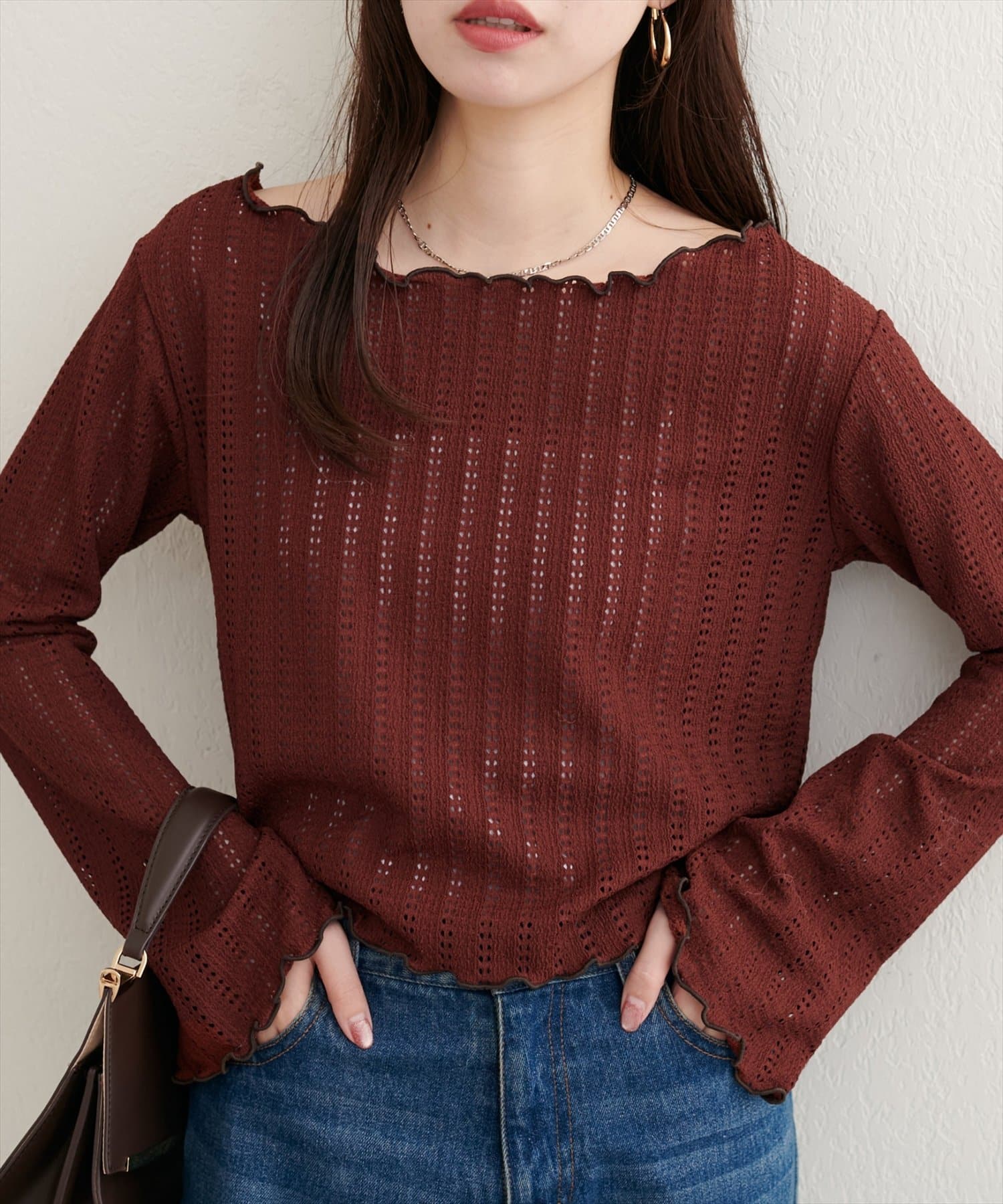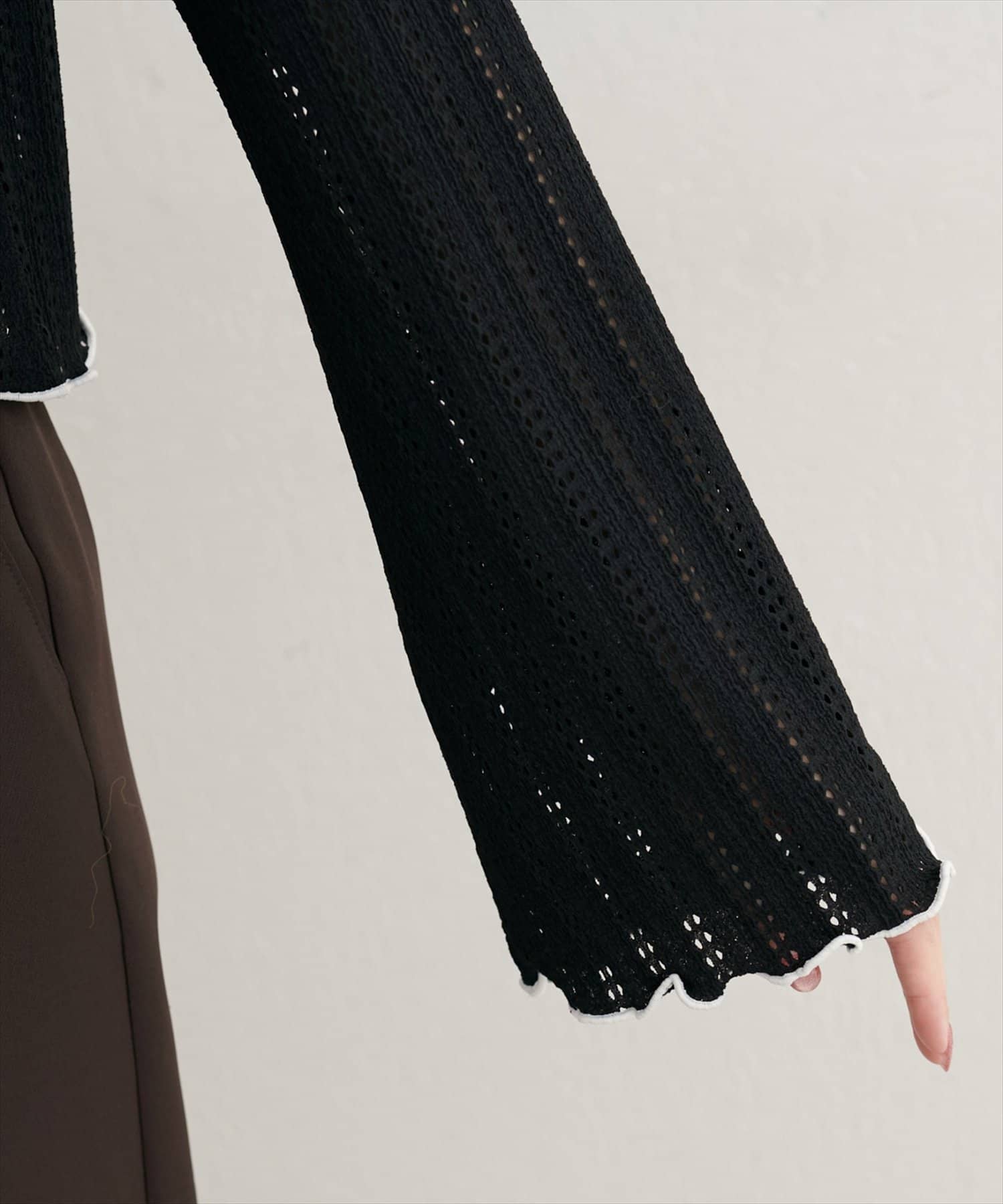 透かし編みから覗く素肌が、ヘルシーな色気を演出するカットソー。