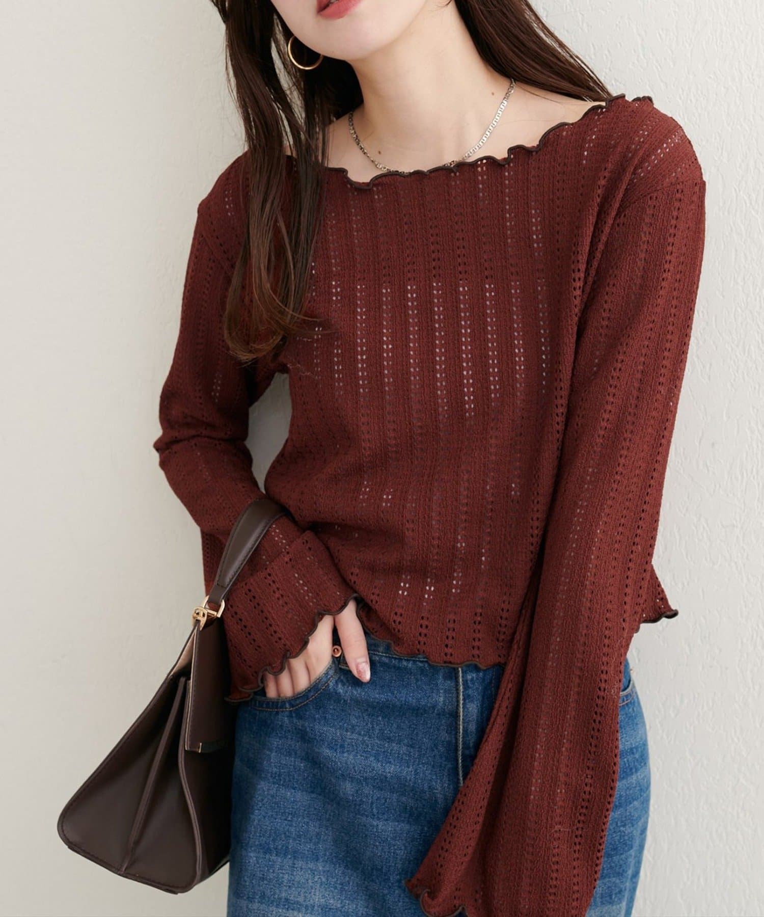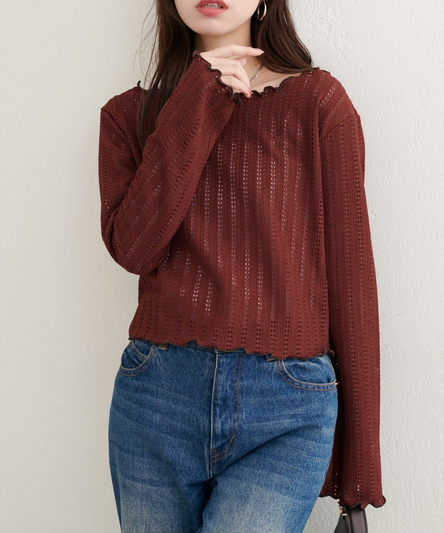 透かし編みから覗く素肌が、ヘルシーな色気を演出するカットソー。