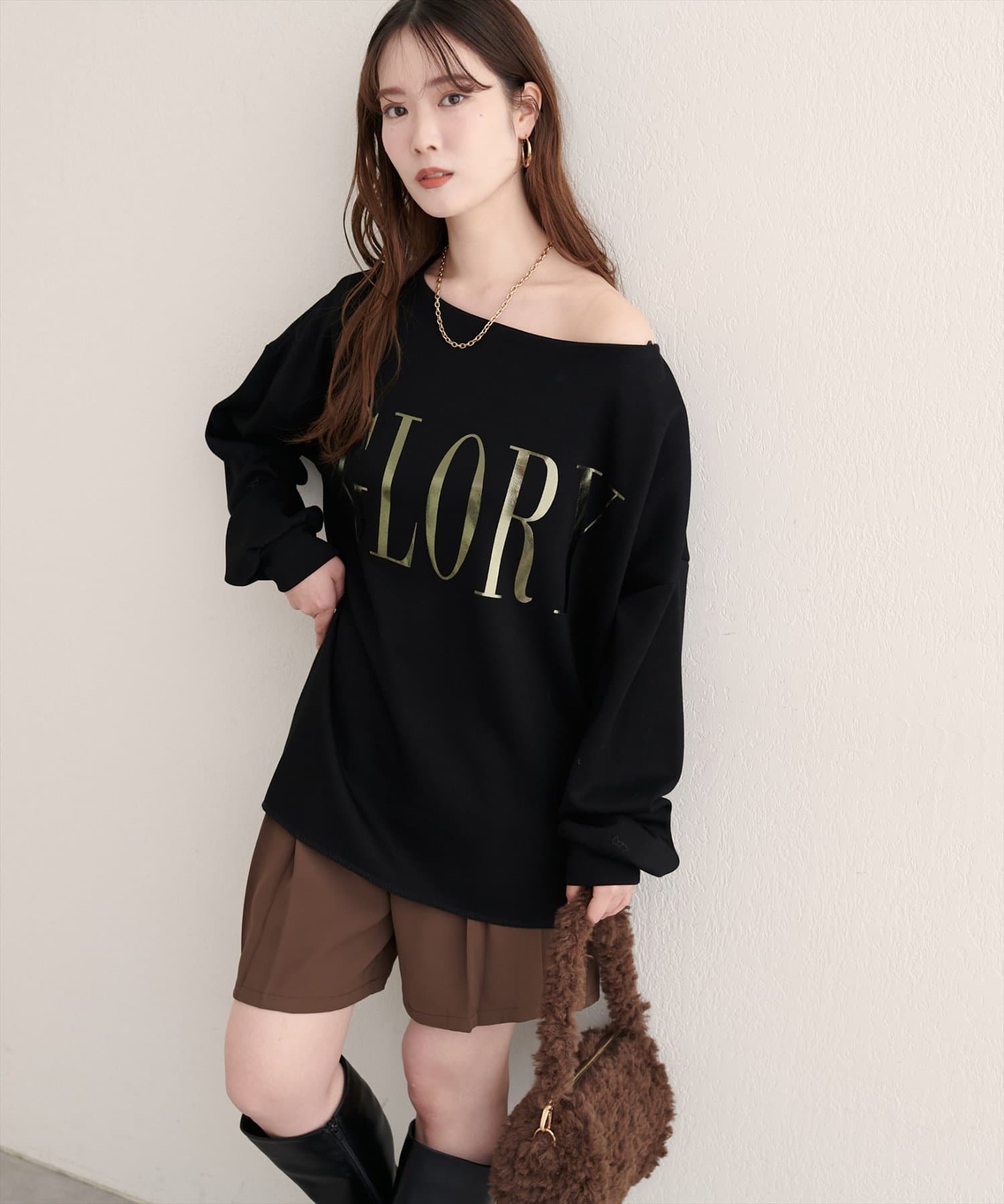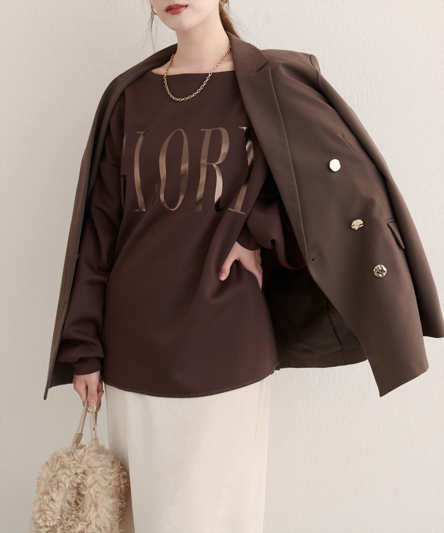 箔プリントが大人見えでカジュアルすぎない雰囲気のカットソーです。