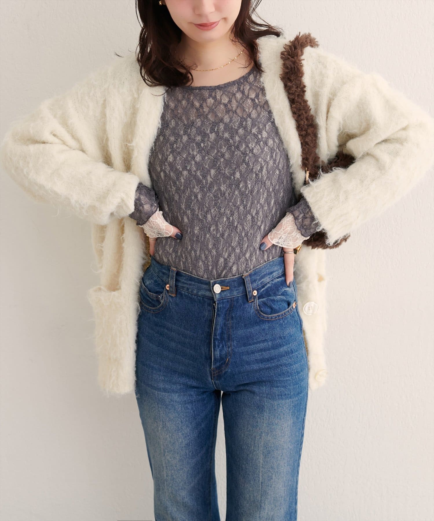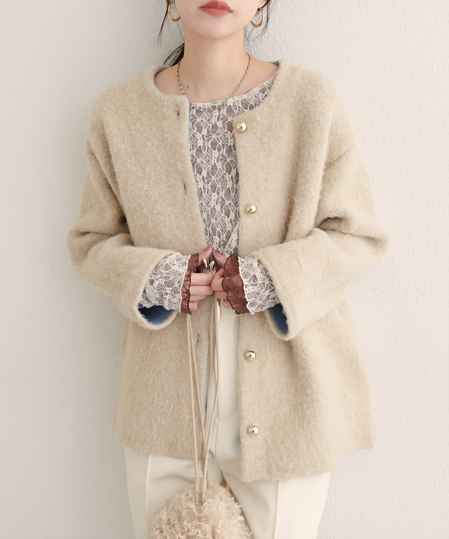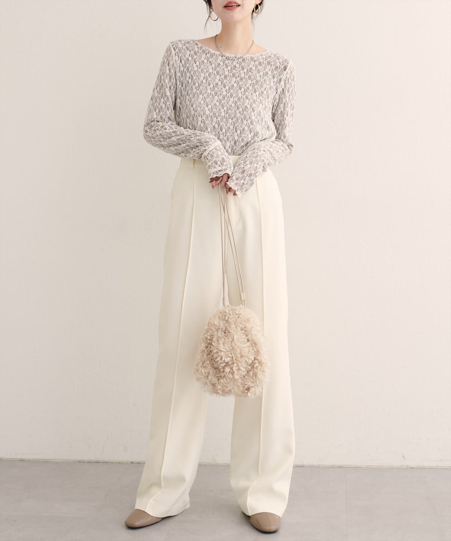 繊細なレース面と、シックな表情の裏面との切り替えが、あなたのスタイリングの幅を広げます。