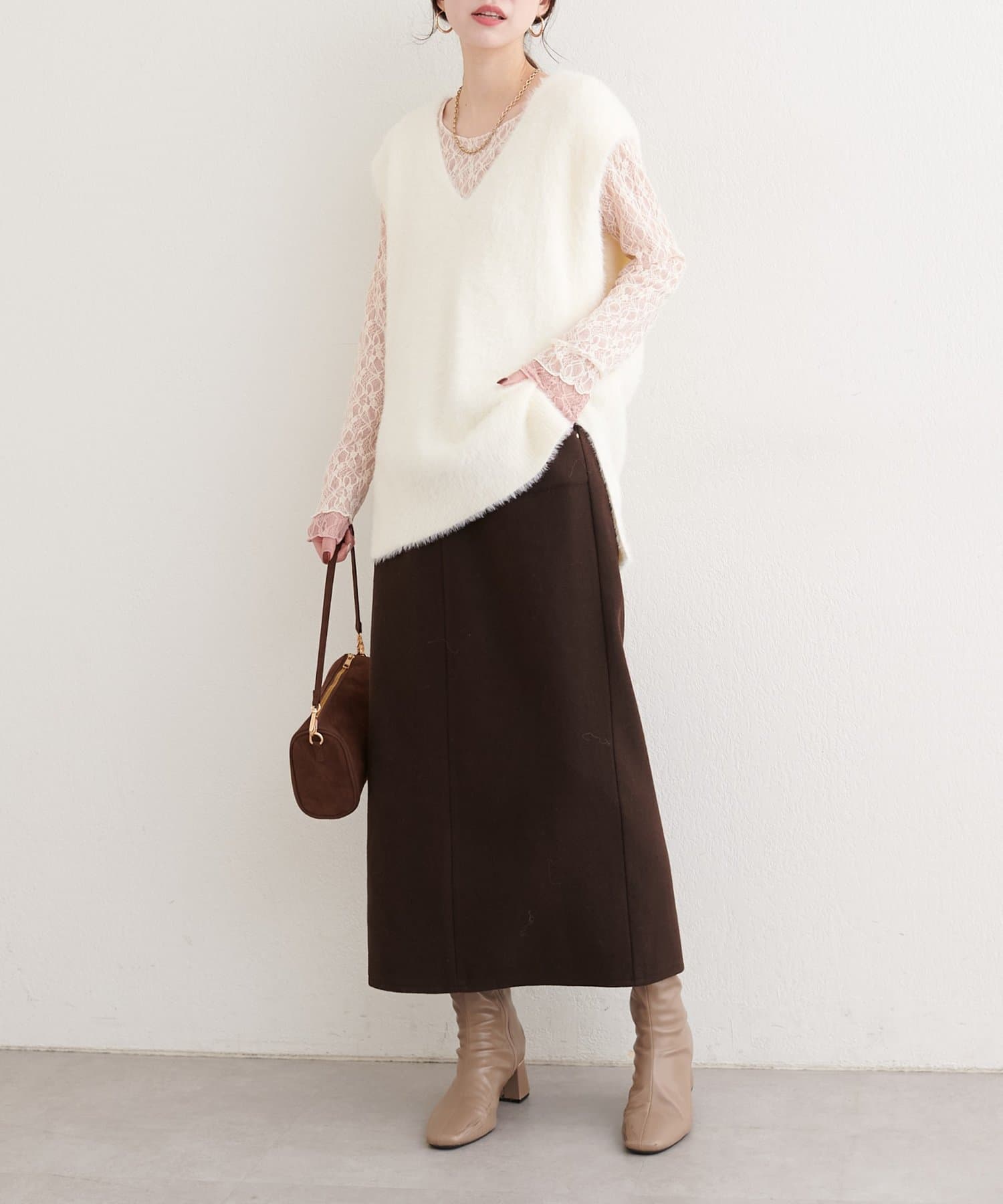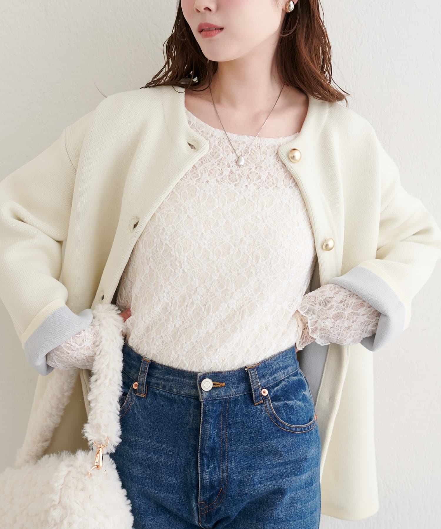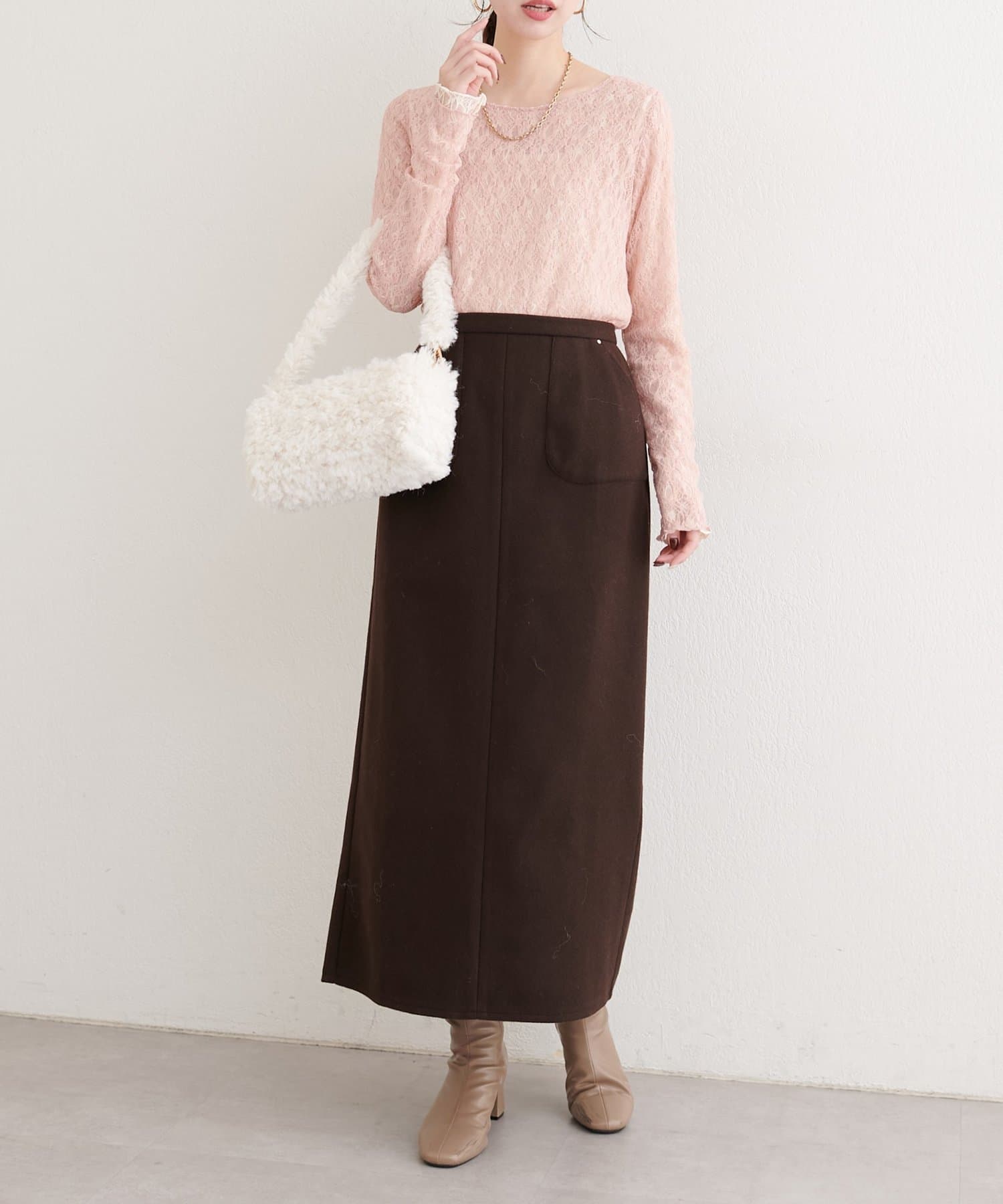 繊細なレース面と、シックな表情の裏面との切り替えが、あなたのスタイリングの幅を広げます。