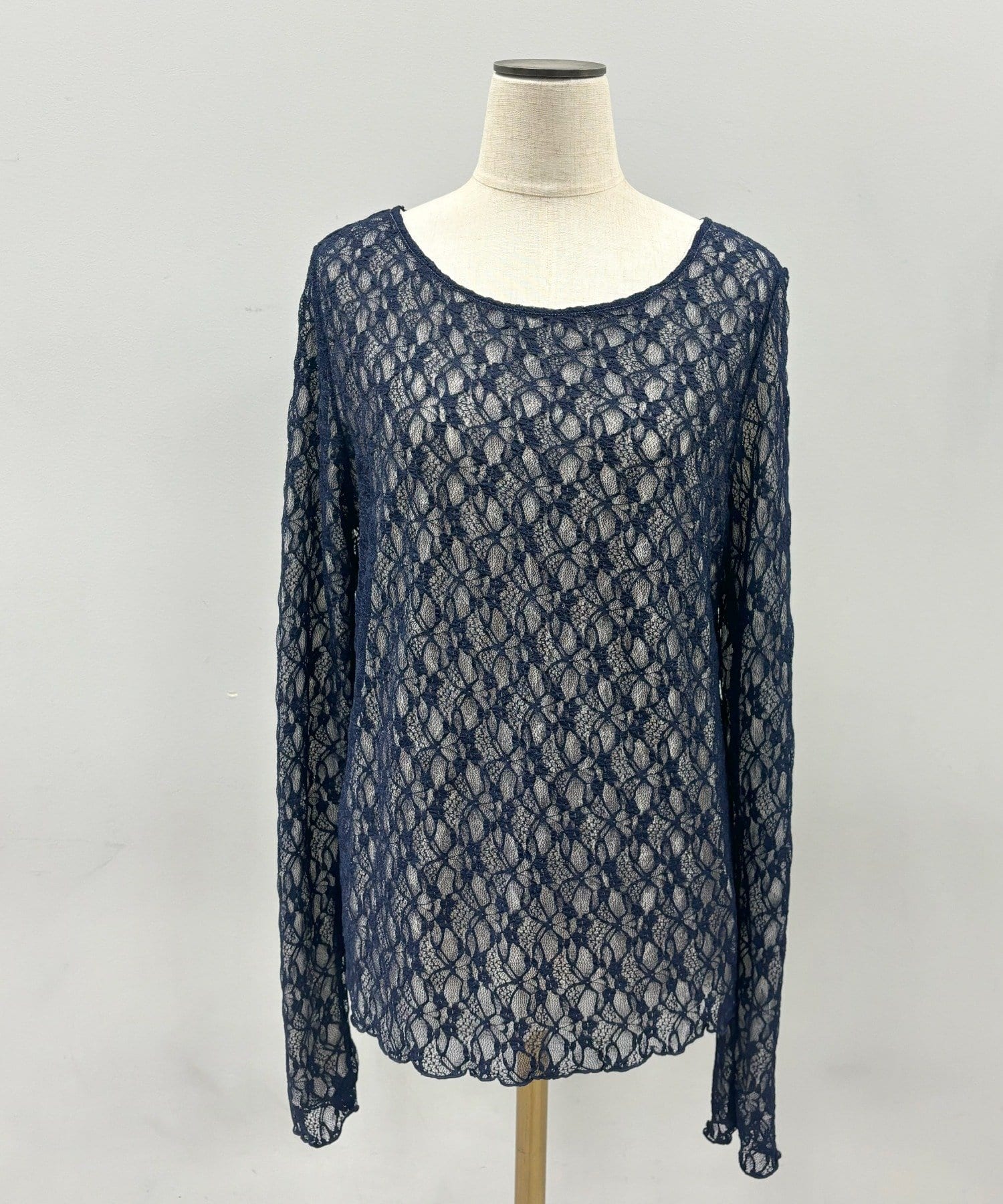 柔らかく、レース生地のはずなのに全然ちくちくせず着心地最高です。リバーシブルで印象ガラッと変わり、手から少しはみ出してチラ見えする裏地が可愛い…!着る時にレースひっかけてしまいそうで細心の注意を。色違いで買うか検討中です。