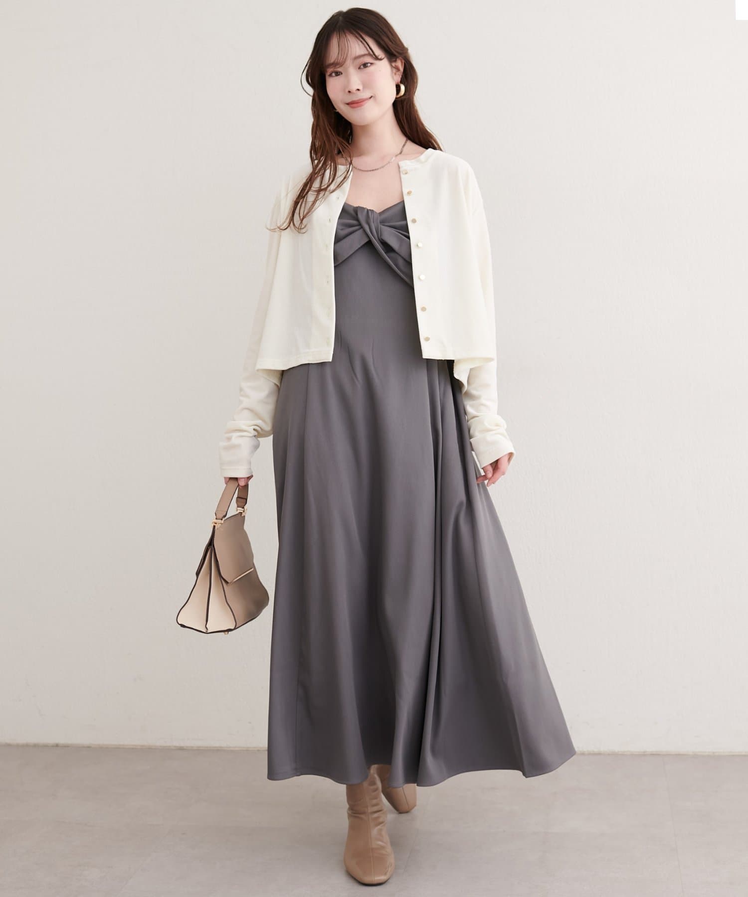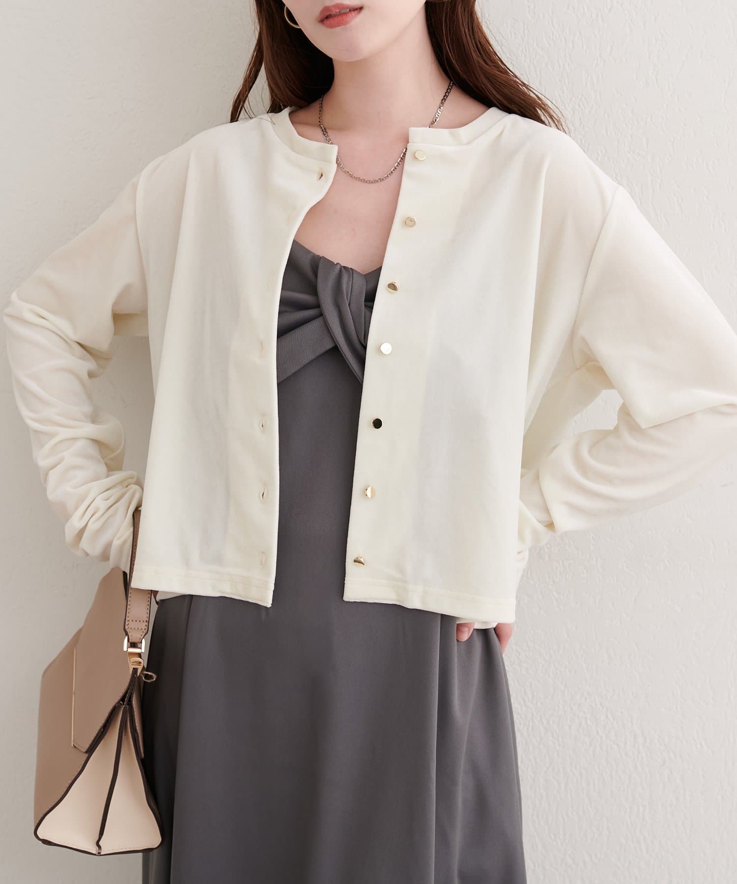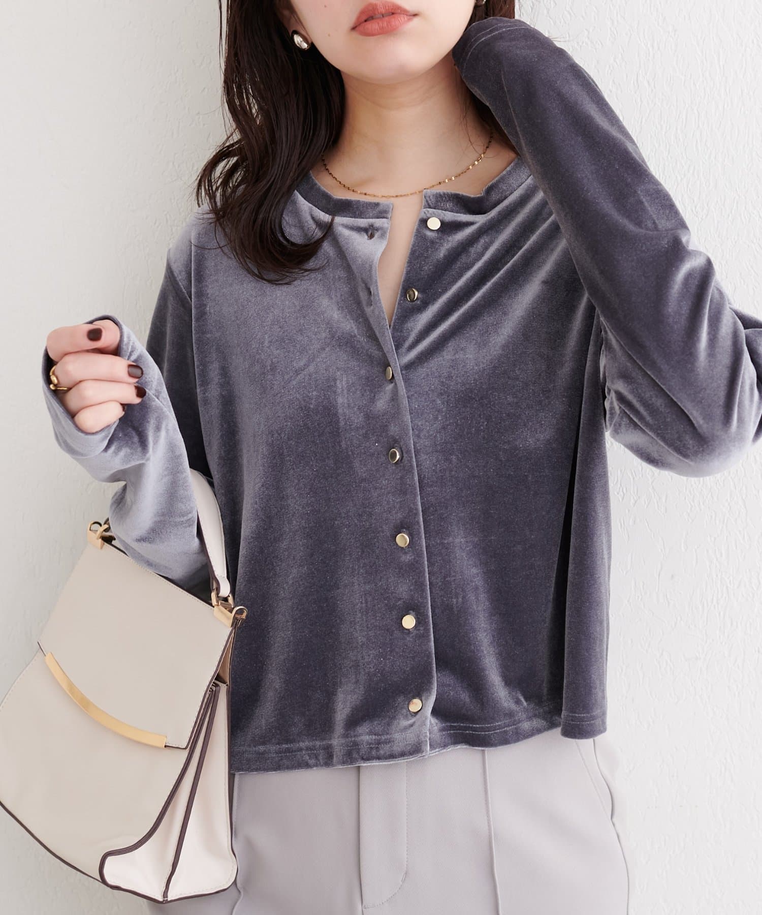 フロントのボタンが、さりげないアクセントとなり、上品さをプラス。