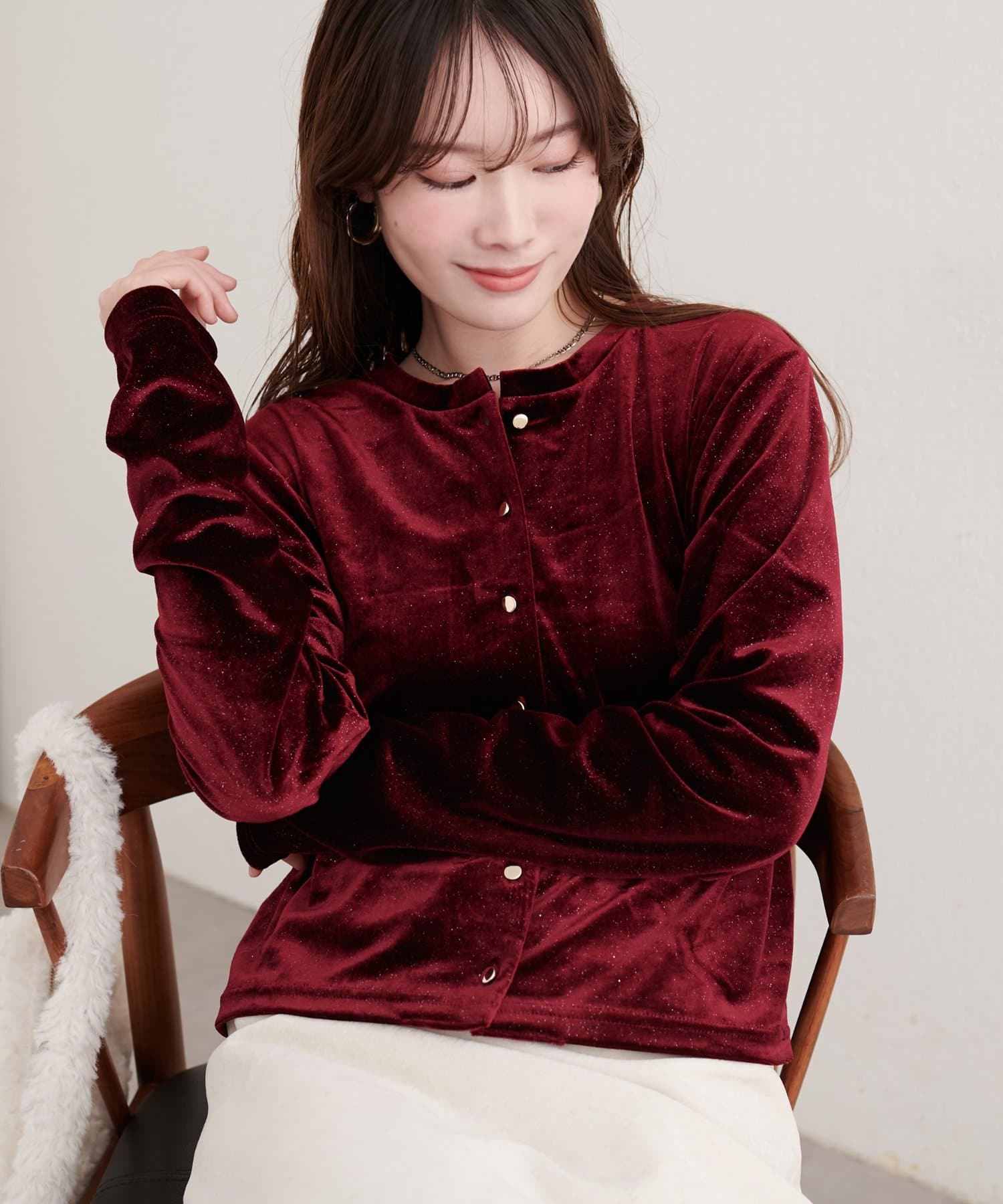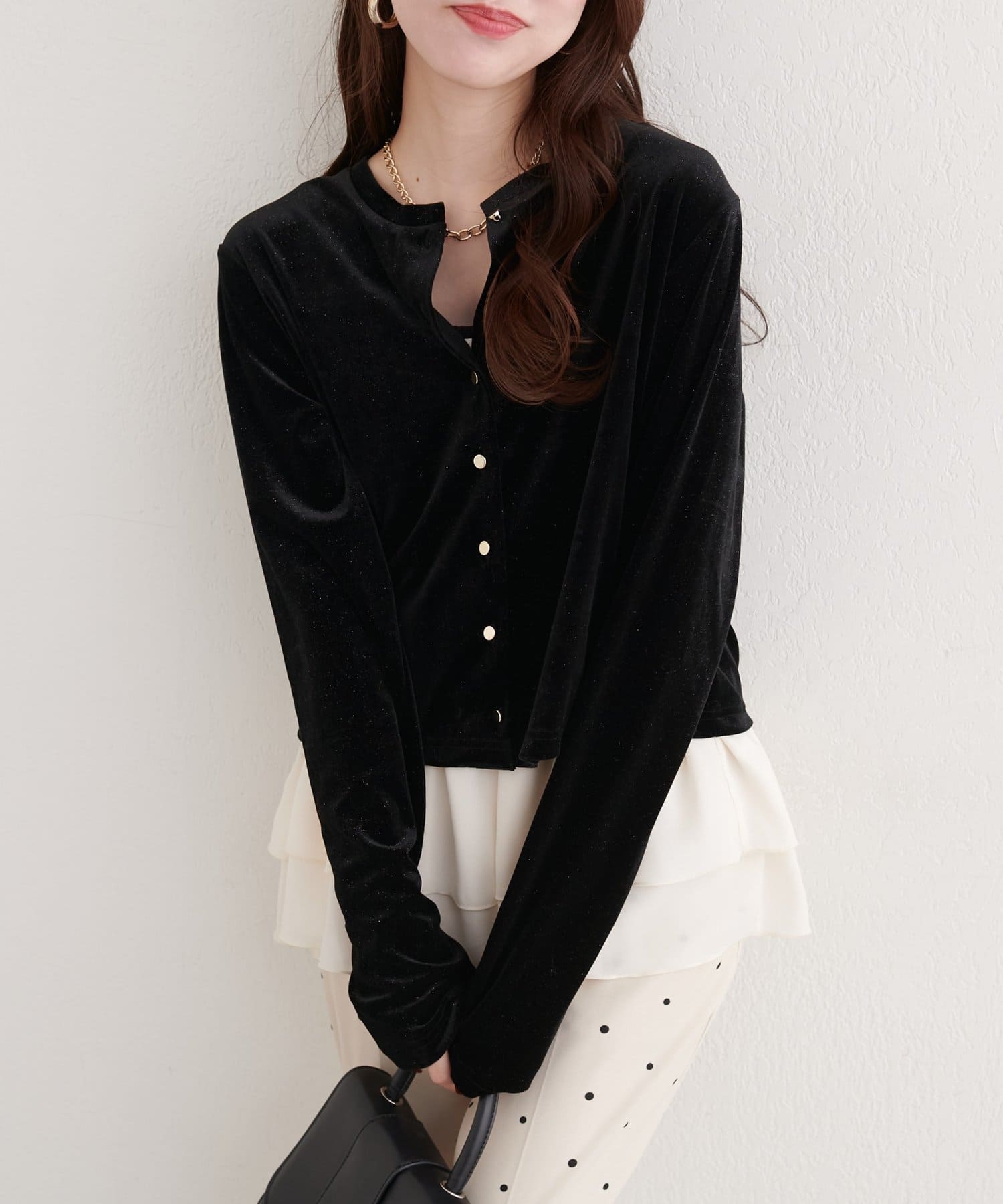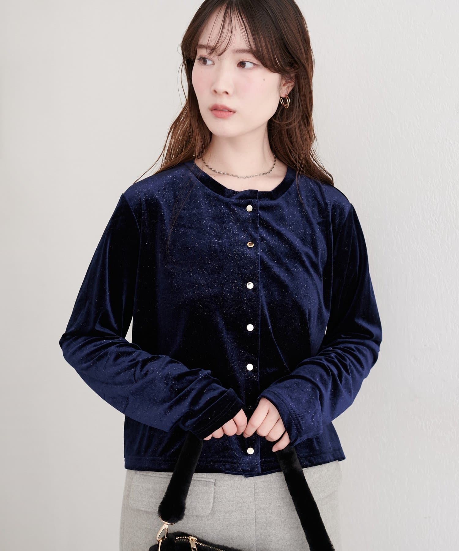 ラメベロアクルーネックカーディガン