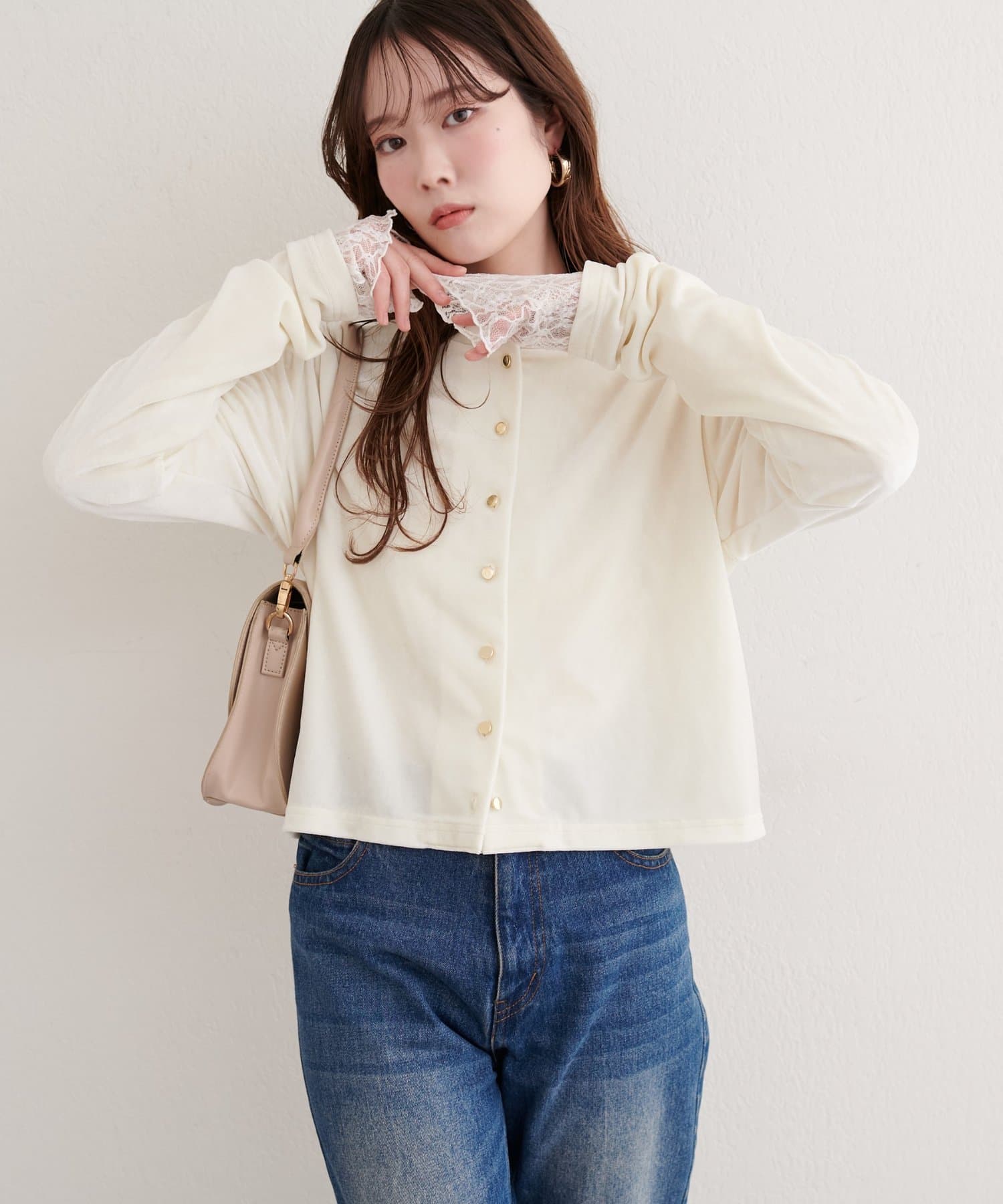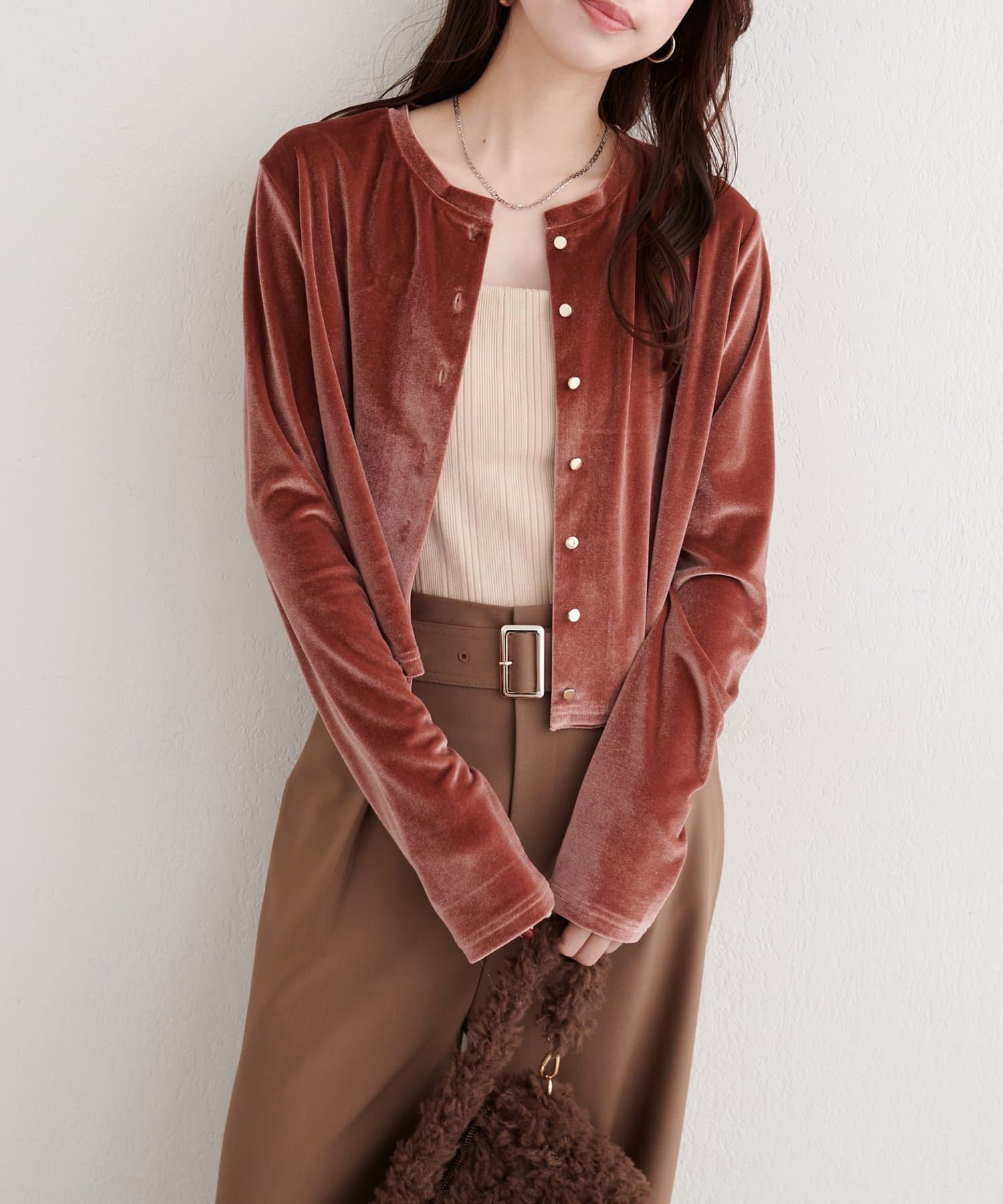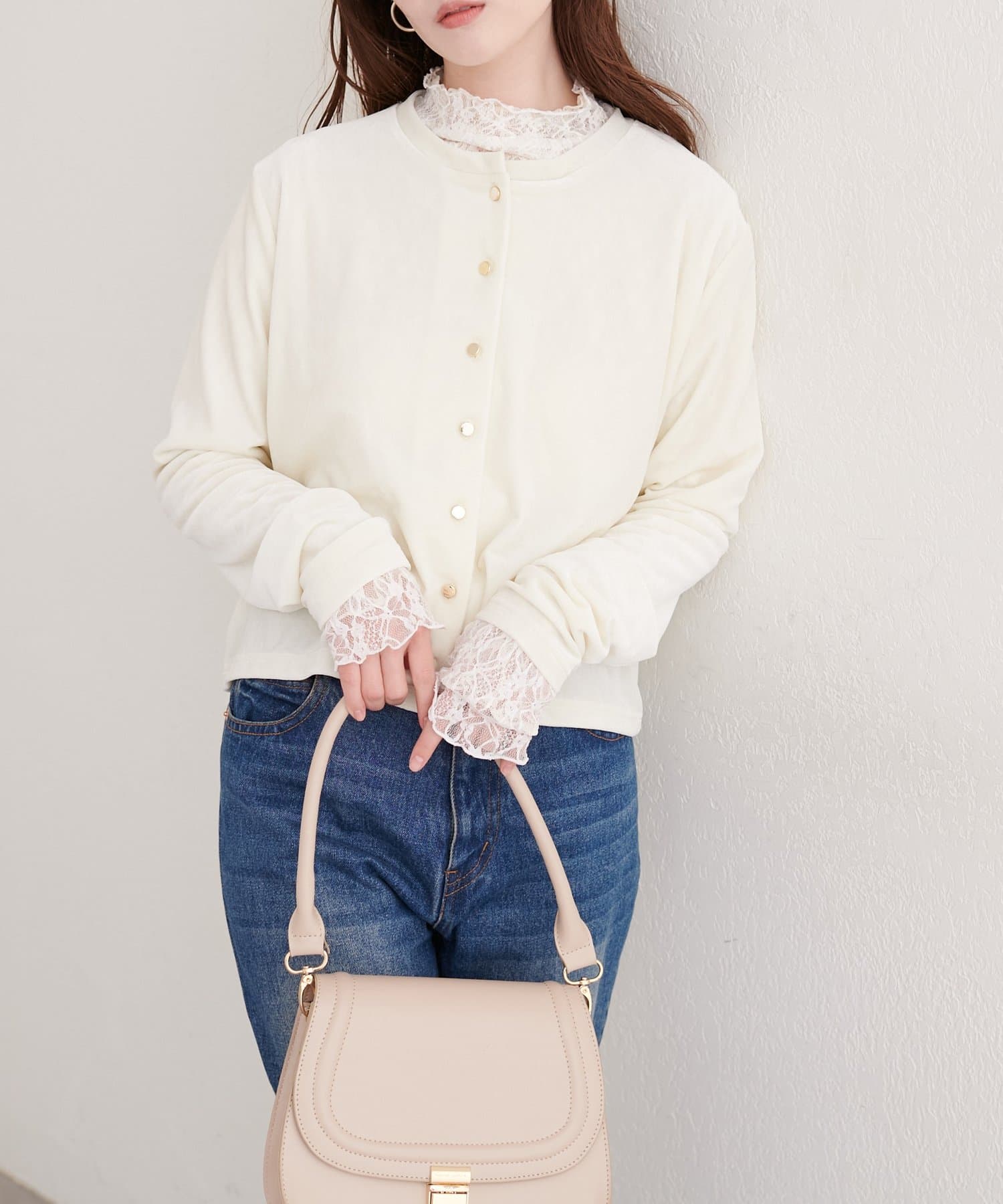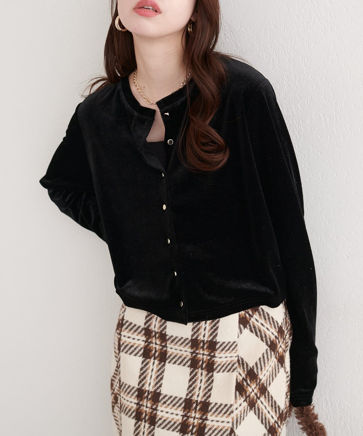 ラメベロアクルーネックカーディガン