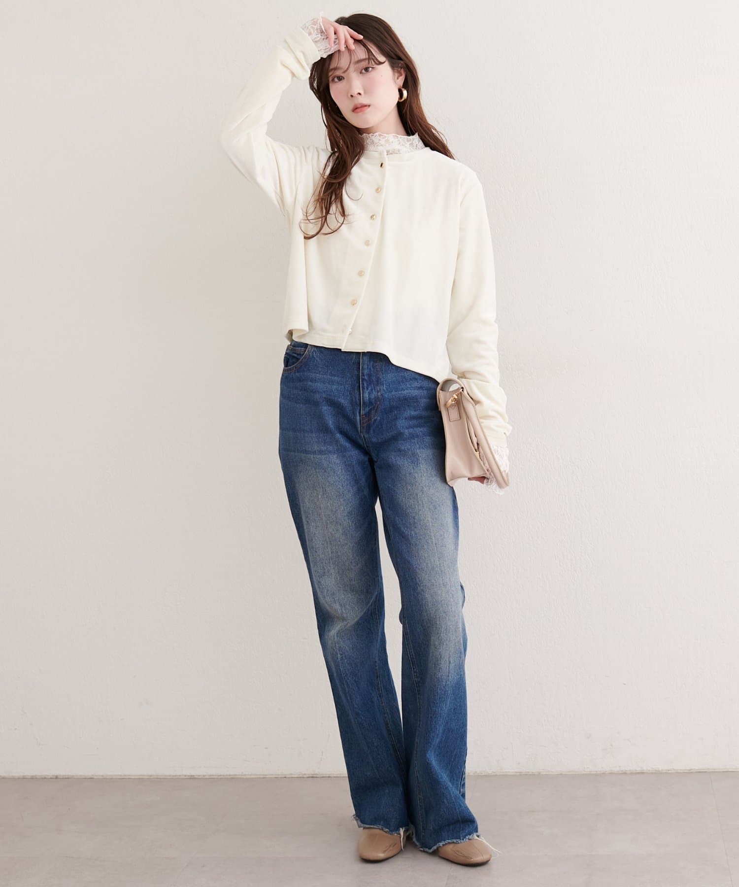 アクセサリーとの相性も抜群。シンプルなネックレスやピアスを合わせれば、より上品な印象に。