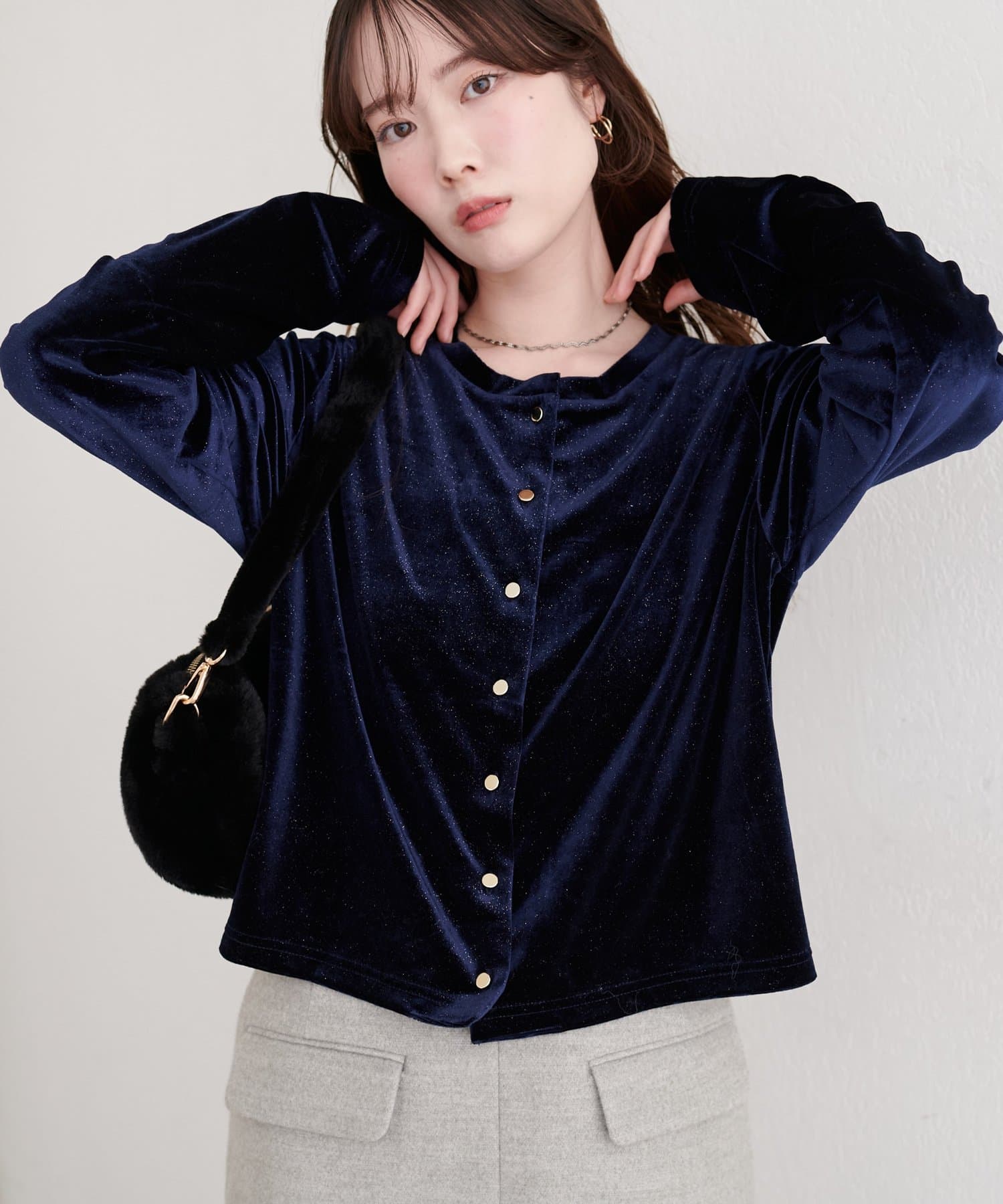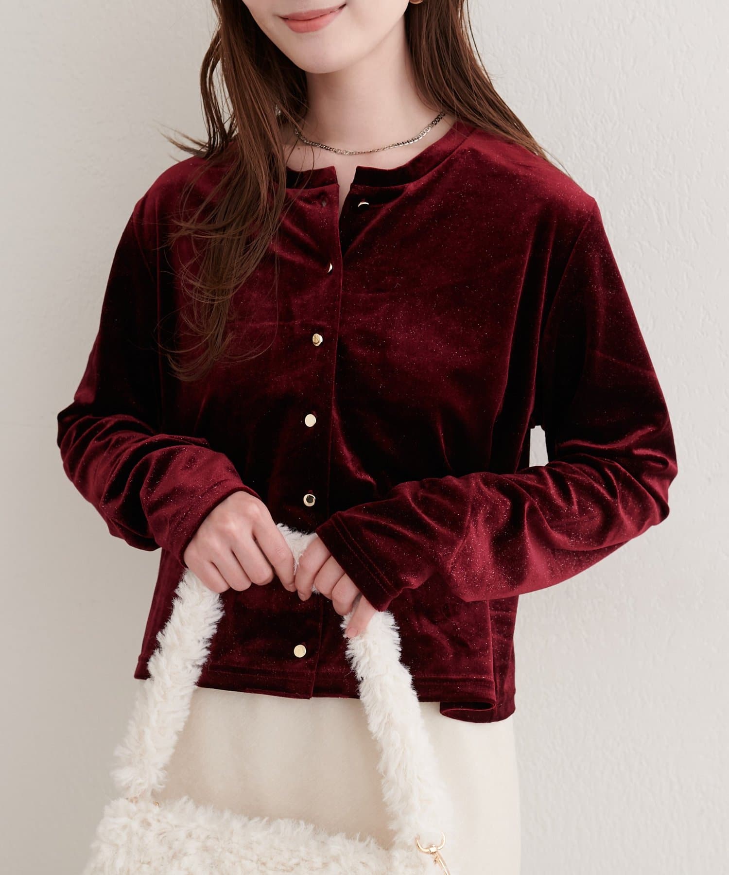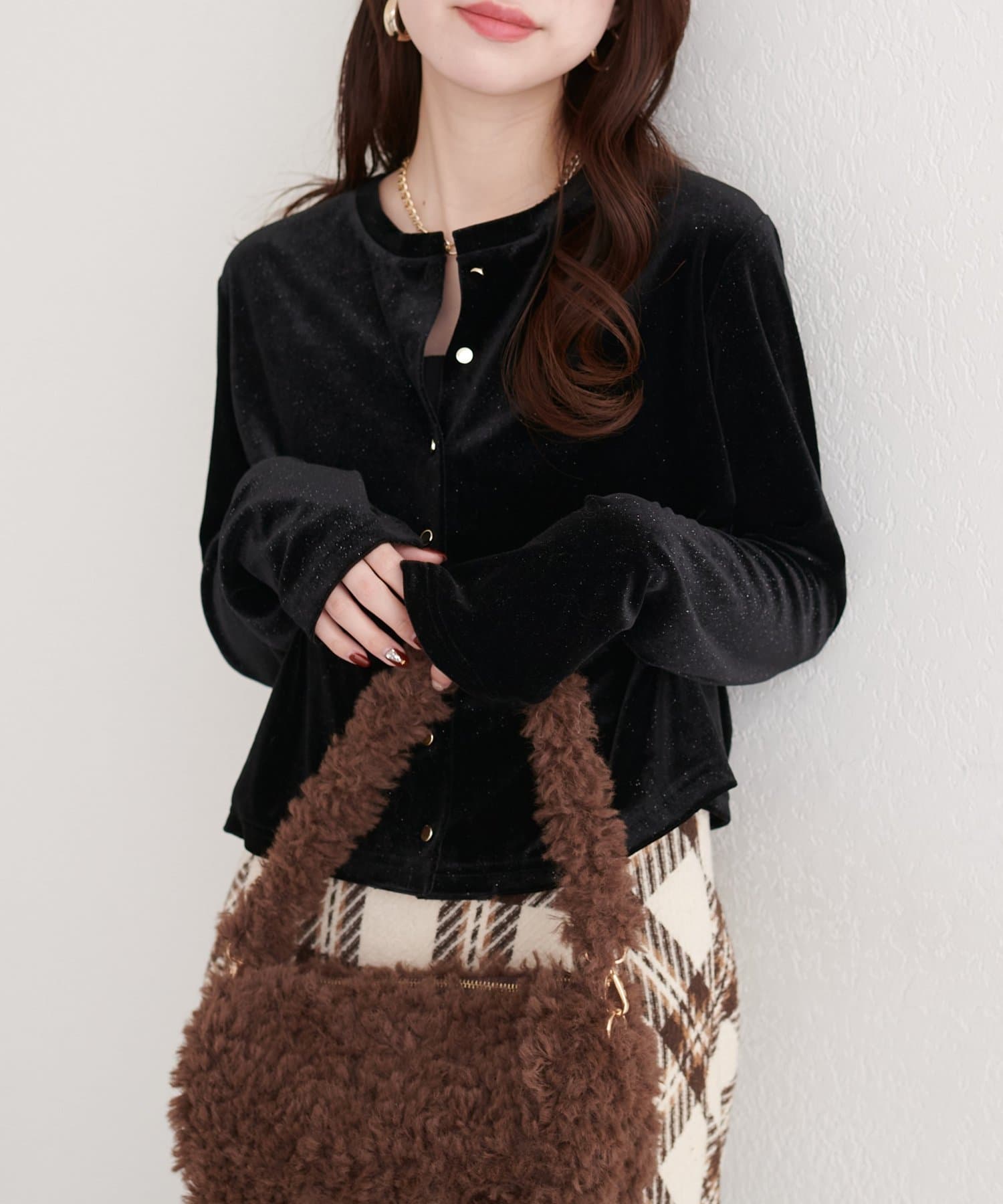 繊細なラメとベロア生地の光沢感が、高見え感をプラス◎