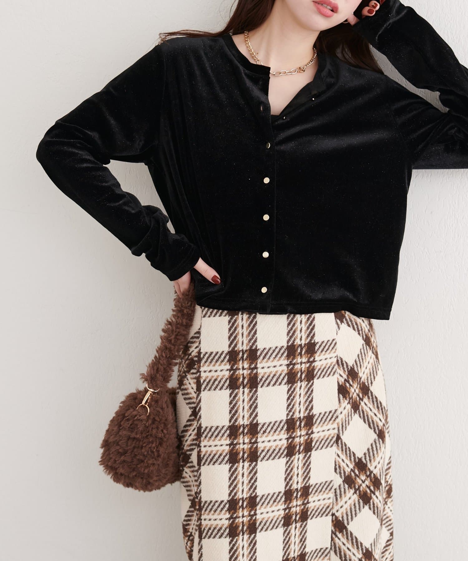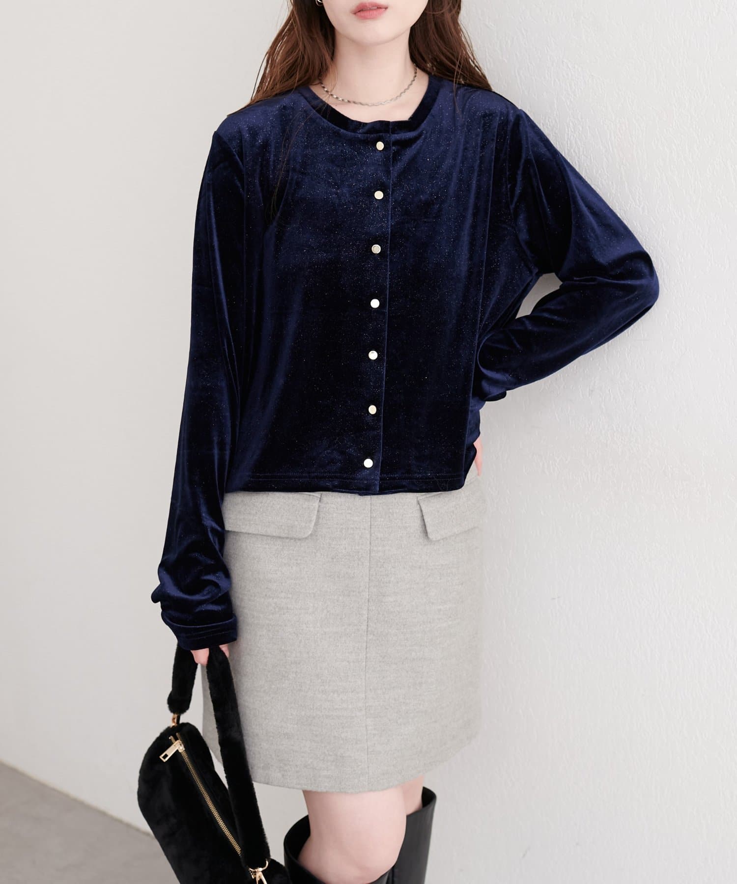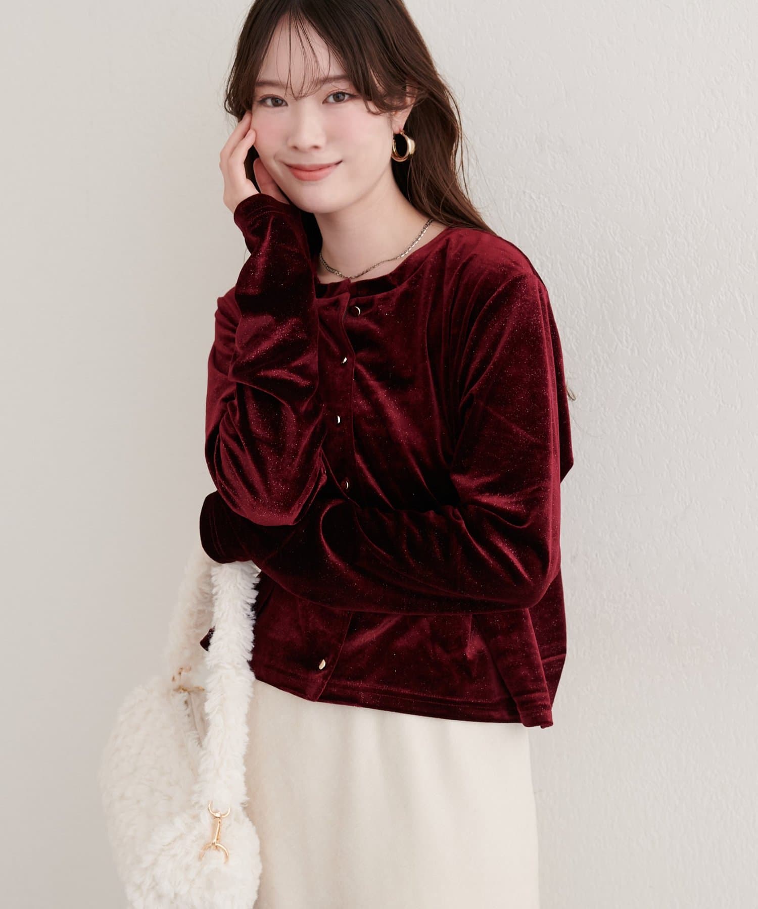 繊細なラメとベロア生地の光沢感が、高見え感をプラス◎