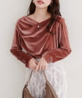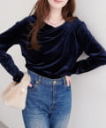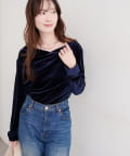 長めのスリーブは、手首を華奢に見せる効果も。繊細なラメとベロア生地の光沢感で高見え感UP◎
