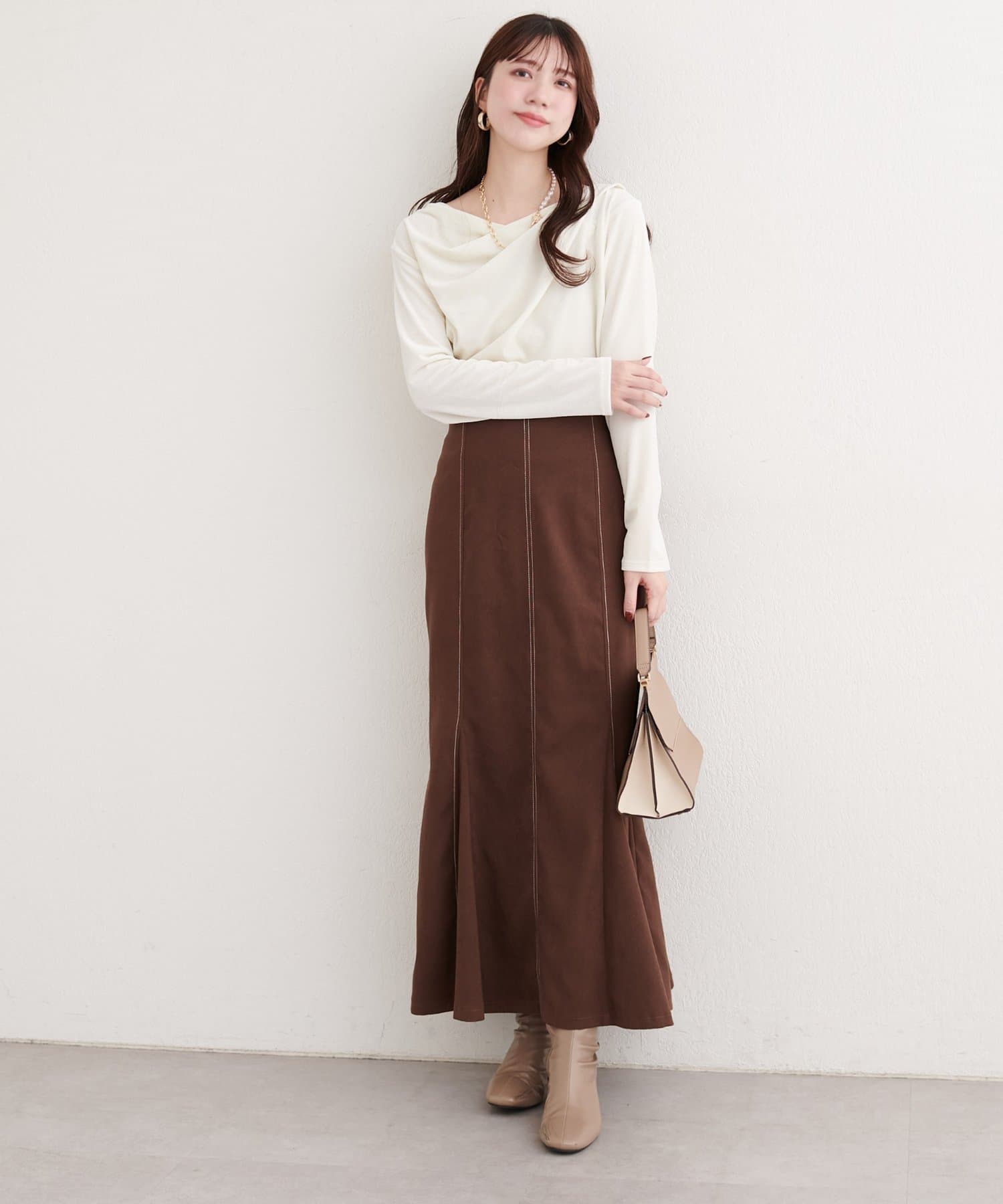 タイトスカートやパンツと合わせて、シックで大人な雰囲気に。