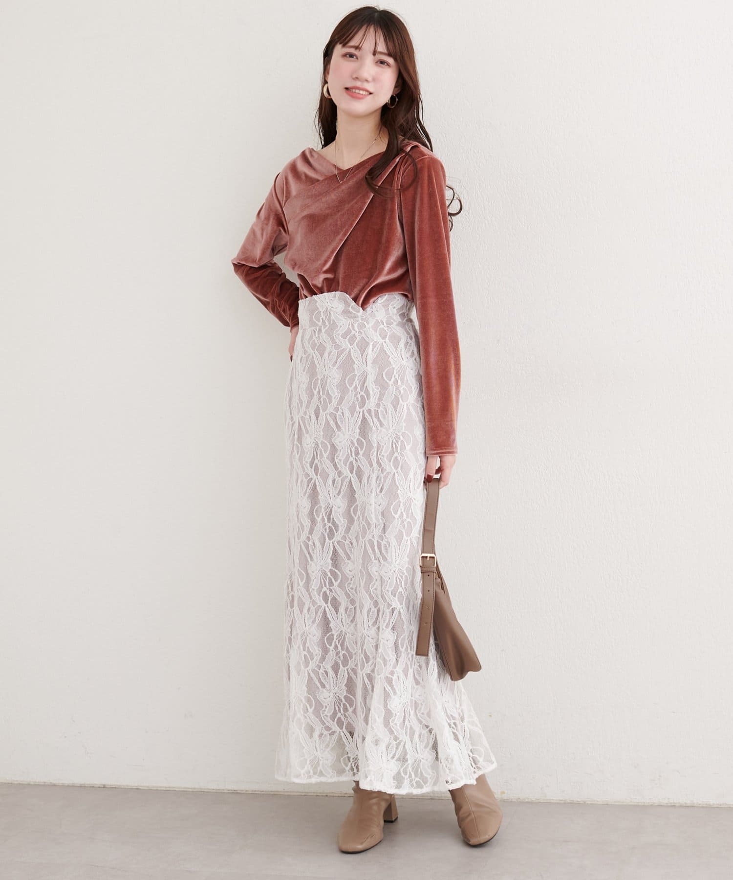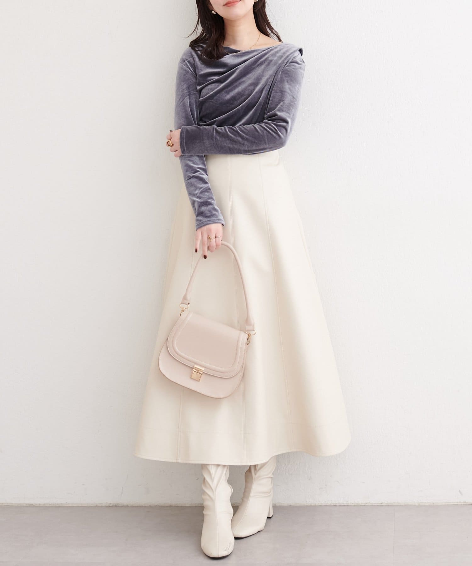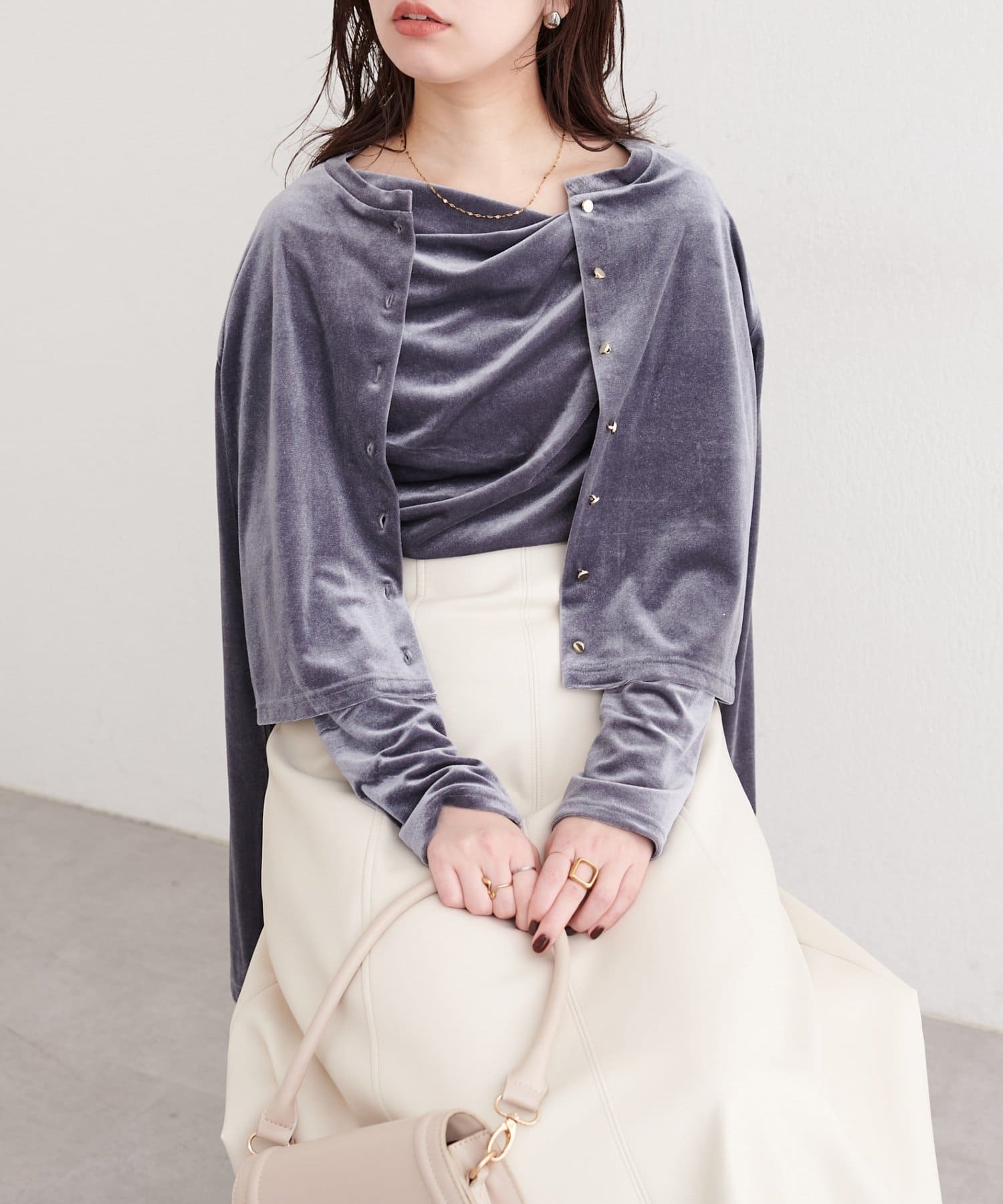 フレアスカートやワンピースにレイヤードして、上品でエレガントな印象に。