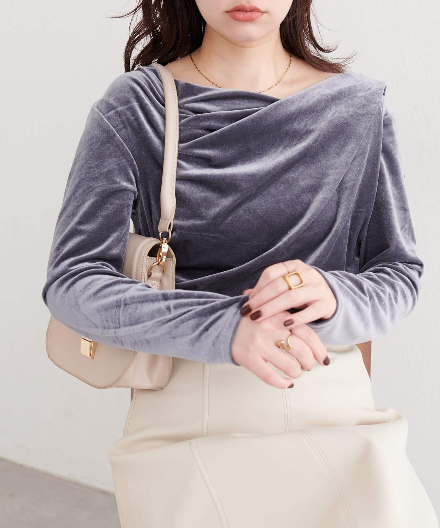 アシンメトリーなデザインは、スタイリングにこなれ感をプラス。シンプルながらも、洗練された印象を与えます。
