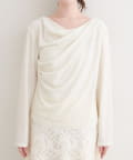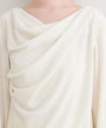 特徴的なドレープネックは、デコルテを美しく見せ、女性らしさを引き立てます。