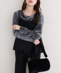 長めのスリーブは、手首を華奢に見せる効果も。繊細なラメとベロア生地の光沢感で高見え感UP◎