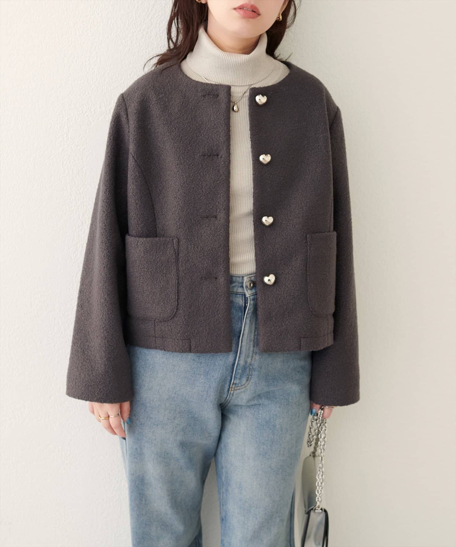 【WEB限定】ハート釦ほっこり素材コートジャケット