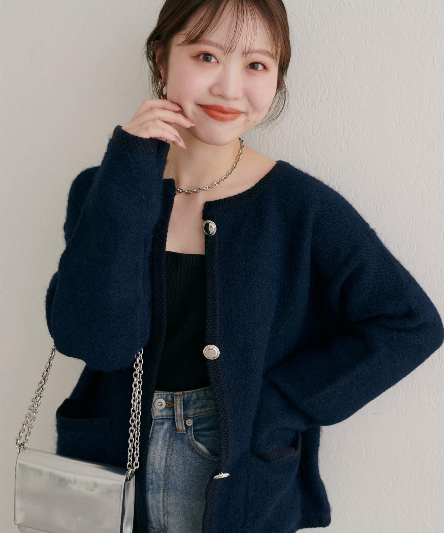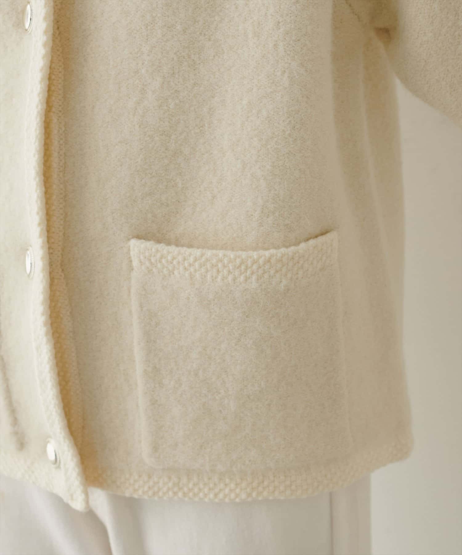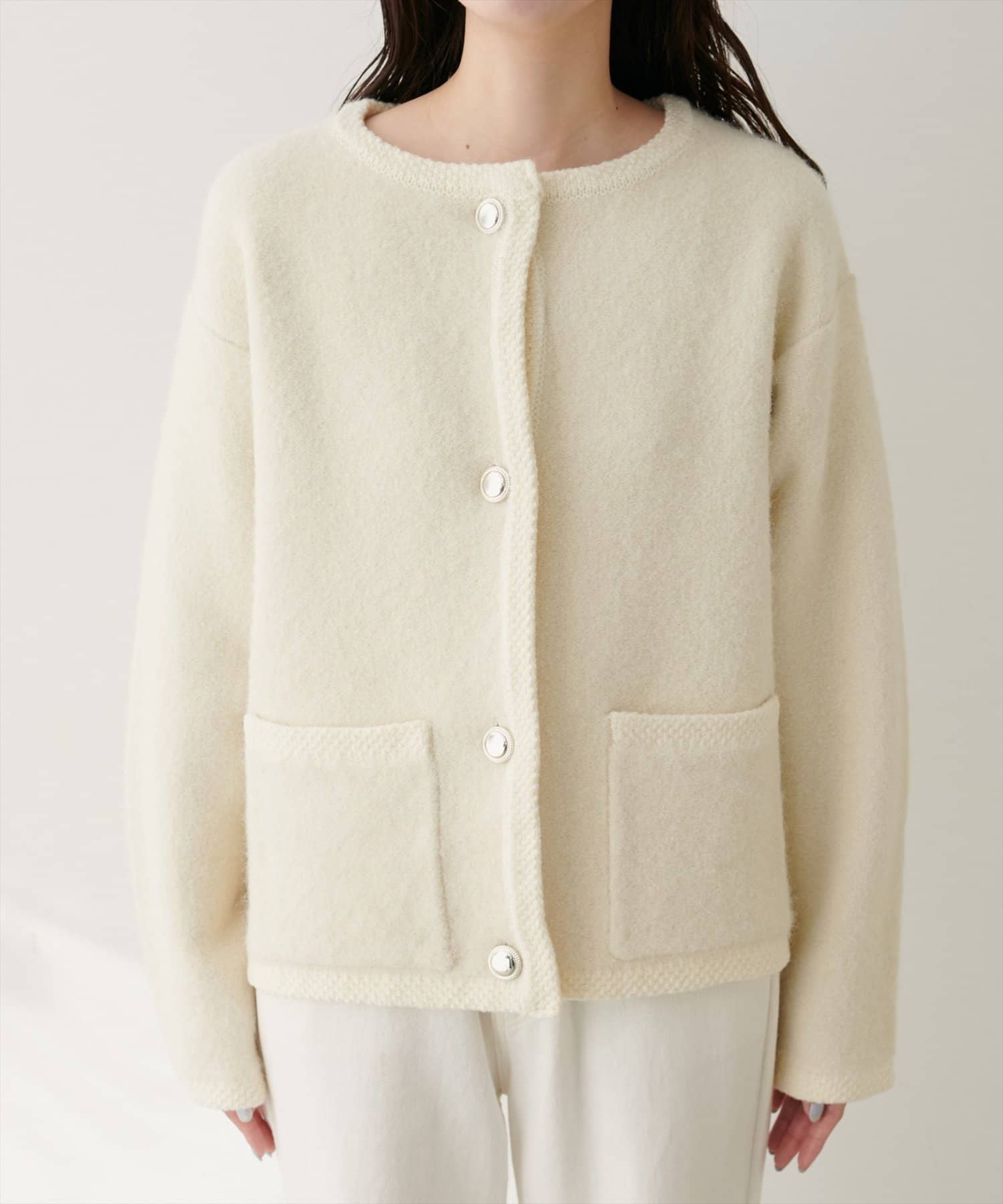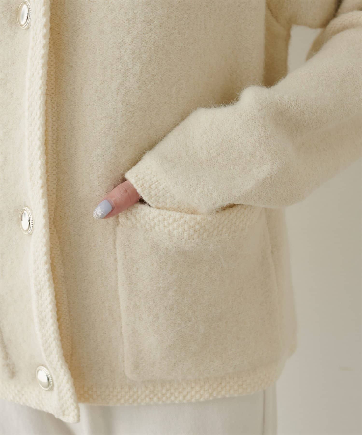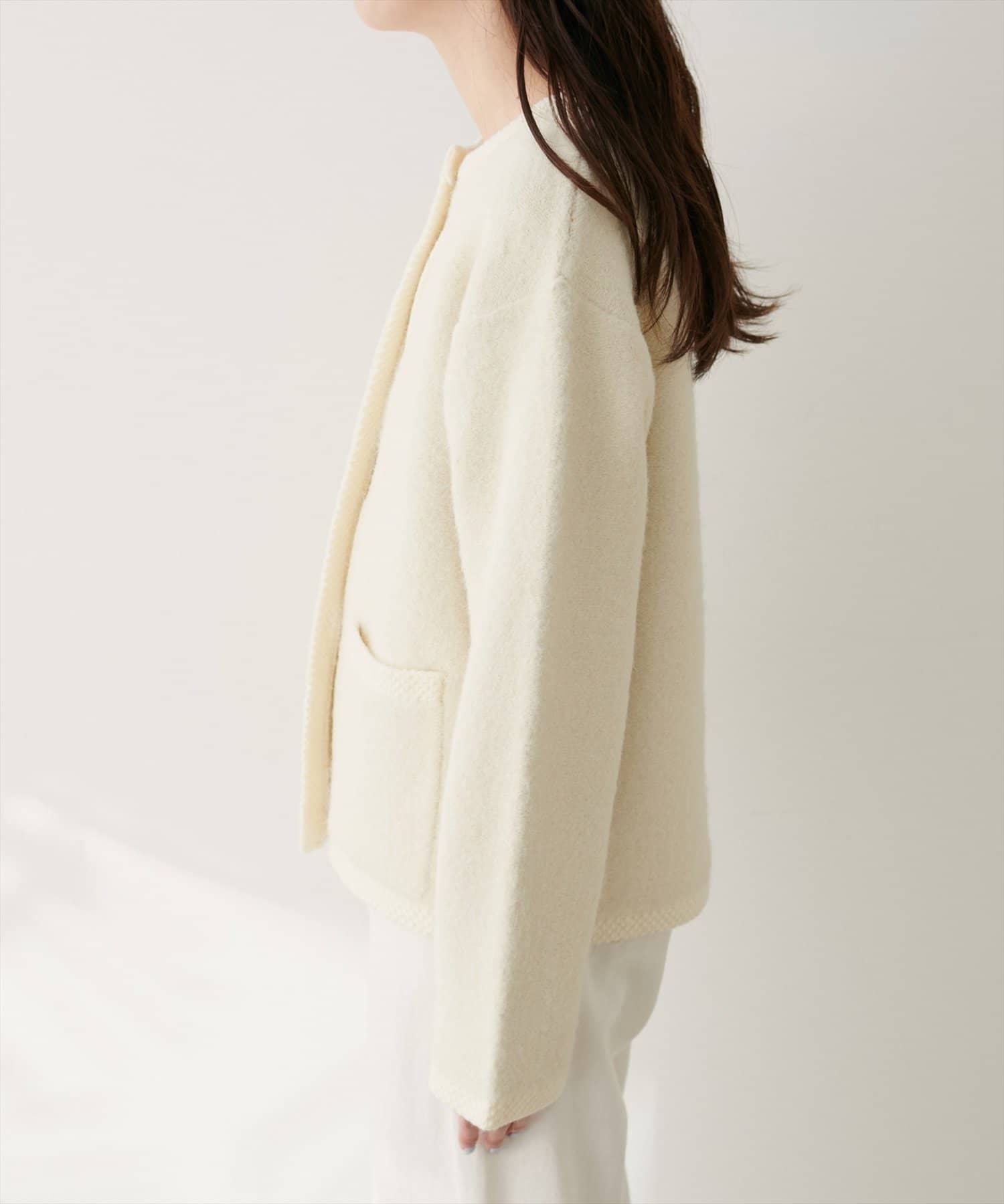 ふんわりとした暖かみのある風合いが魅力のニットジャケット。