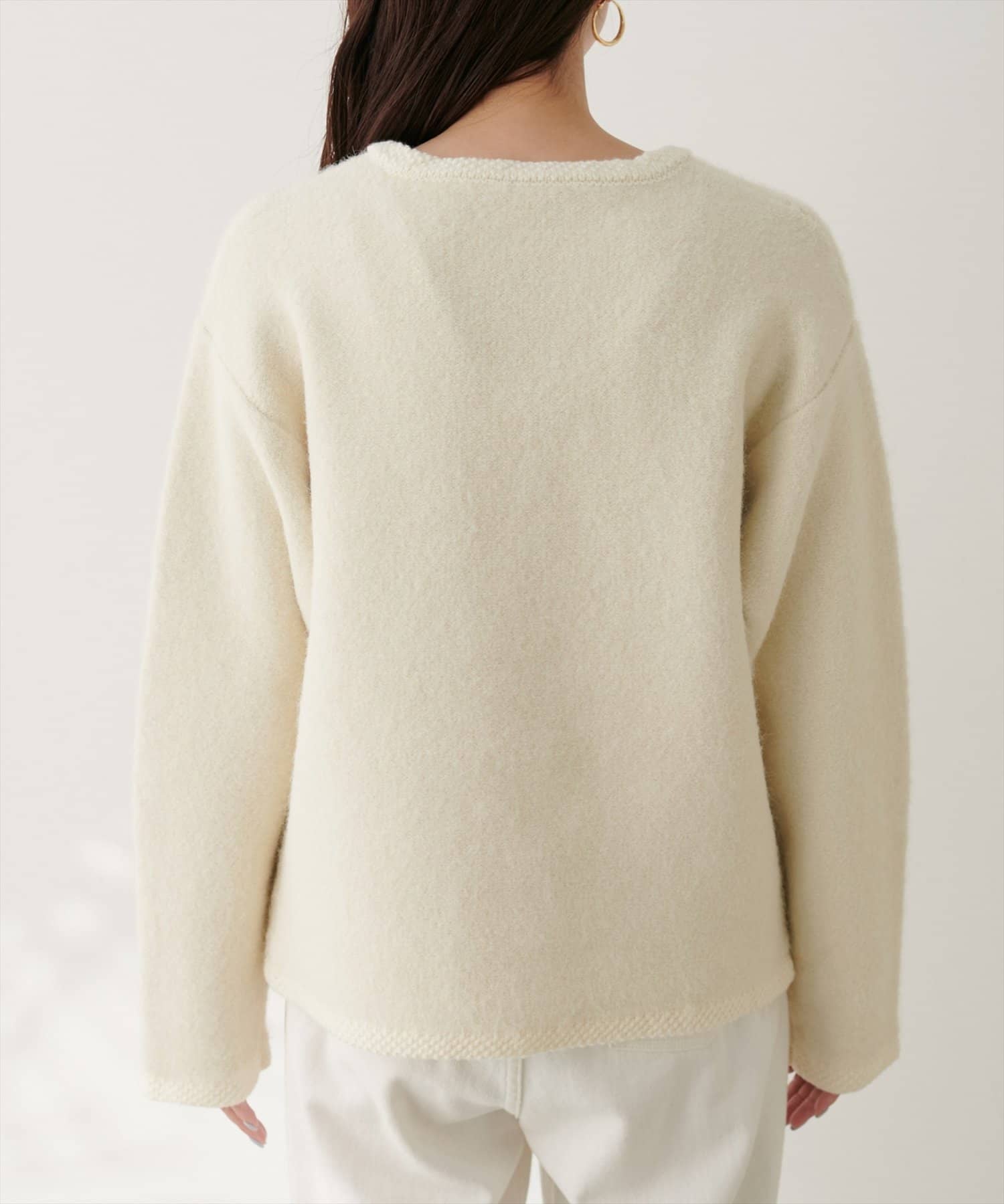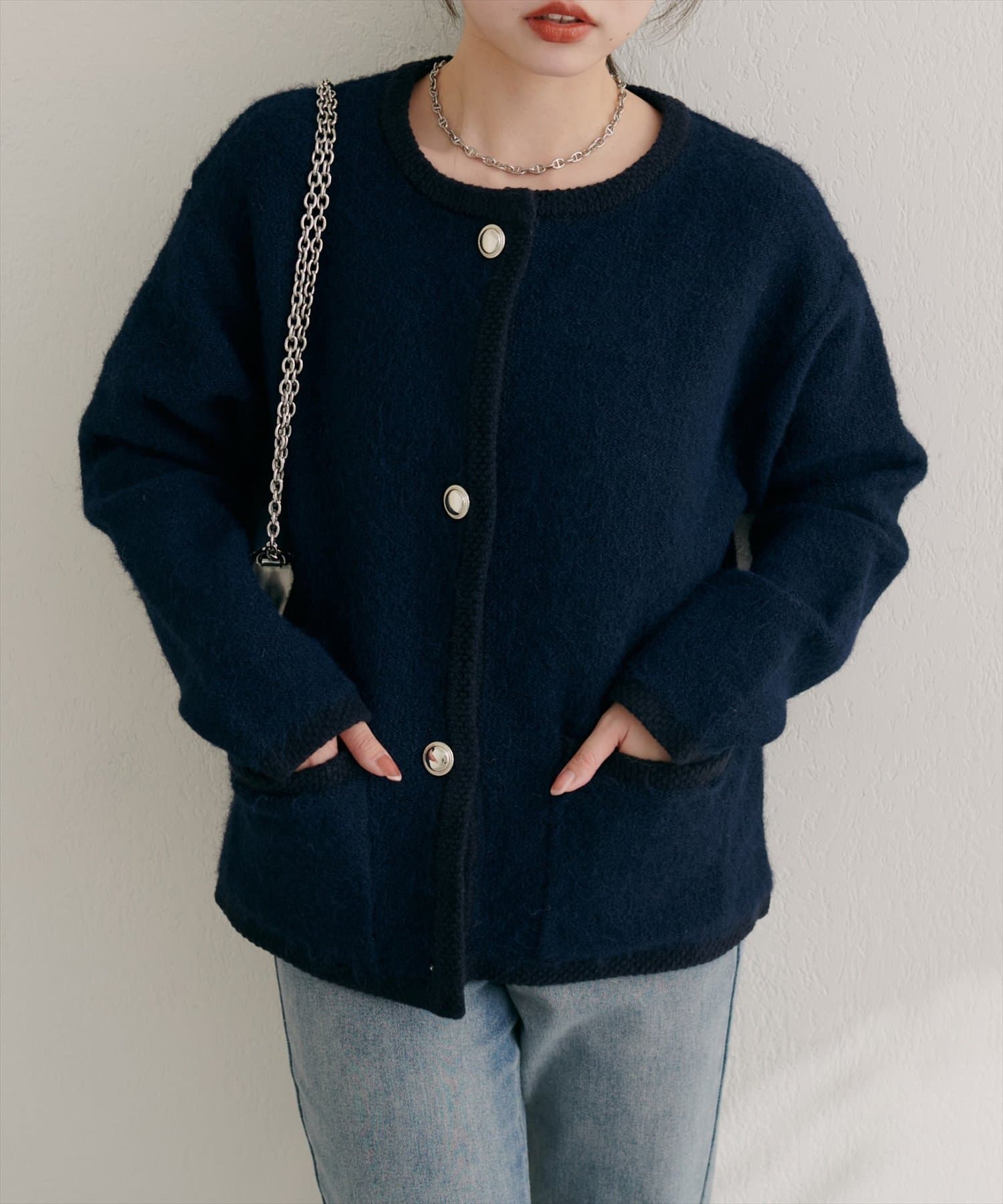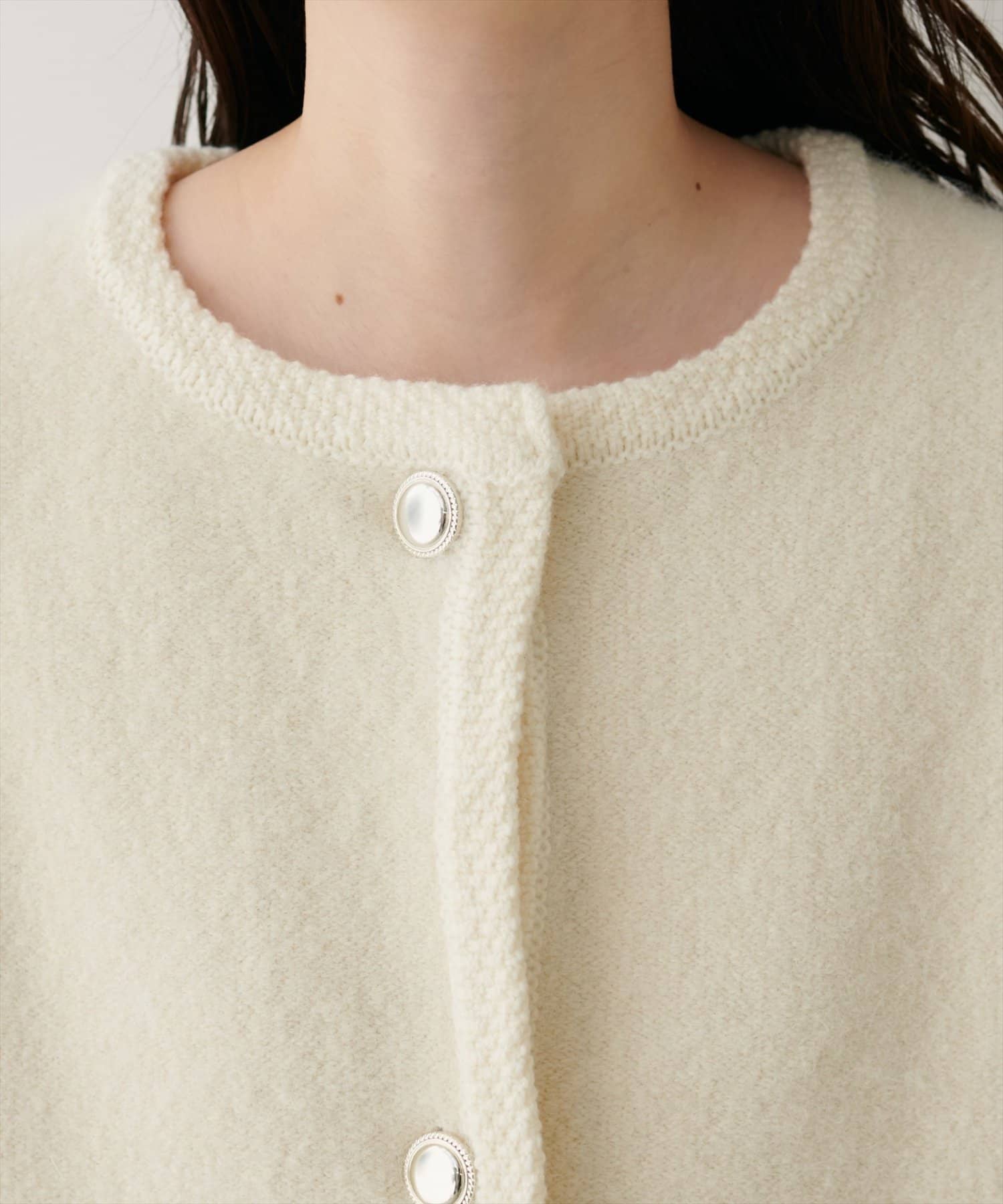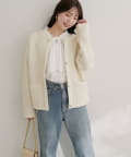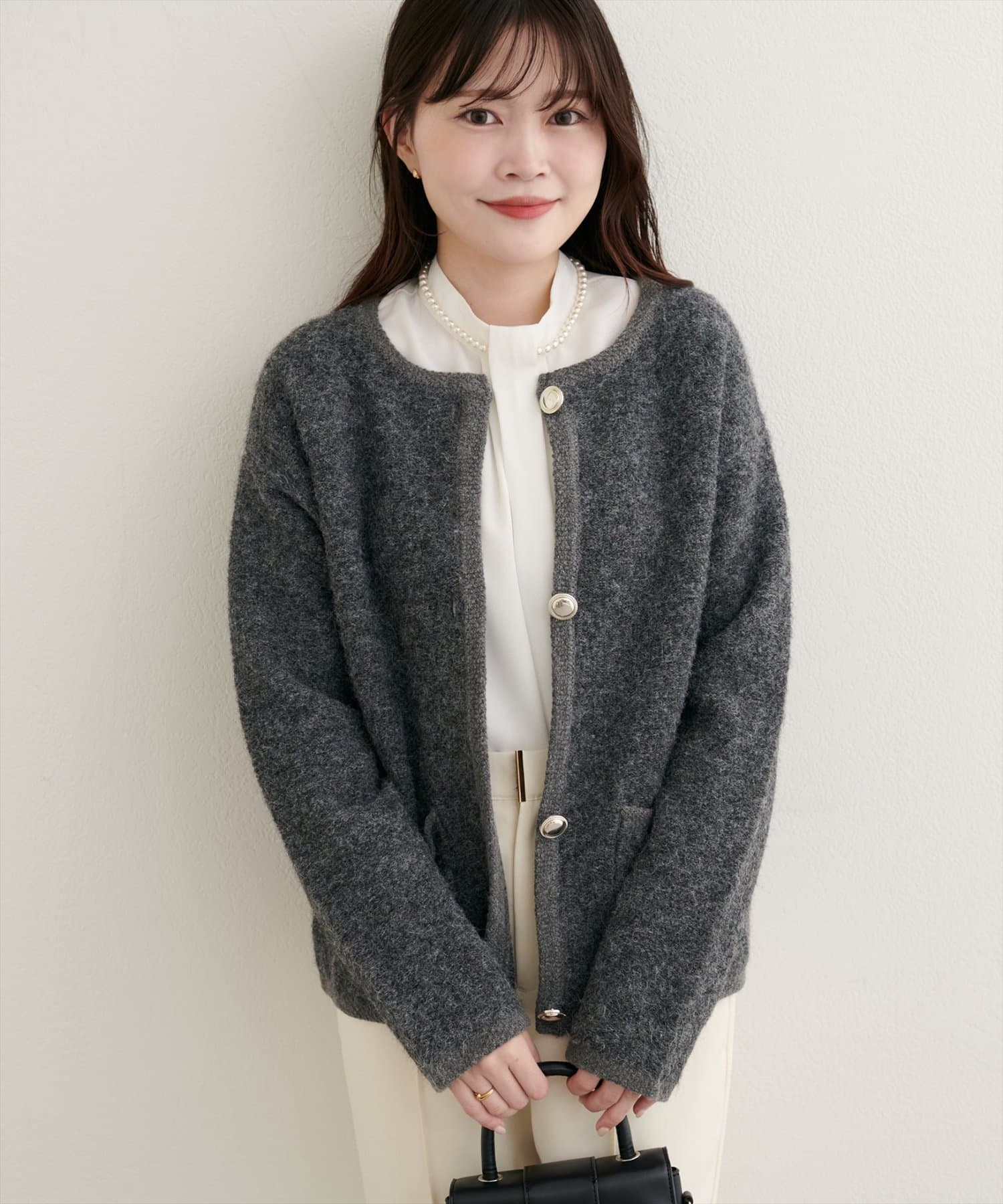 ふんわりとした暖かみのある風合いが魅力のニットジャケット。