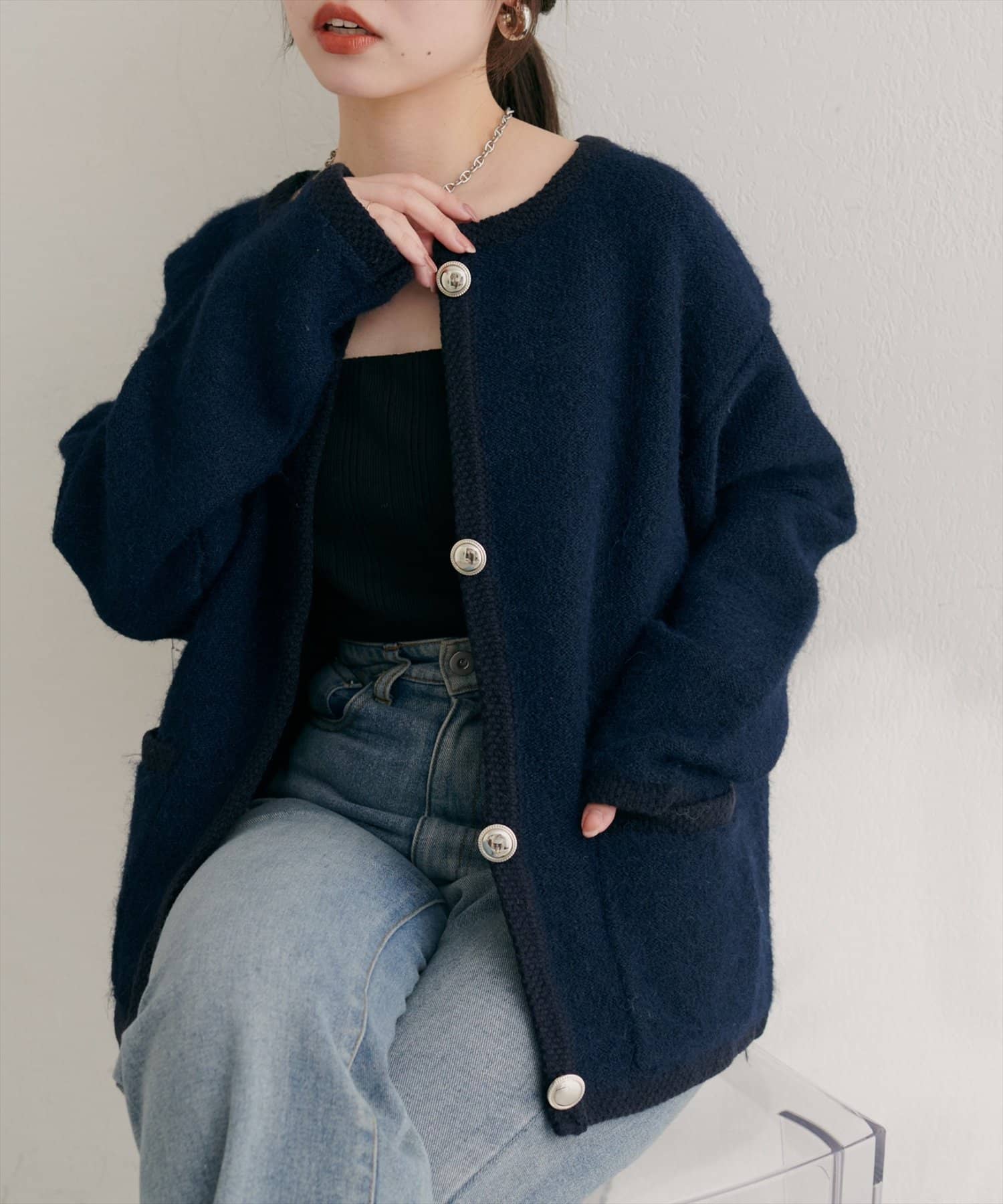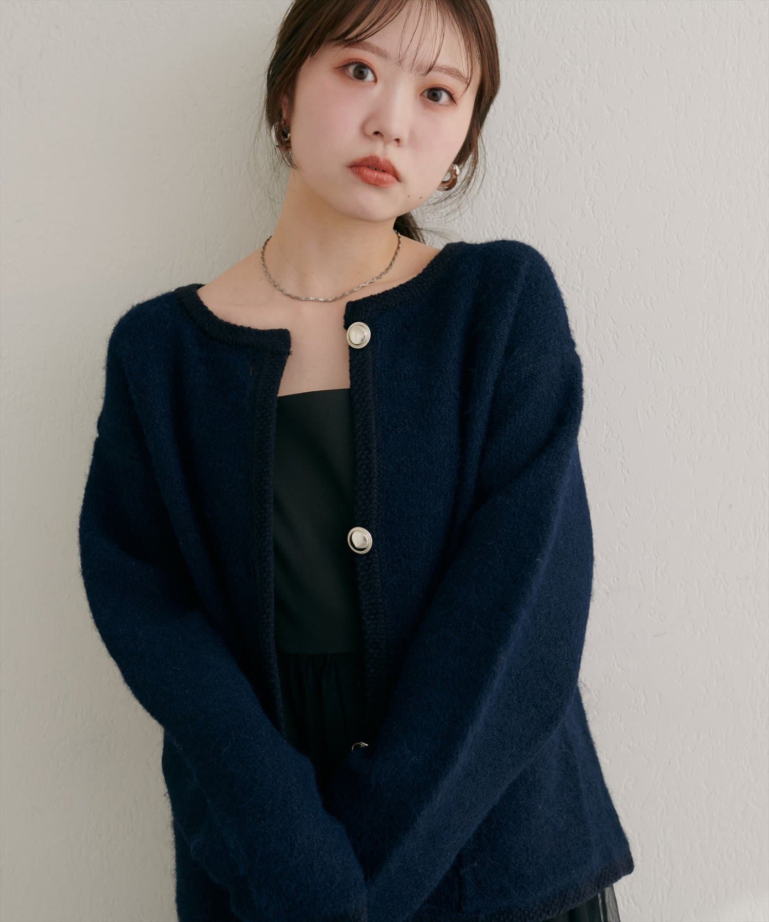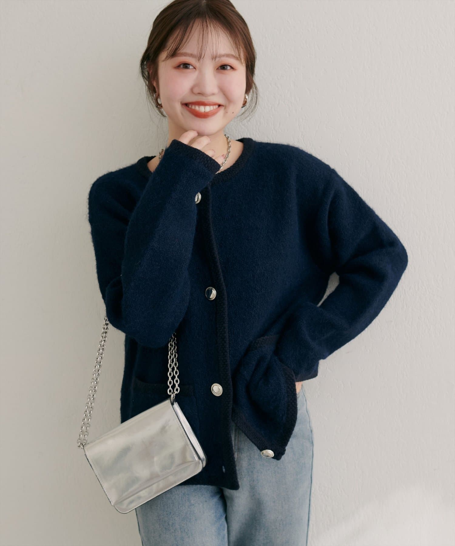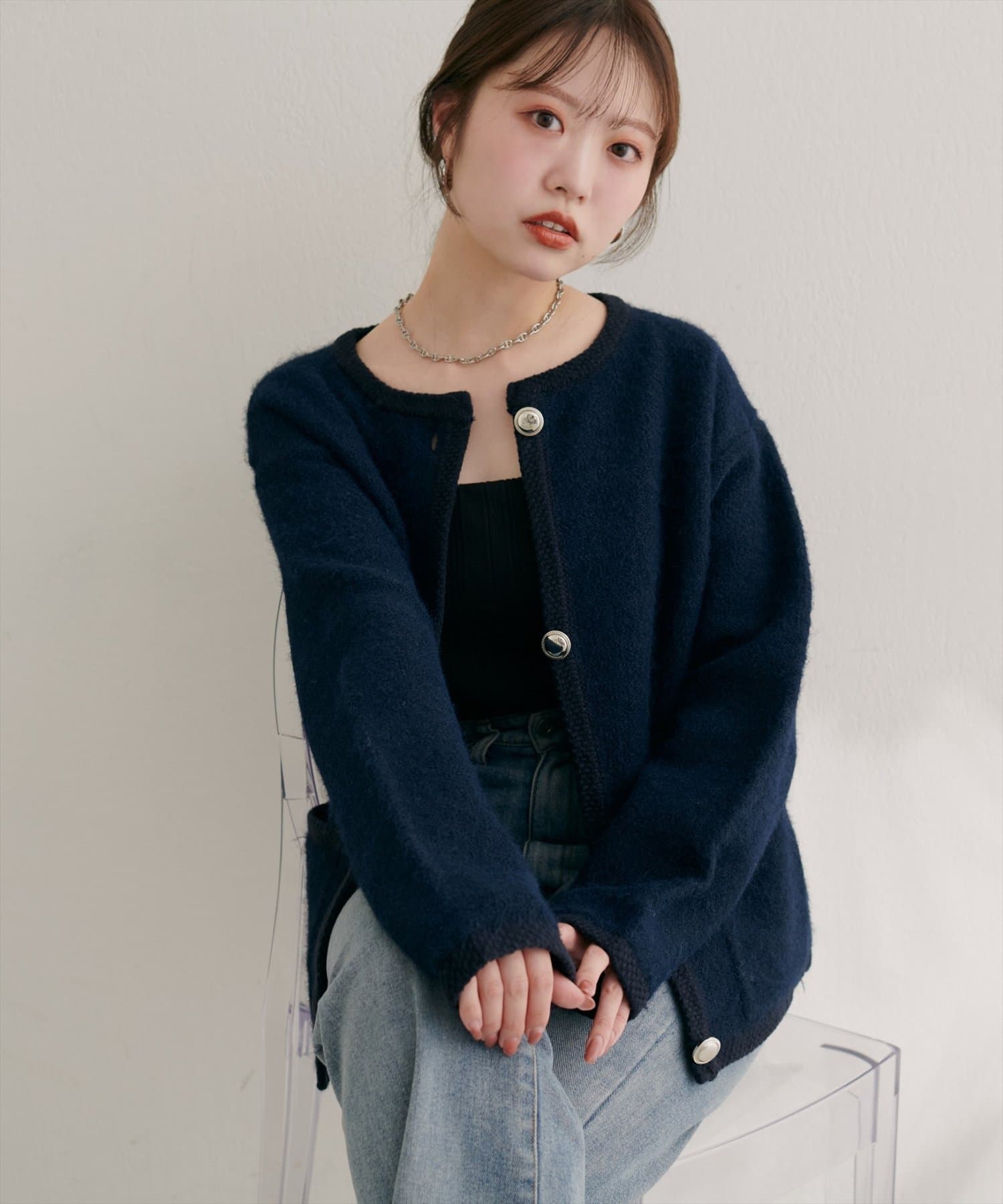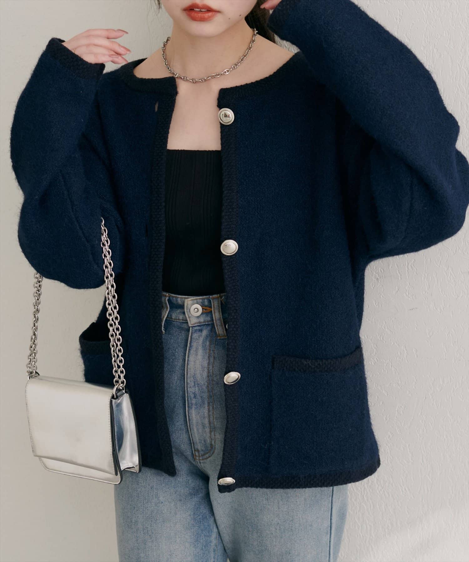 ふんわりとした暖かみのある風合いが魅力のニットジャケット。