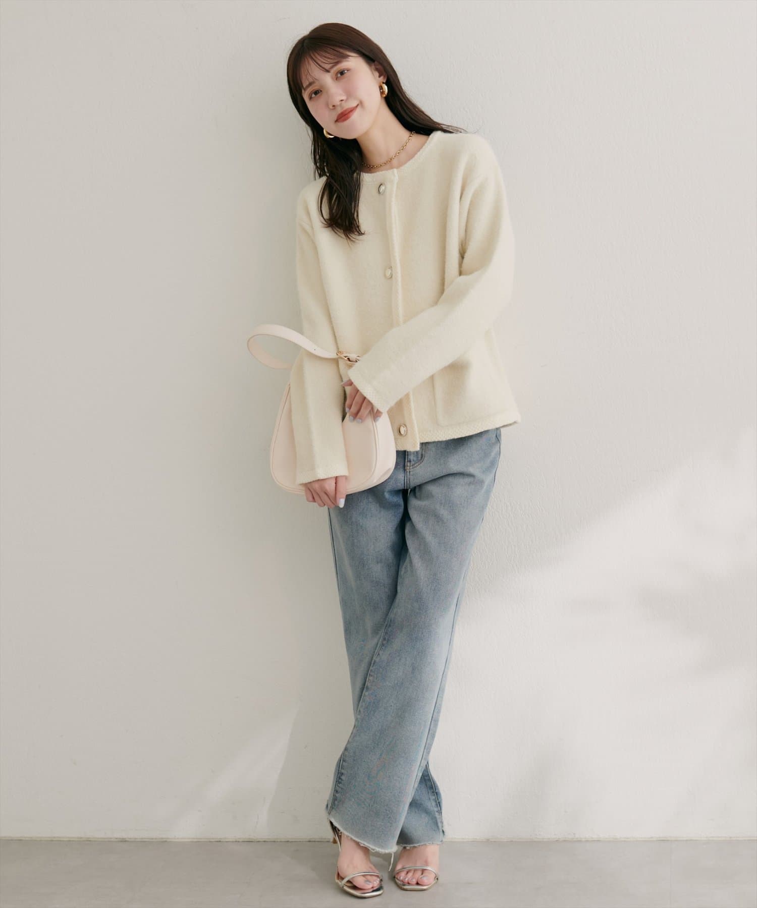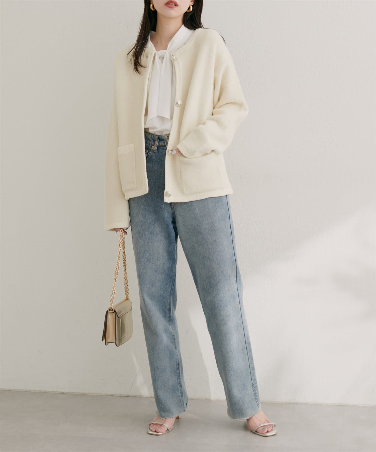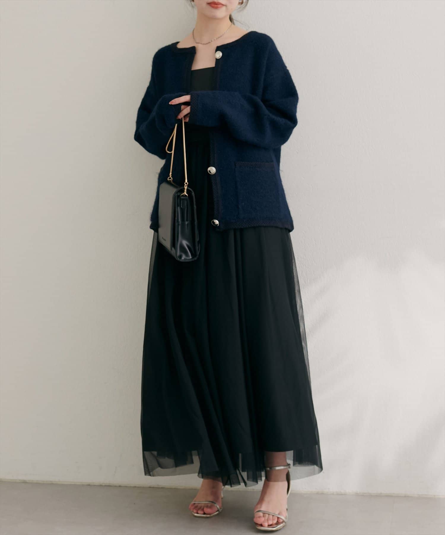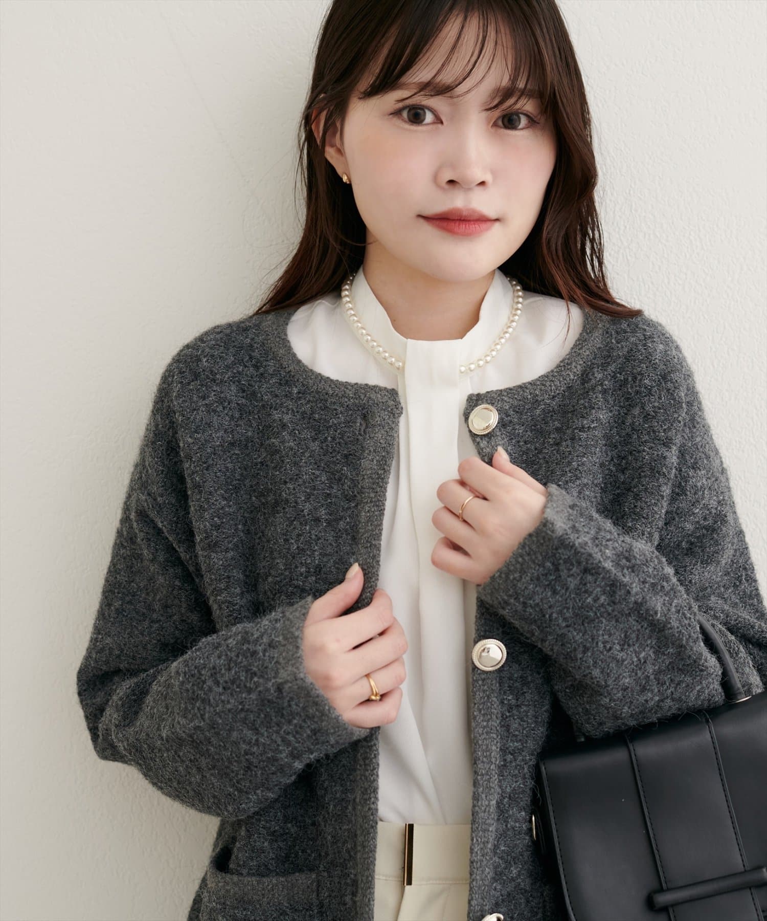 ワンピースやブラウスに羽織れば、上品でフェミニンな印象に。
