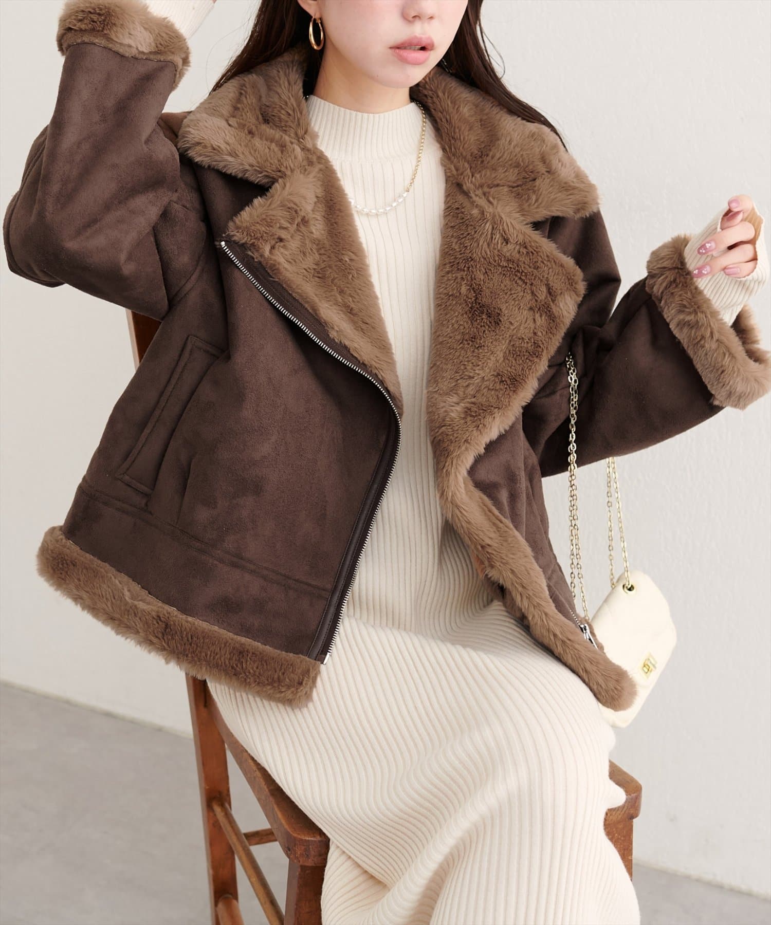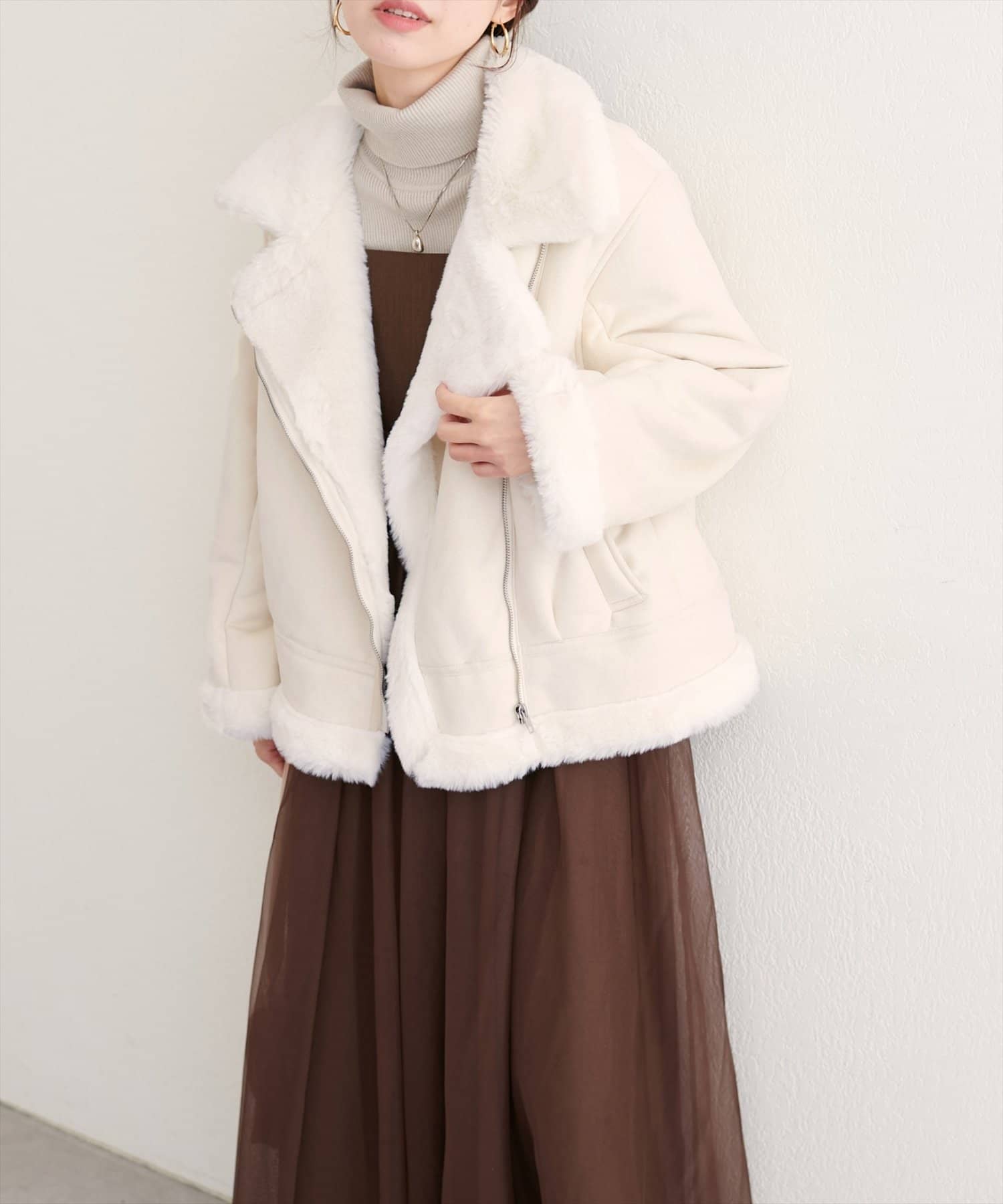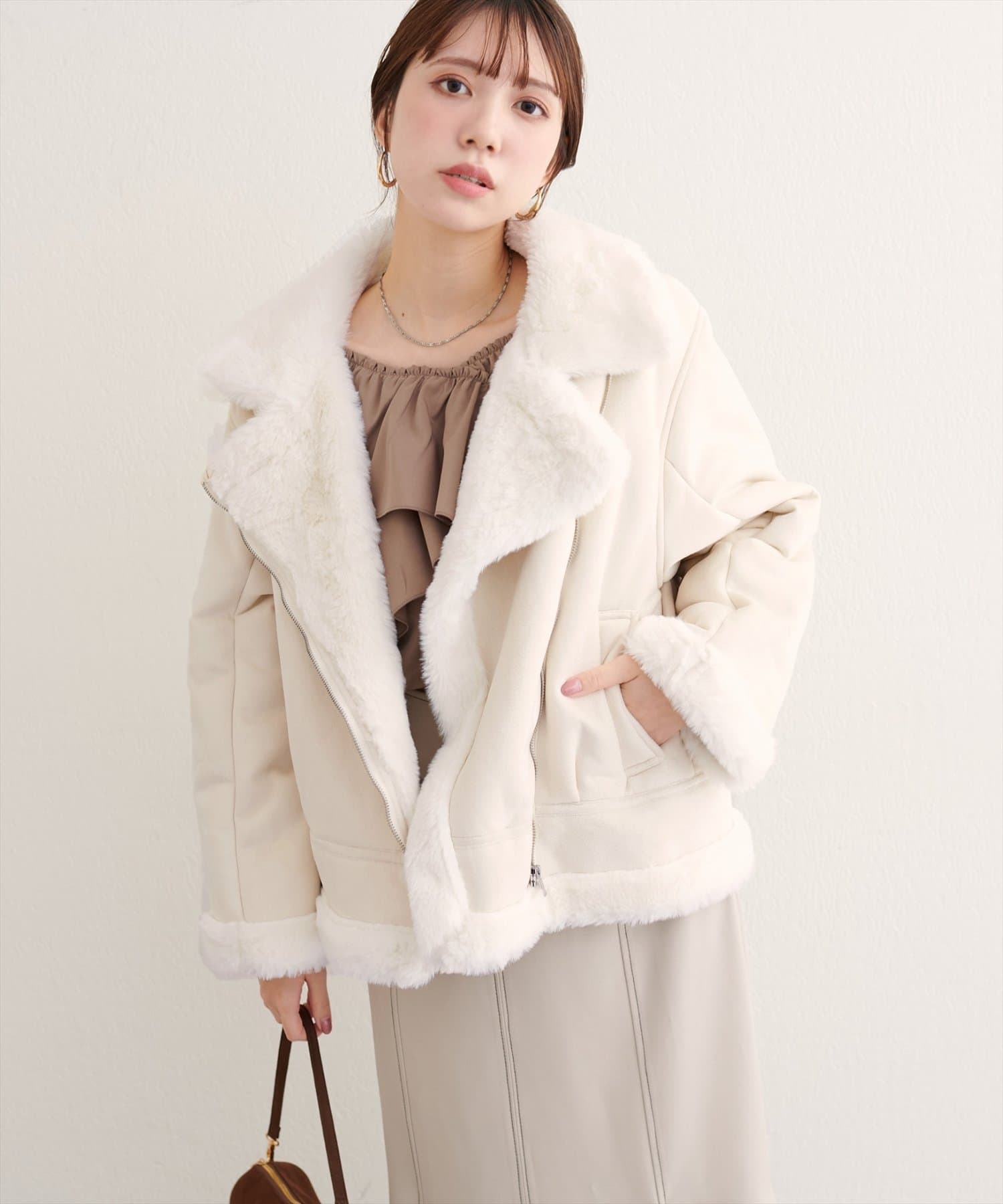 一目見た瞬間から心奪われる、ふわふわのフェイクファーが贅沢にあしらわれたムートンブルゾン。