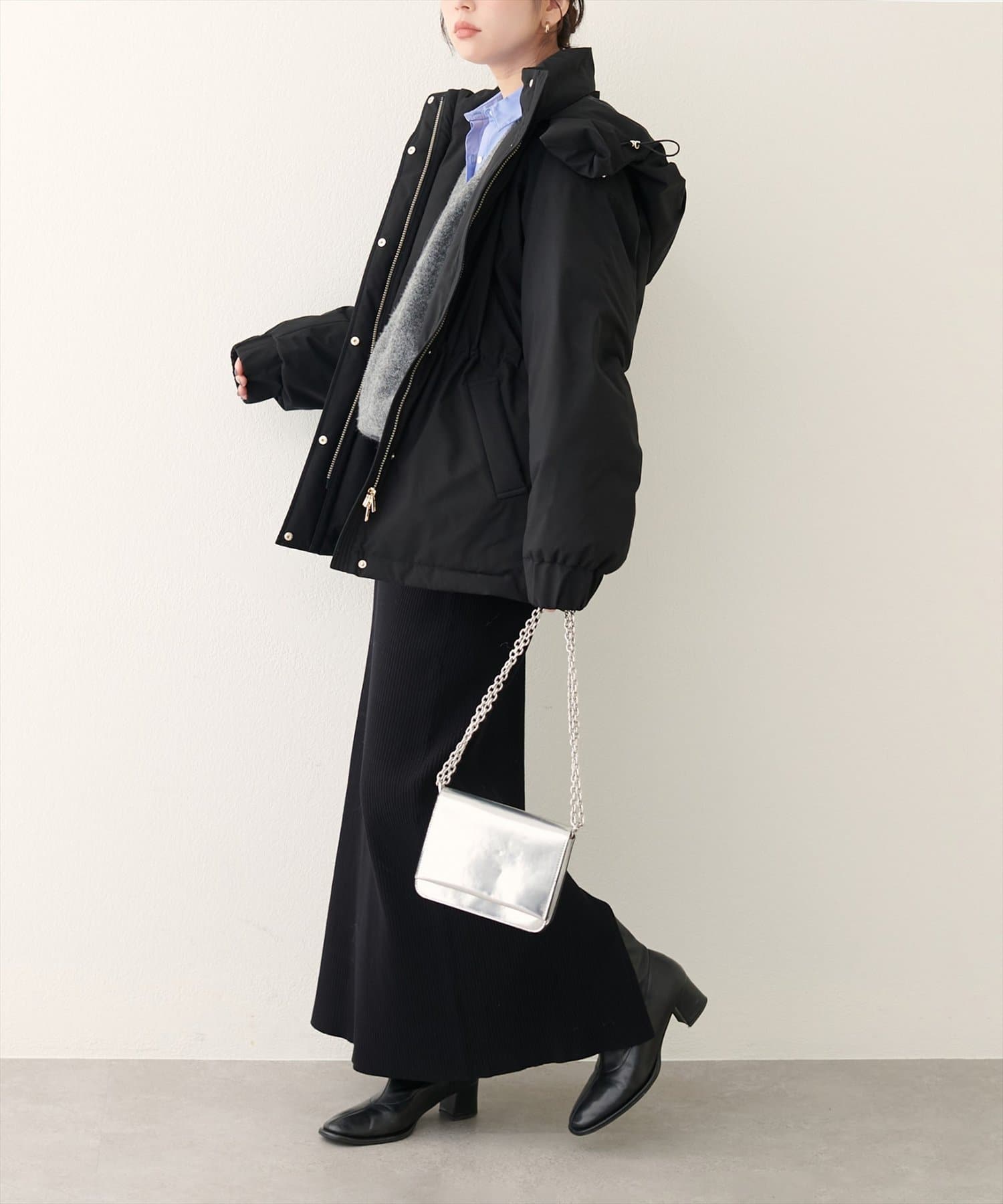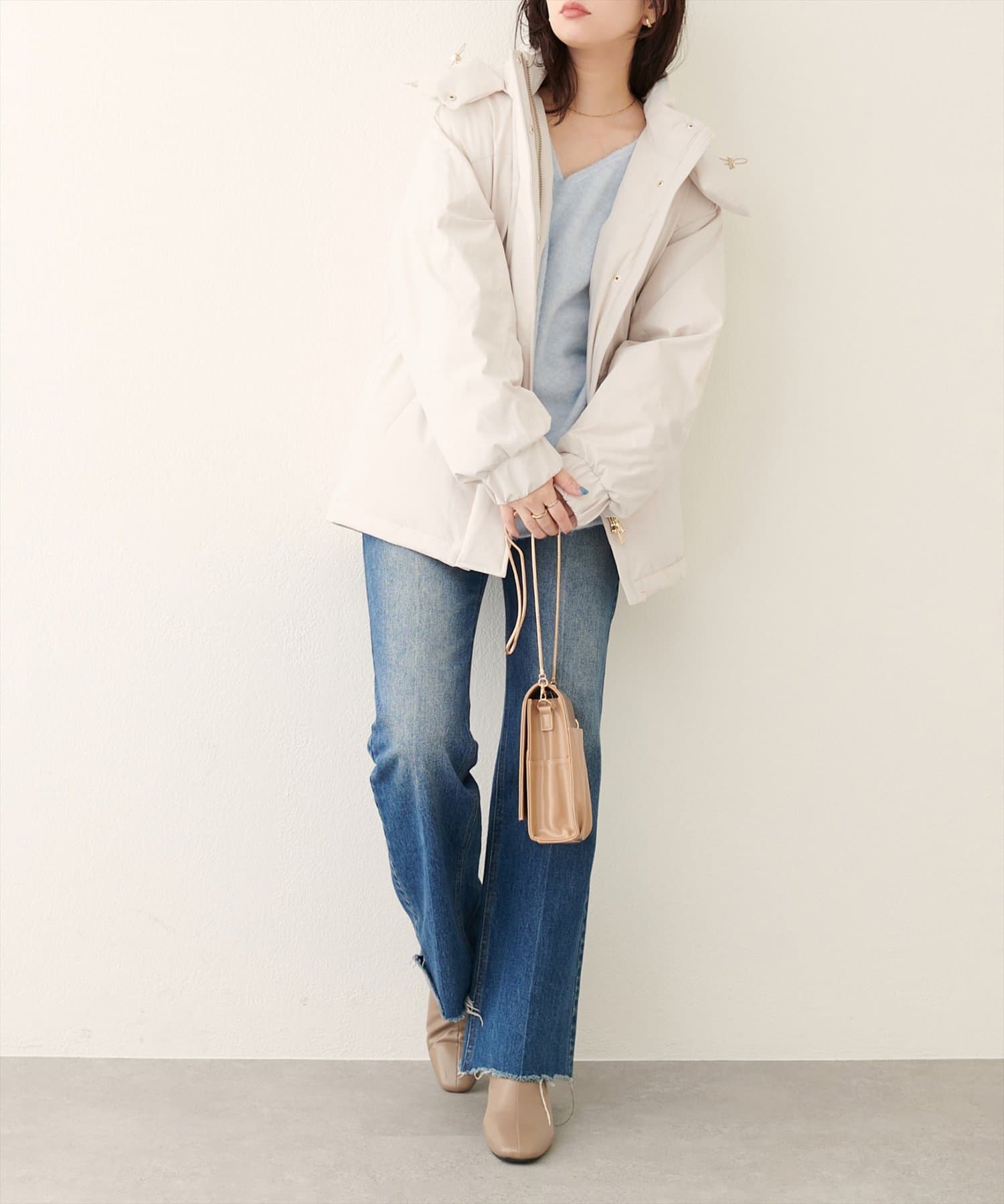 ミドル丈なのですっきりとしたボトムと合わせるのが◎