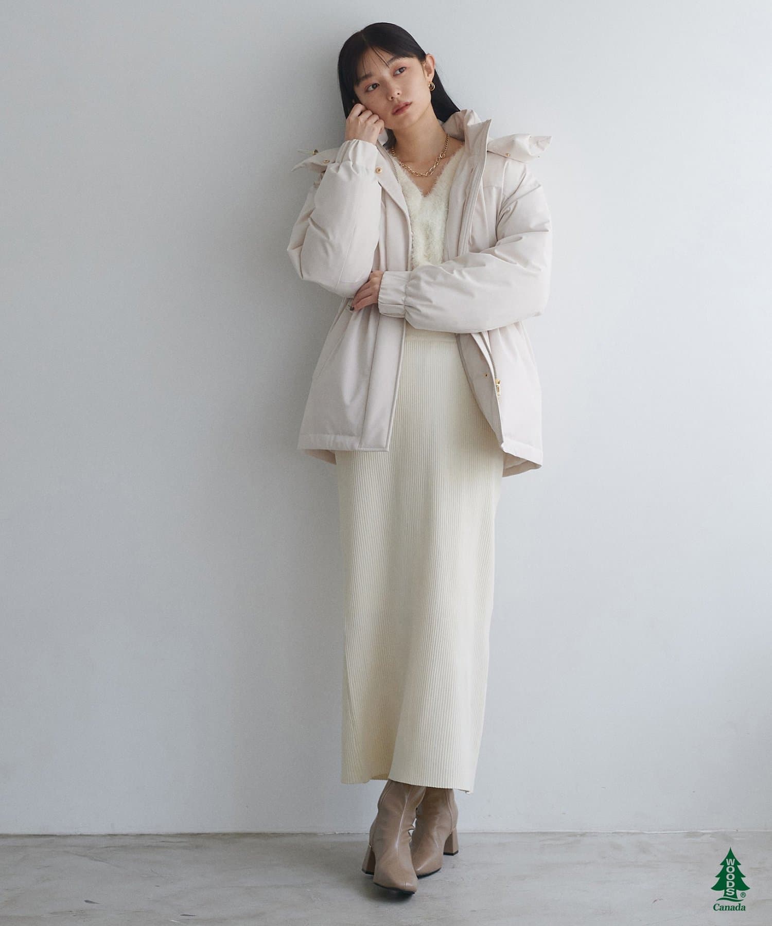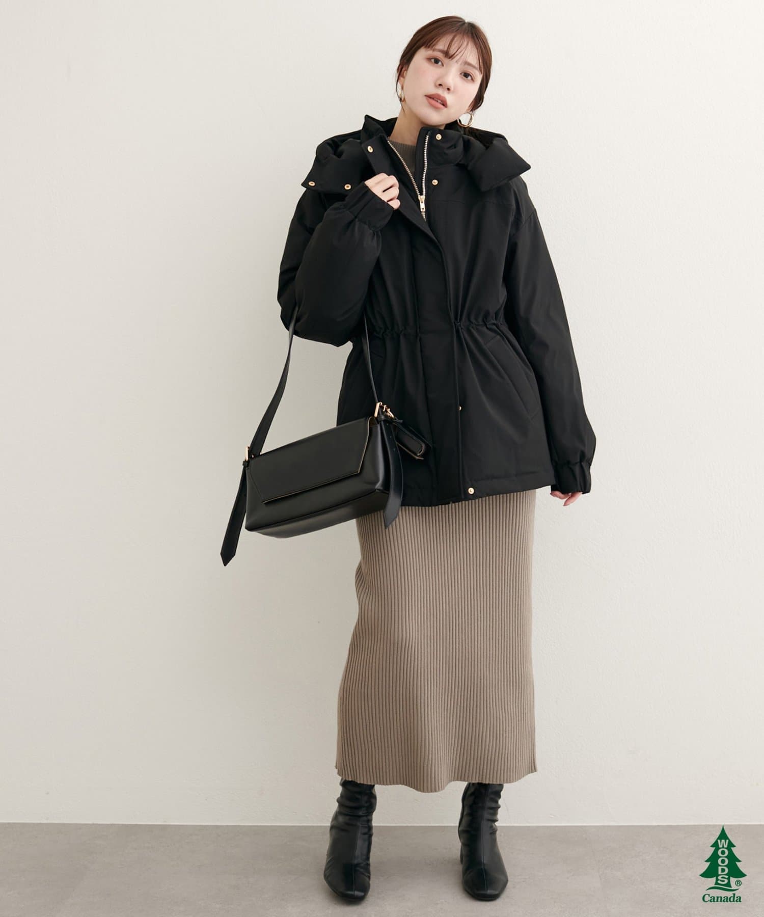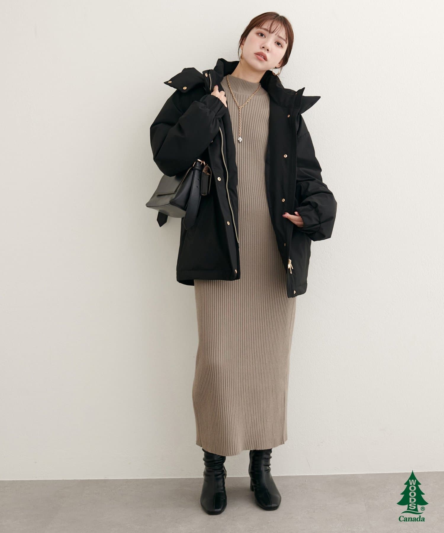 ミドル丈でカジュアルすぎずキレイめにも使いやすいダウン。