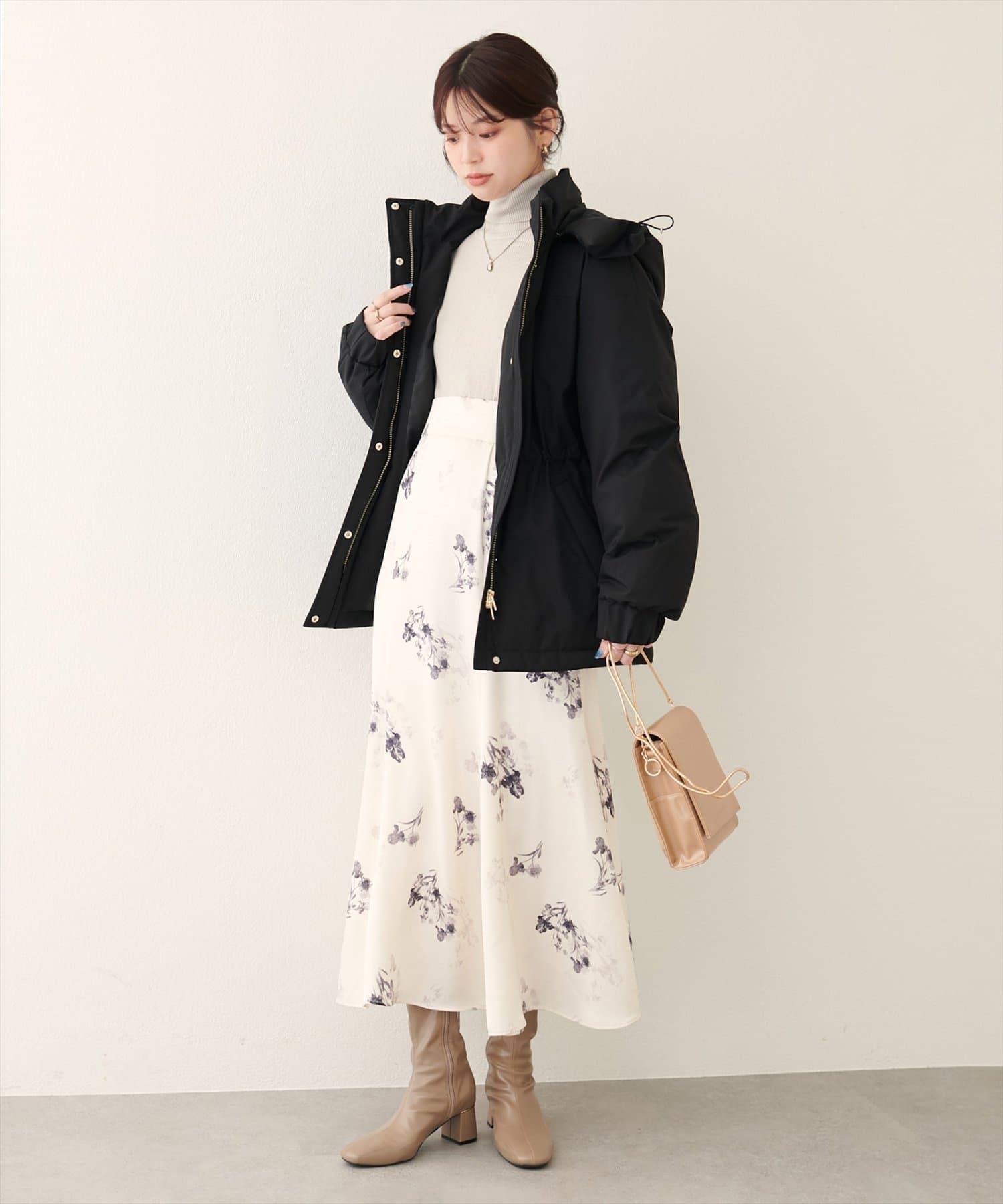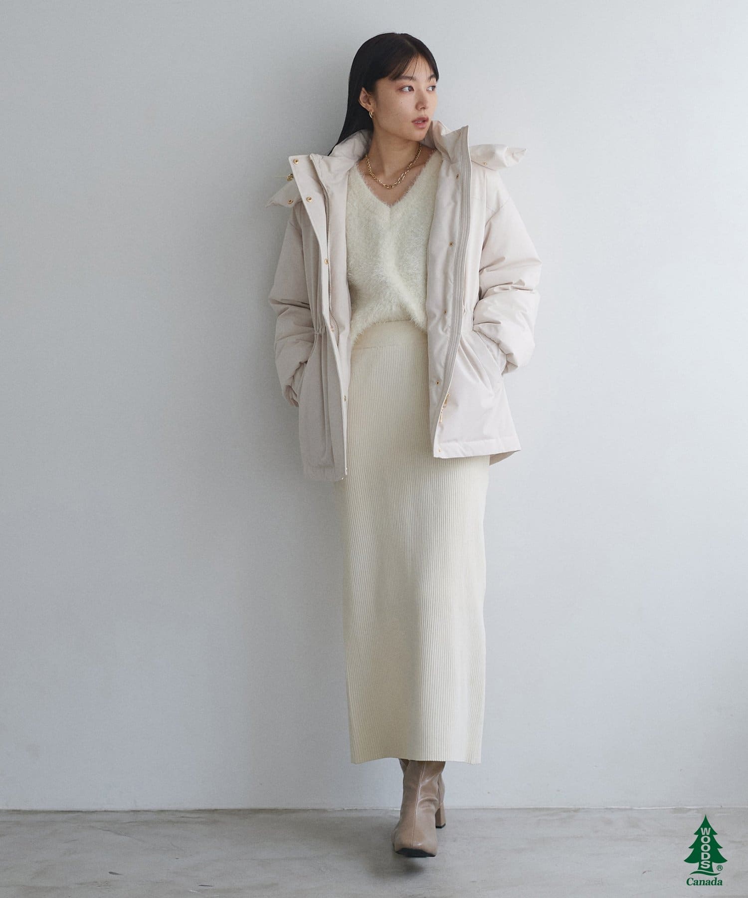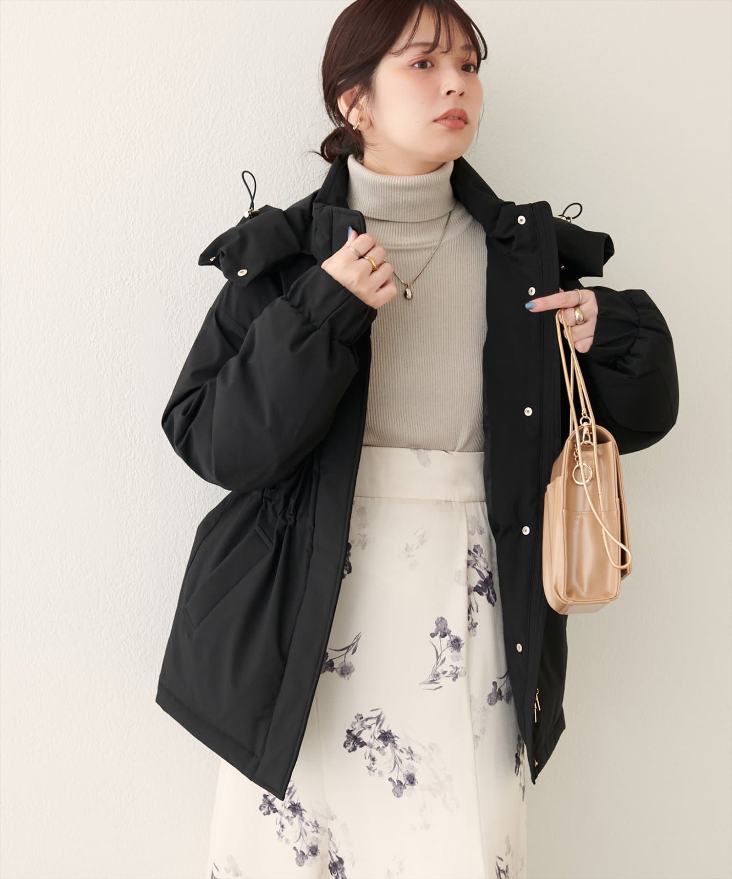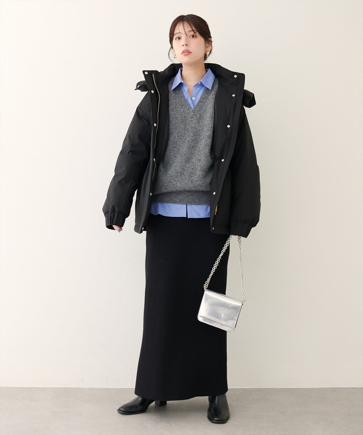 ミドル丈でカジュアルすぎずキレイめにも使いやすいダウン。