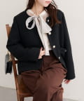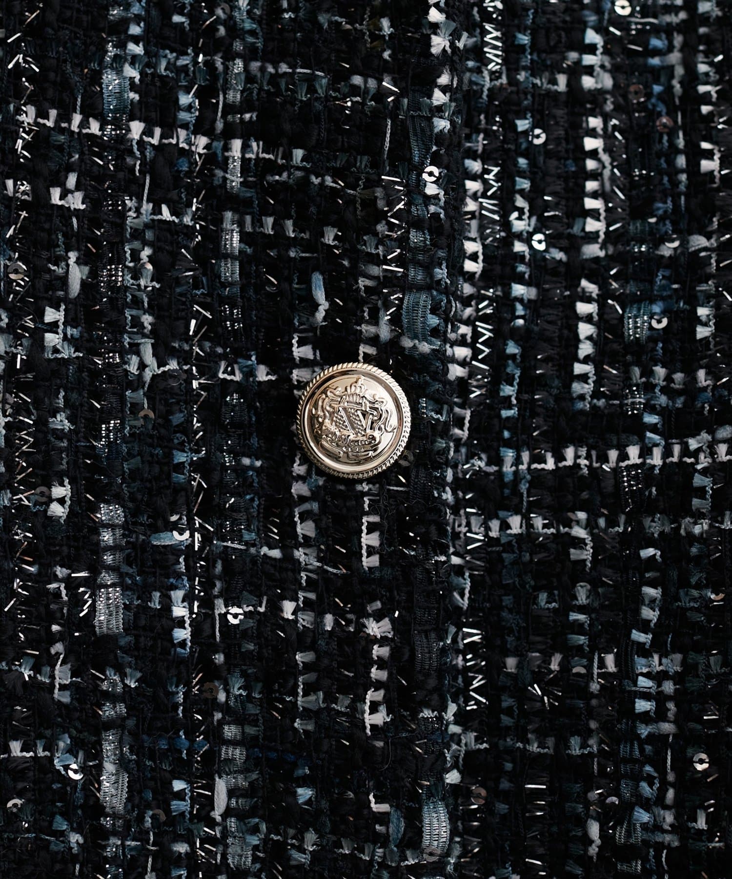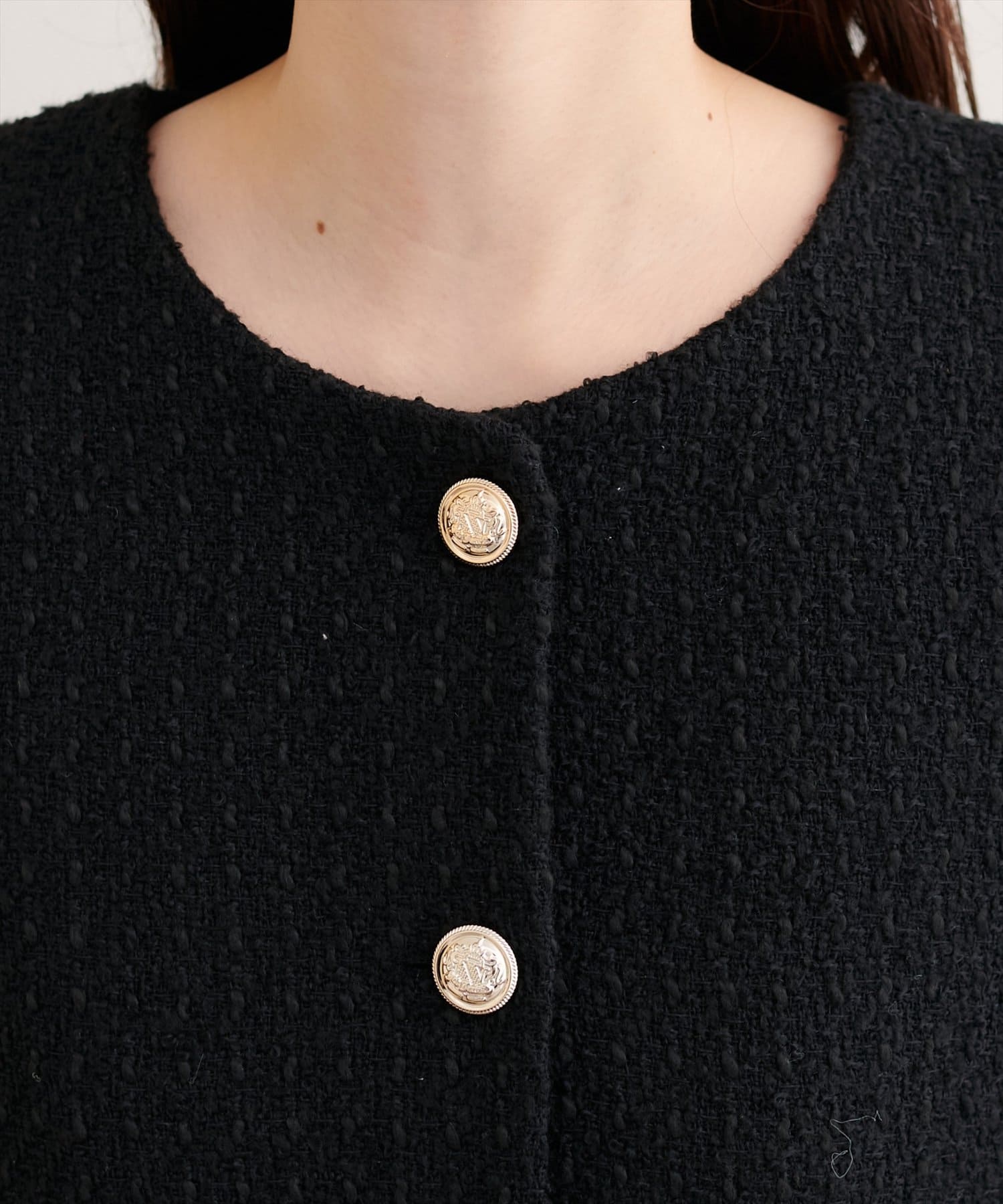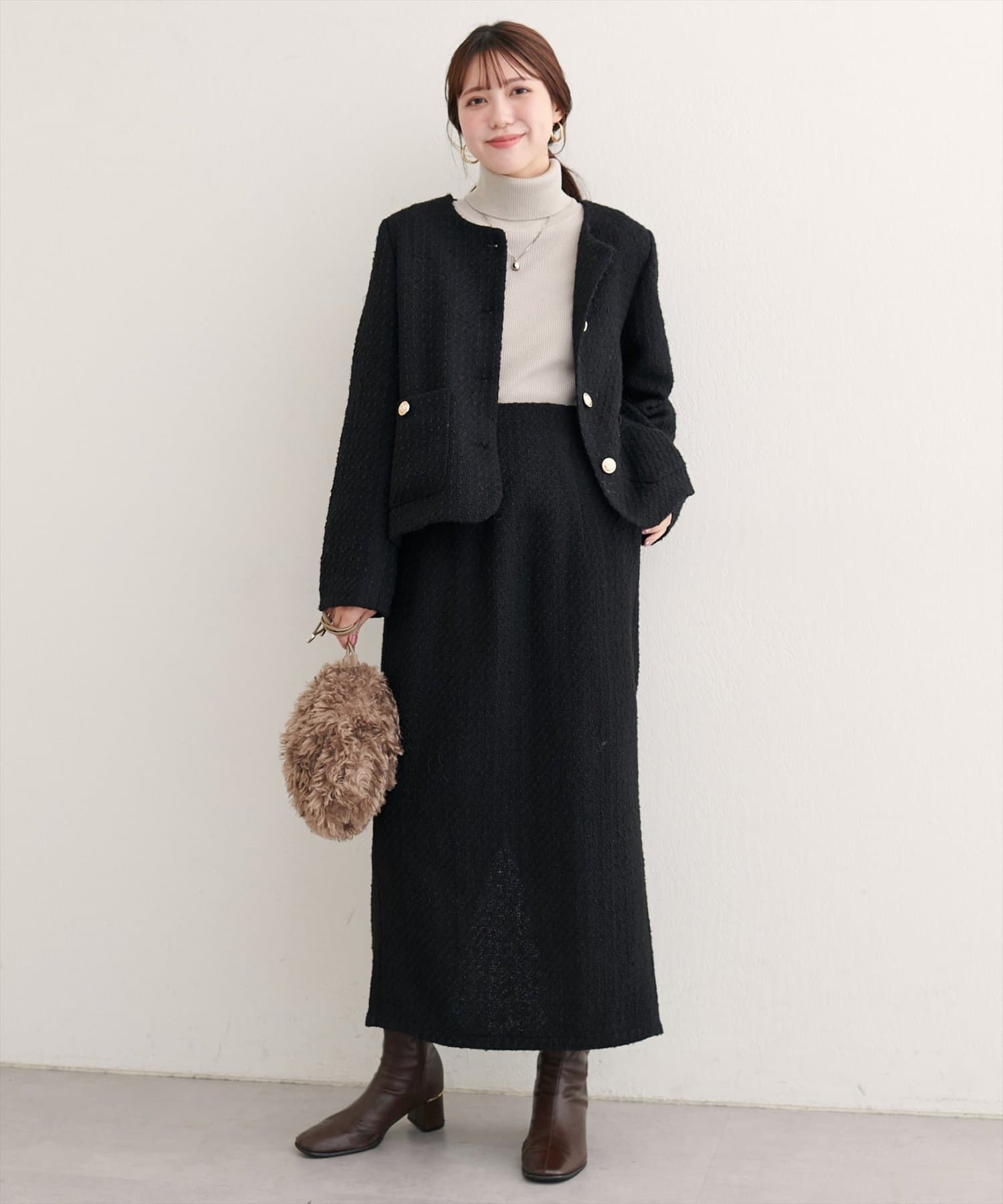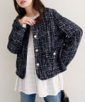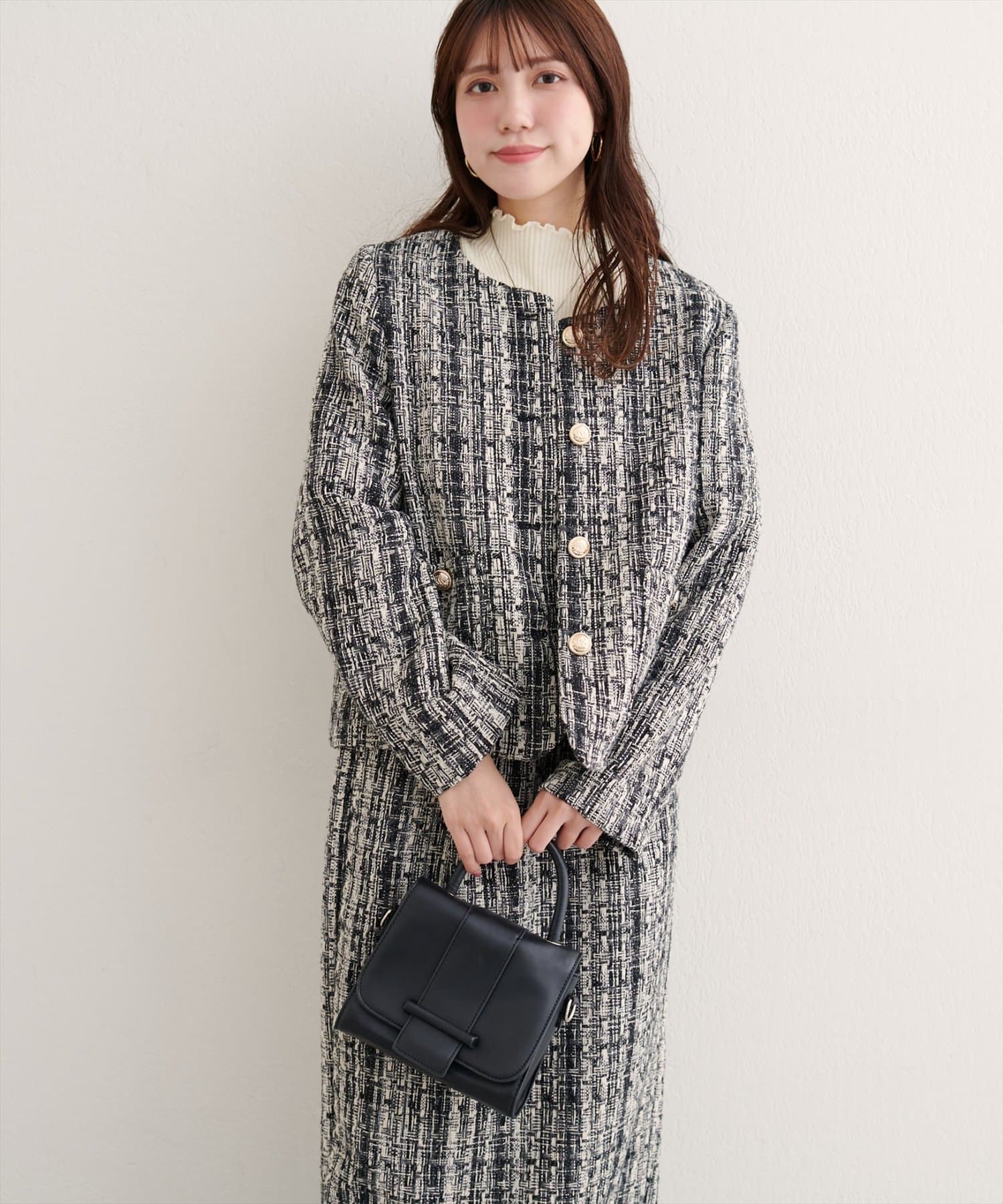 きちんと感とこなれ感を両立する、MIXツイードノーカラージャケット。