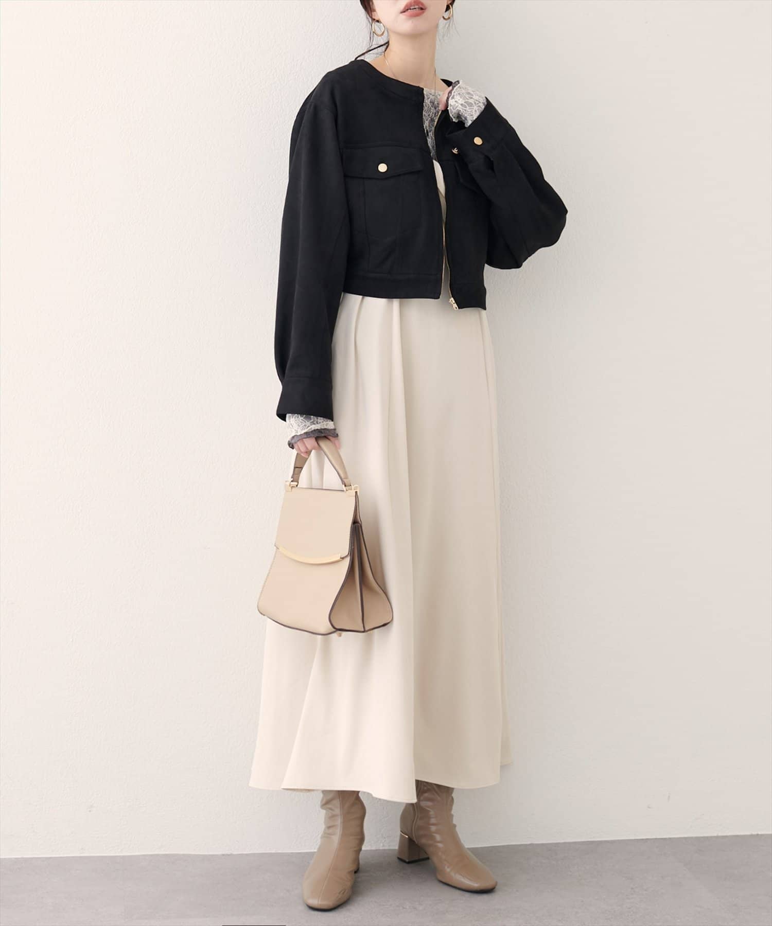 ワンピースやスカートと合わせればフェミニンに、パンツと合わせればクールにと、様々なスタイルを楽しめます。