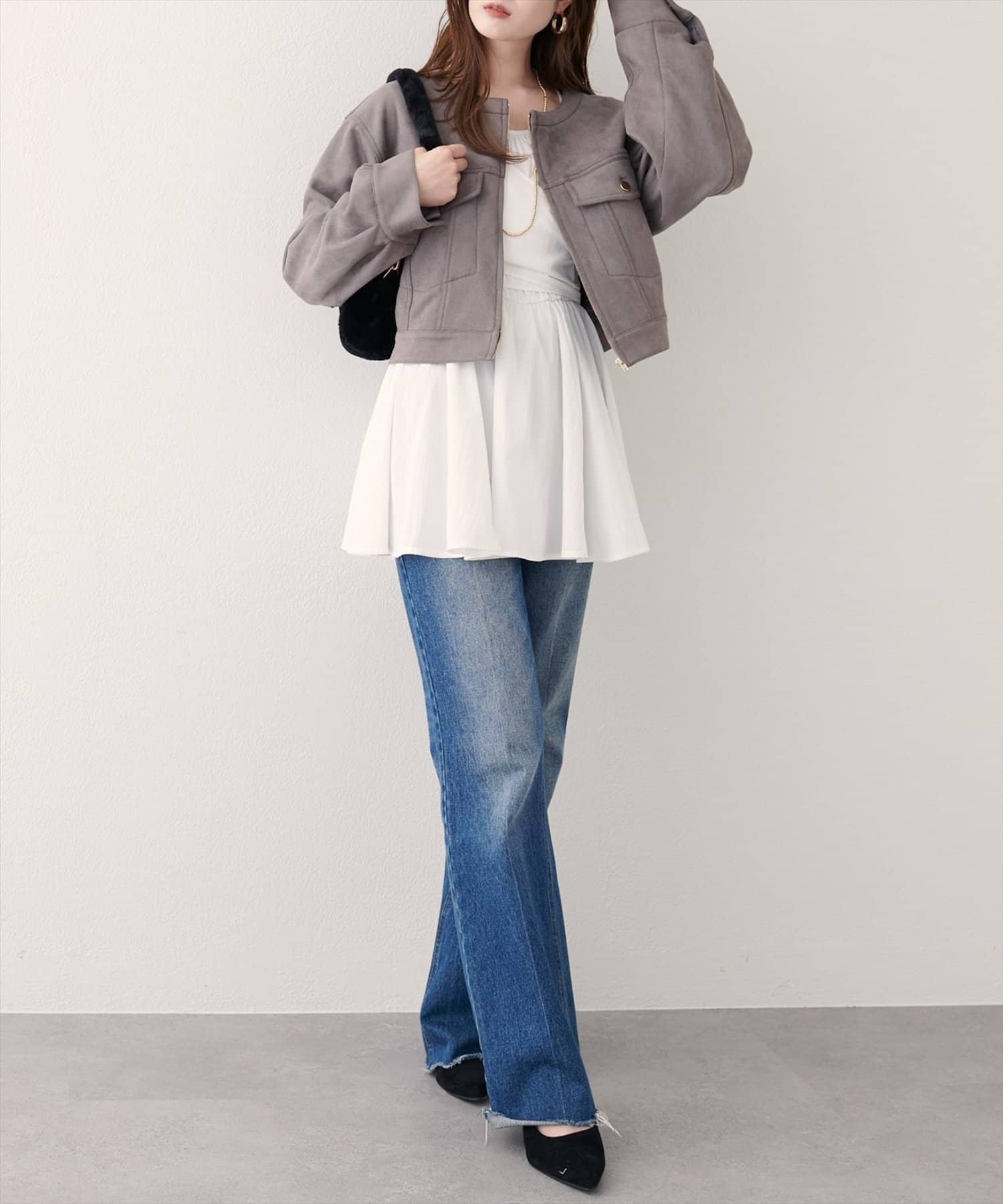 ワンピースやスカートと合わせればフェミニンに、パンツと合わせればクールにと、様々なスタイルを楽しめます。