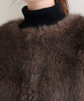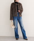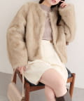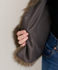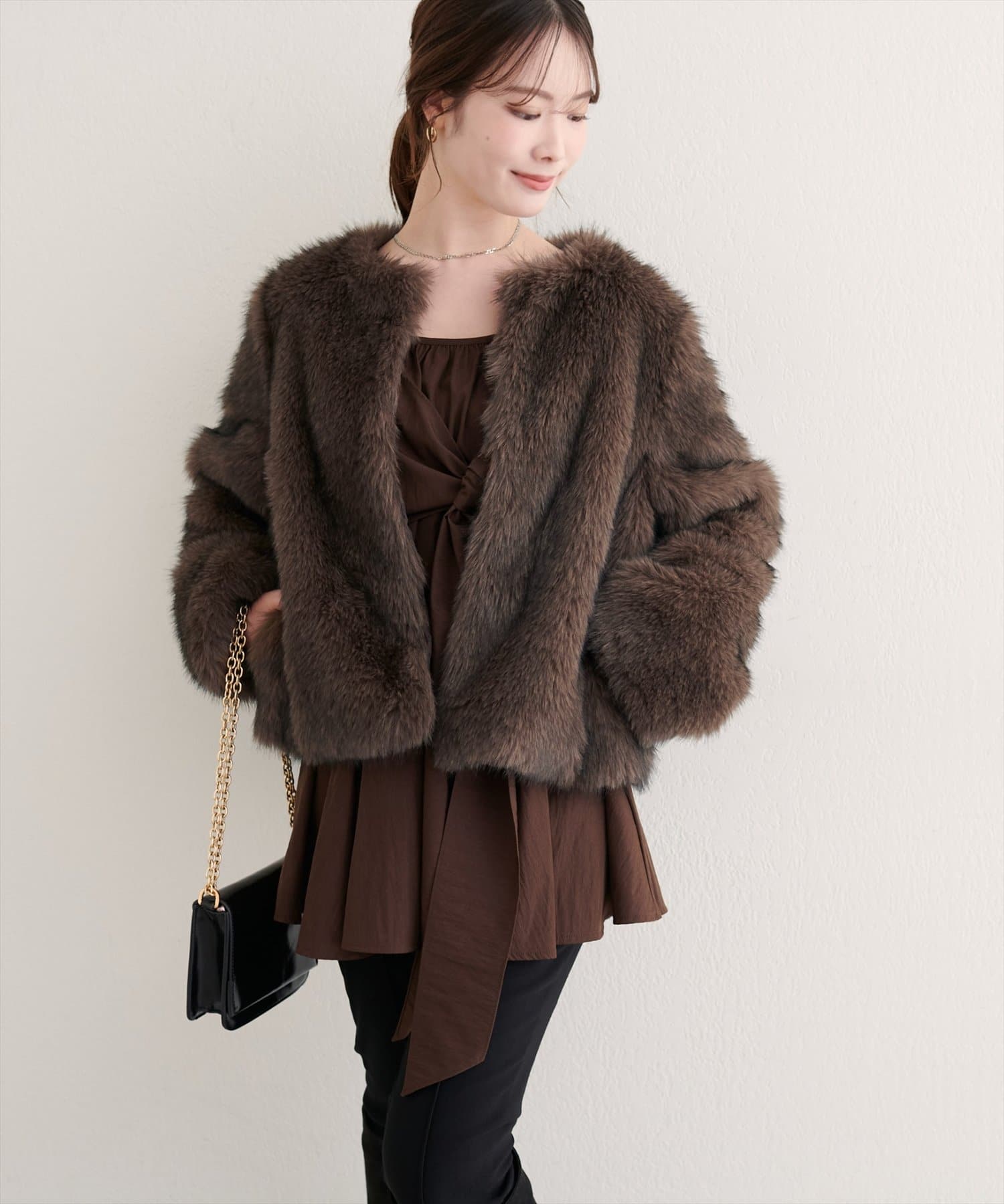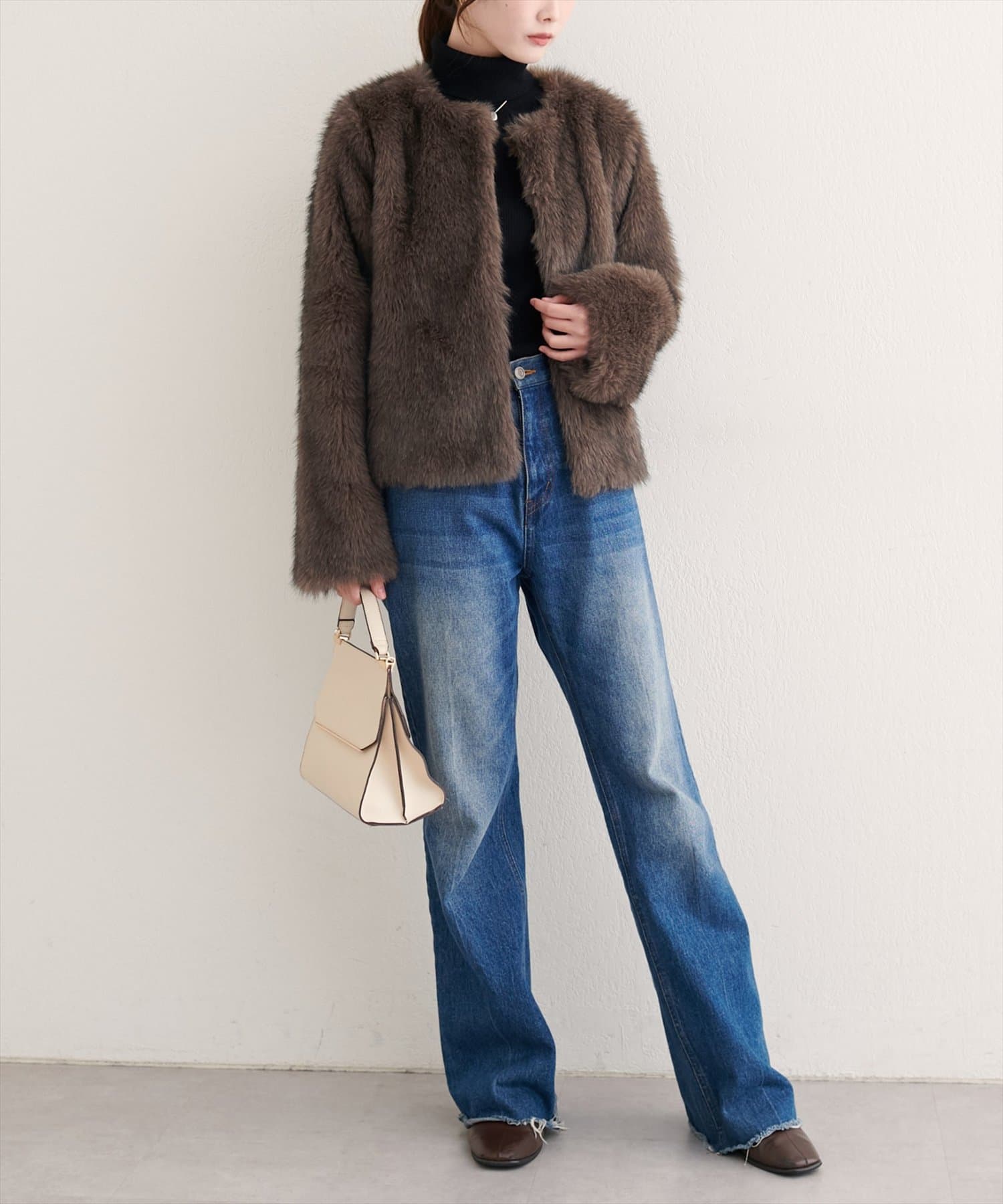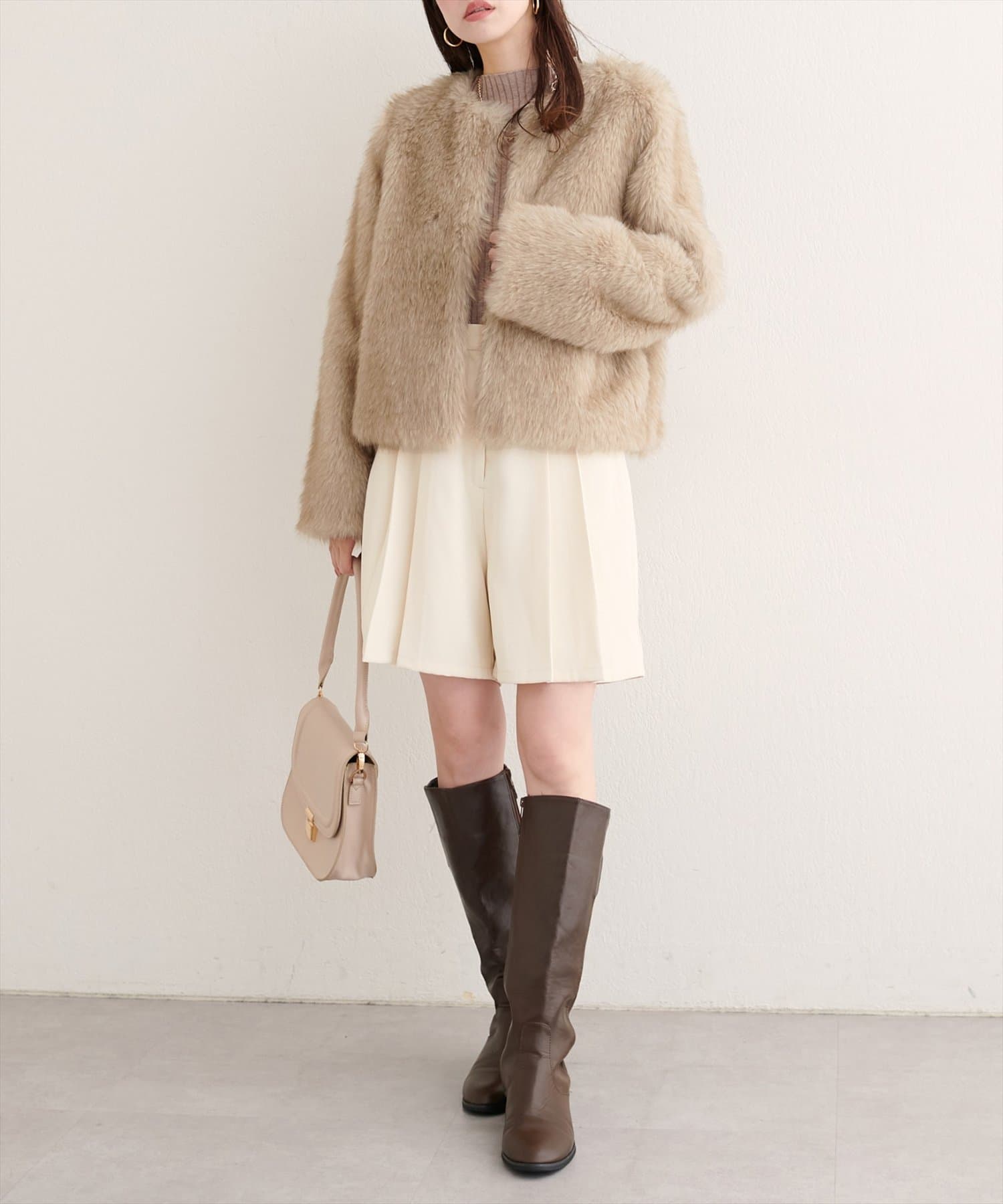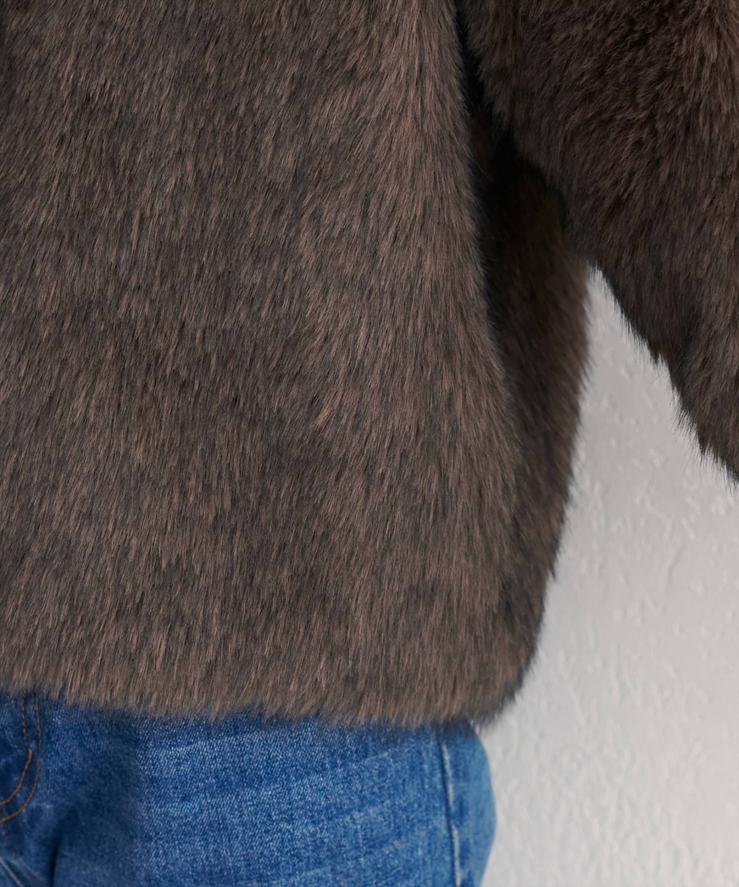 ふんわりとした柔らかな手触りが魅力の、ノーカラーファージャケット。