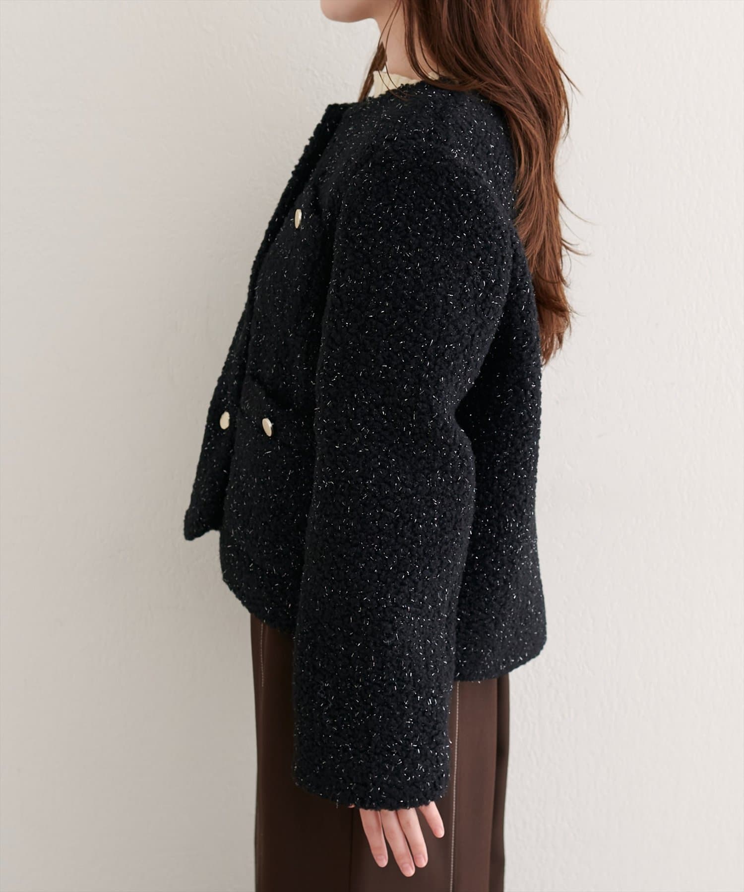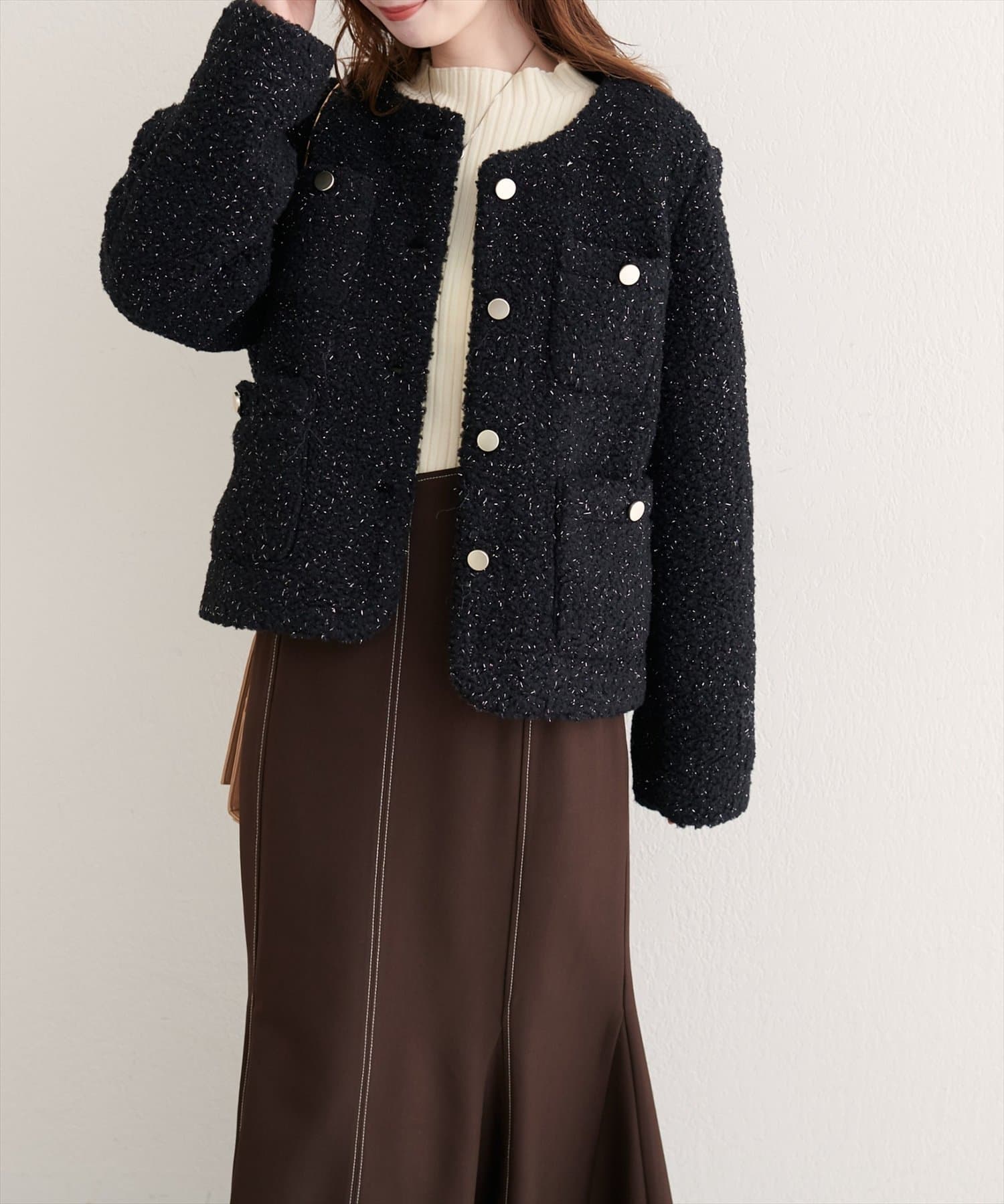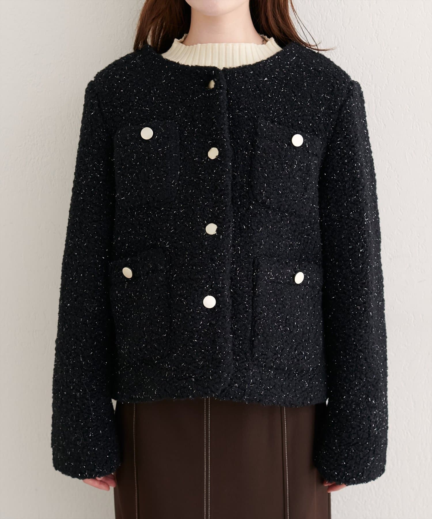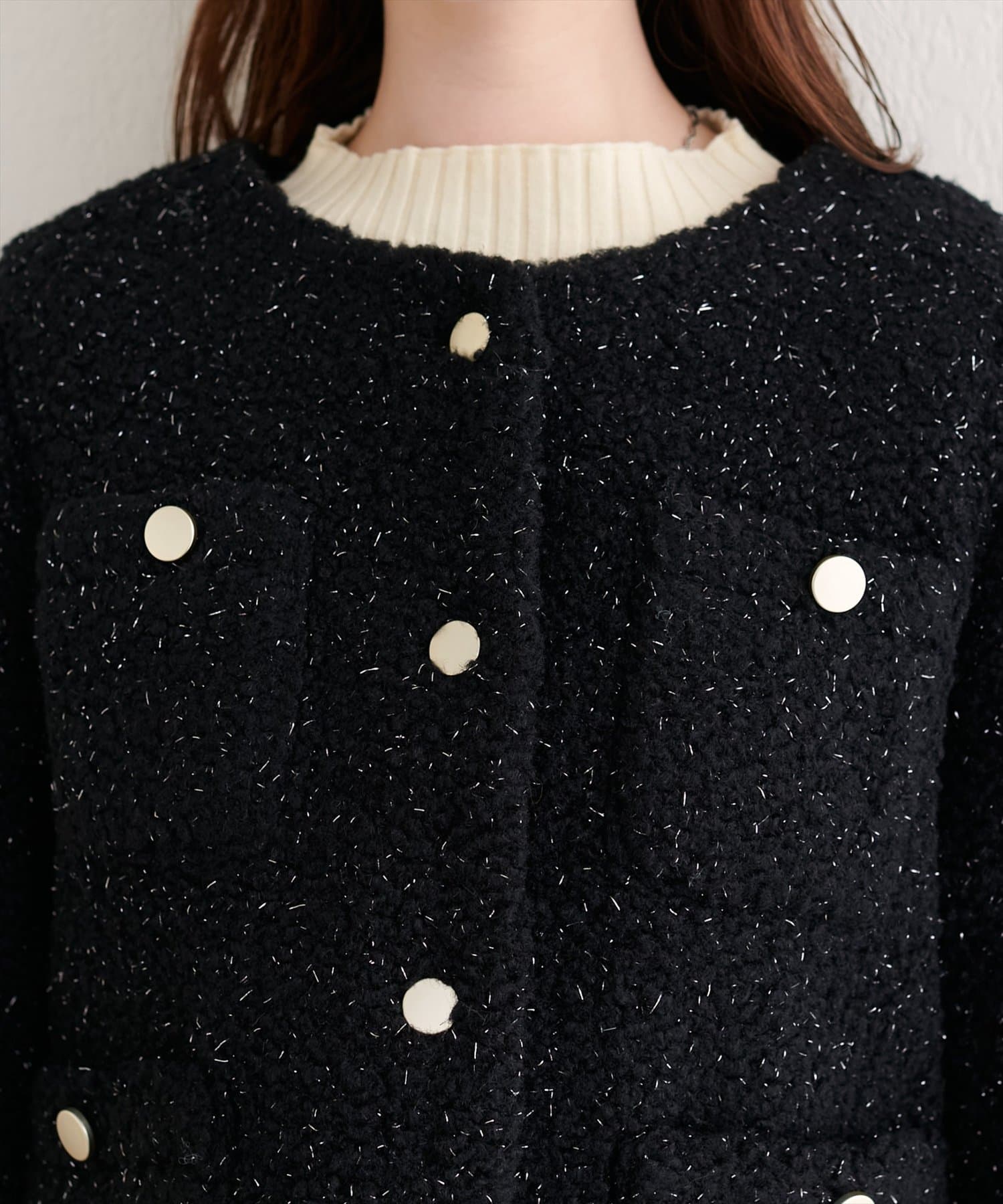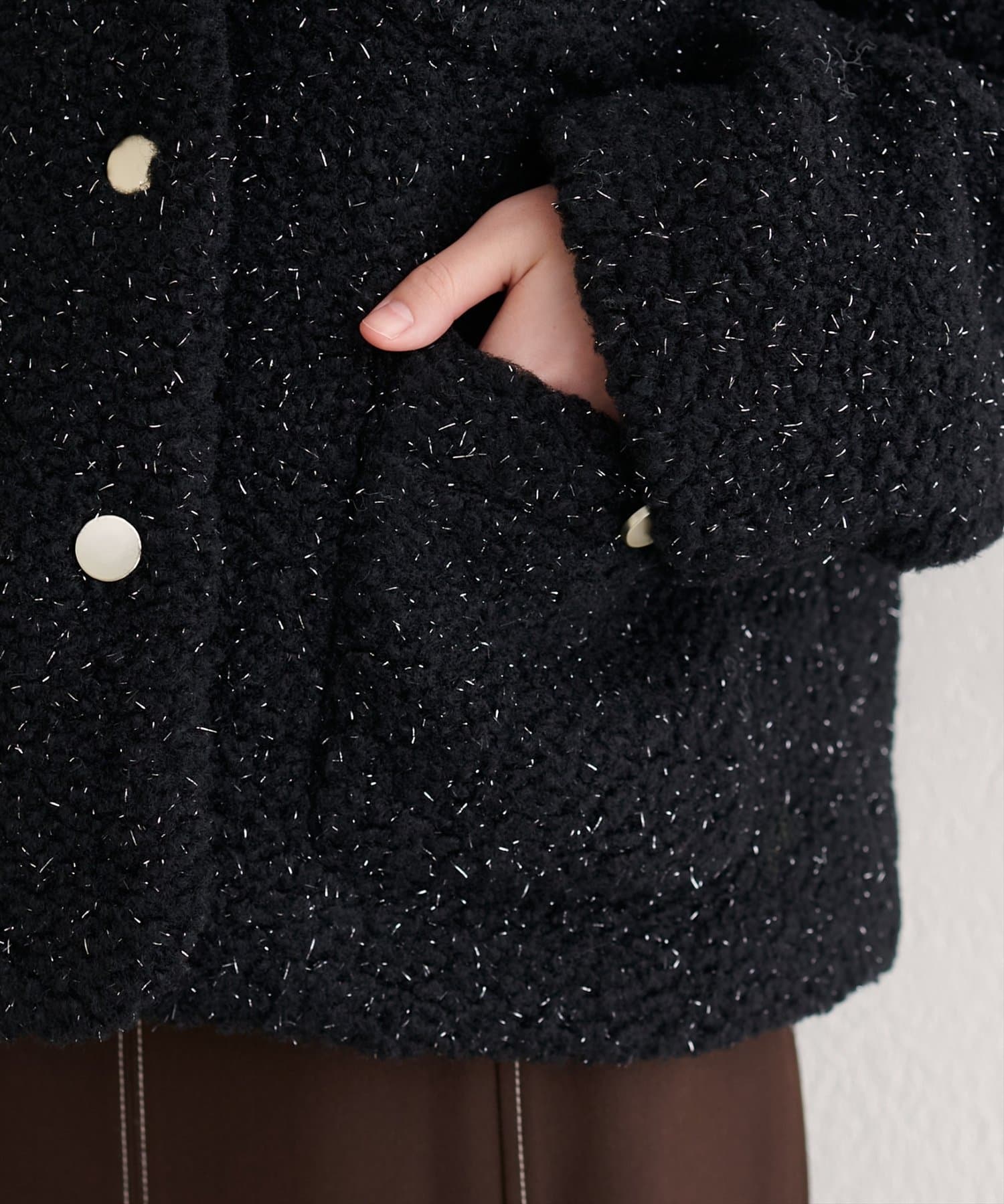 きらめくラメをまとった、大人のための特別なボアジャケット。