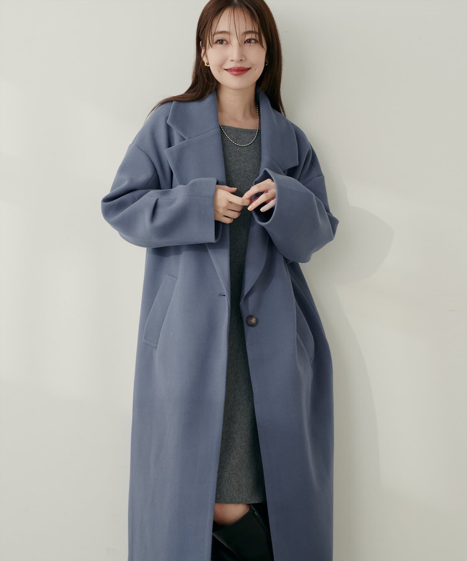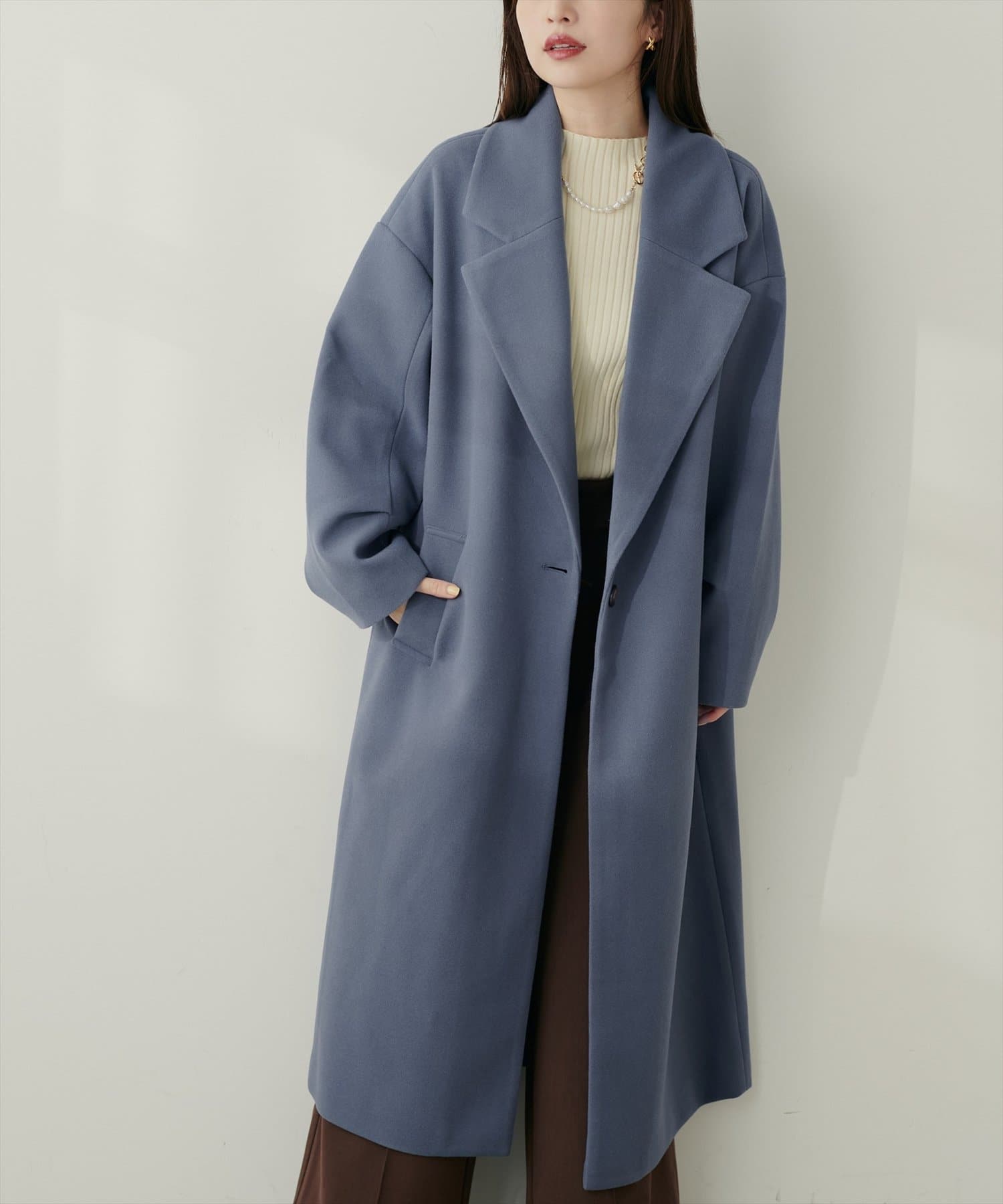 ニットモッサミドル丈テーラーコート
