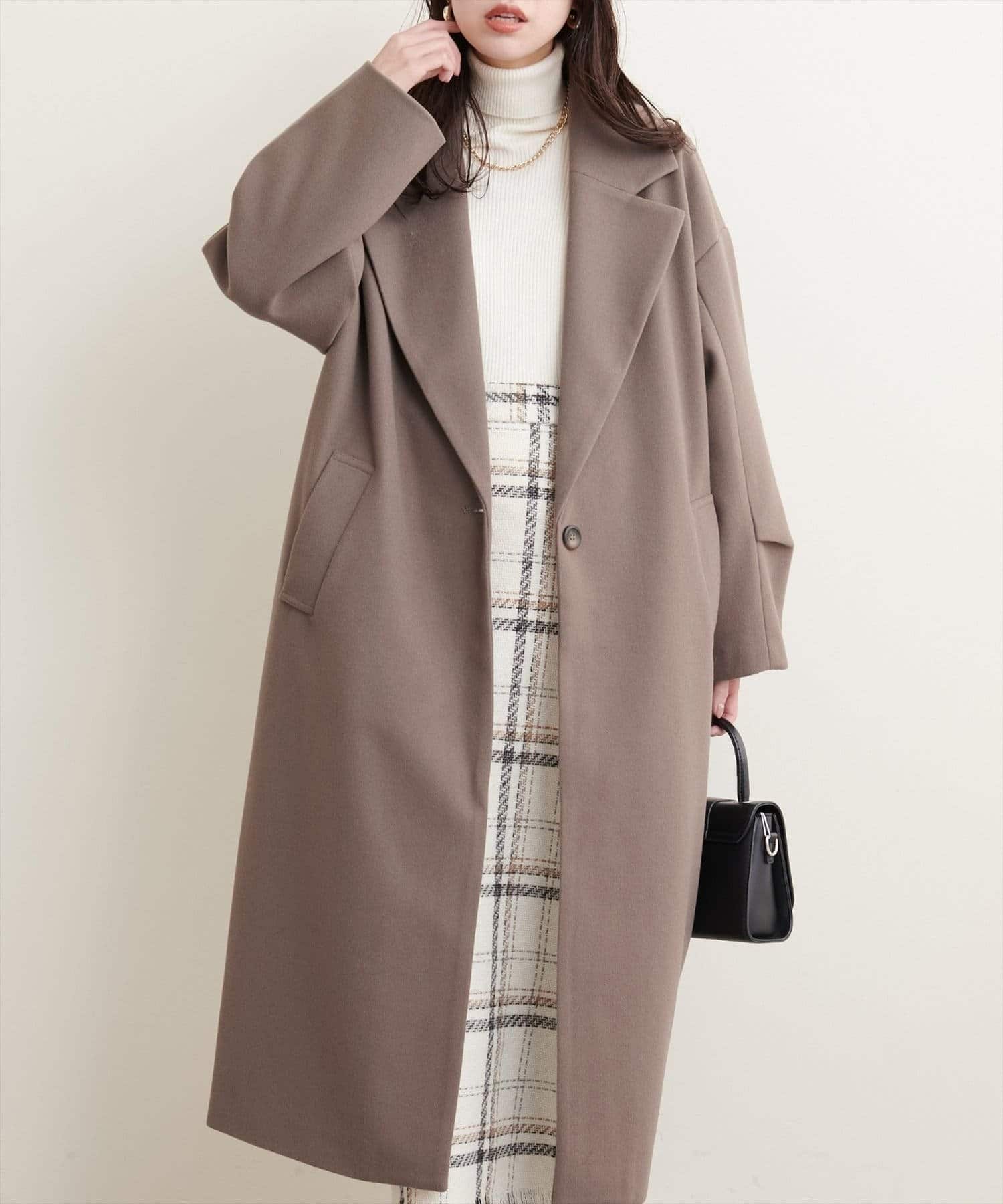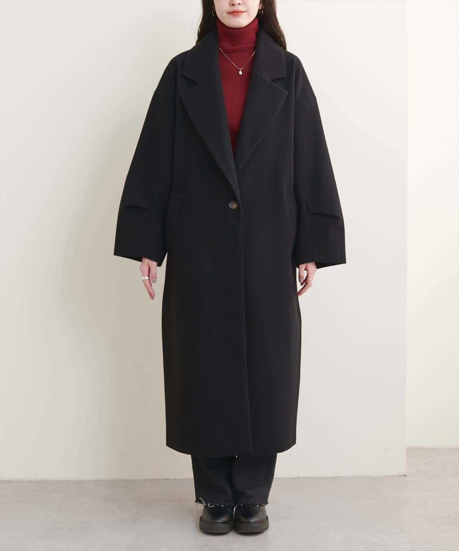 ニットモッサ袖タックチェスターコート