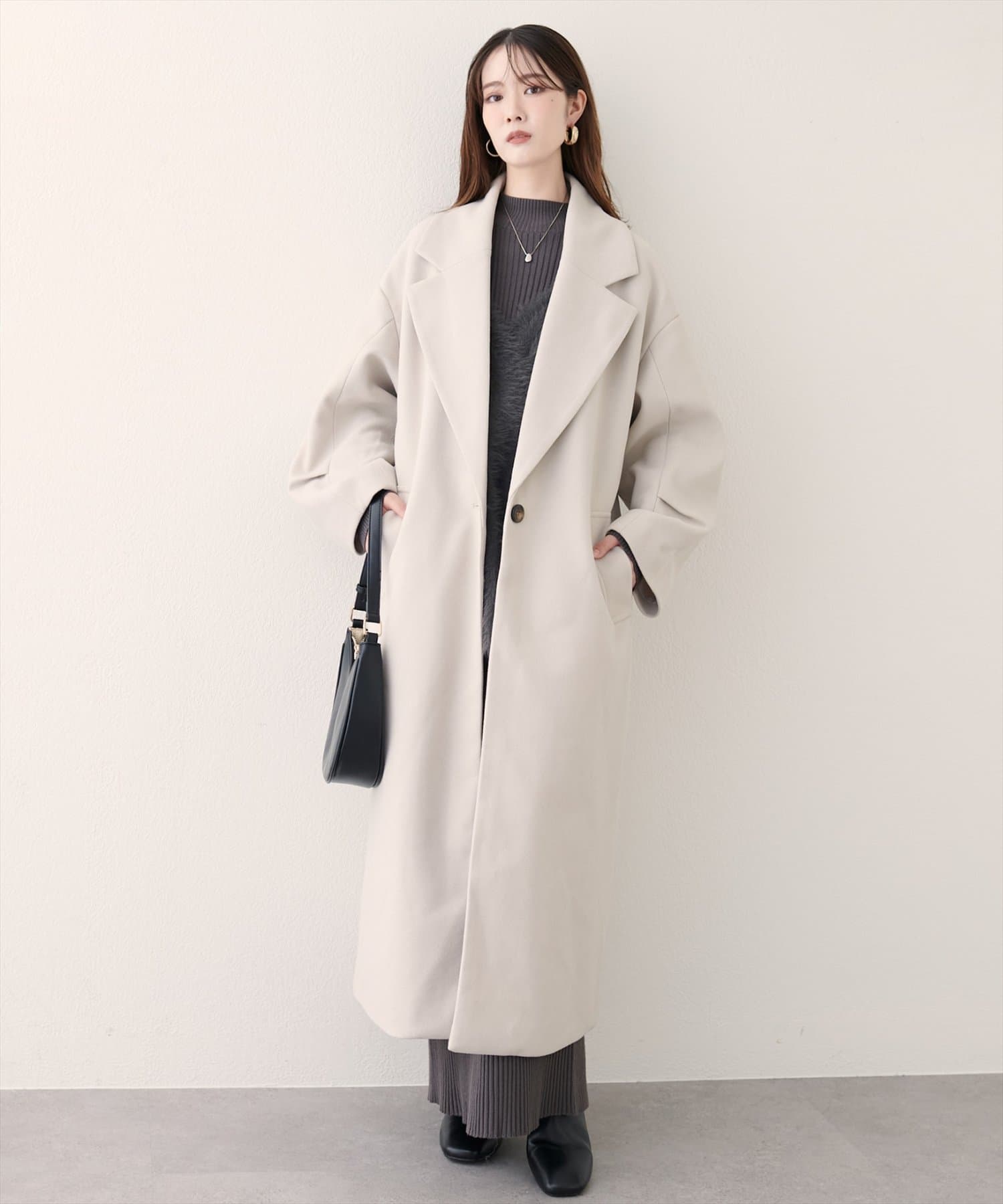 流れるようなロング丈のシルエットが、優雅で女性らしい印象を与えます。