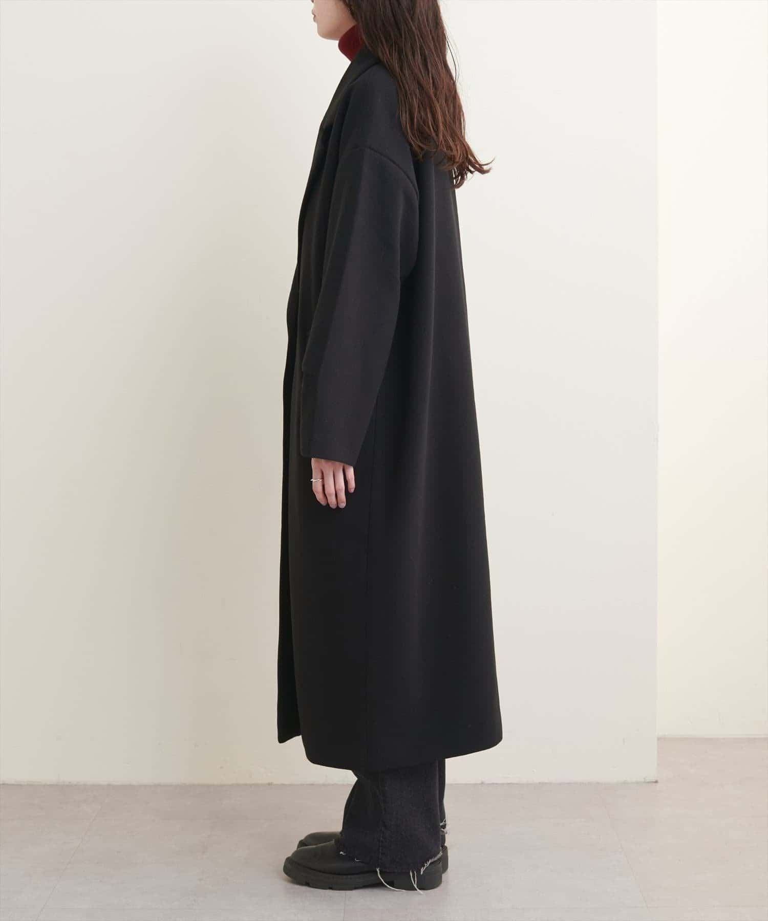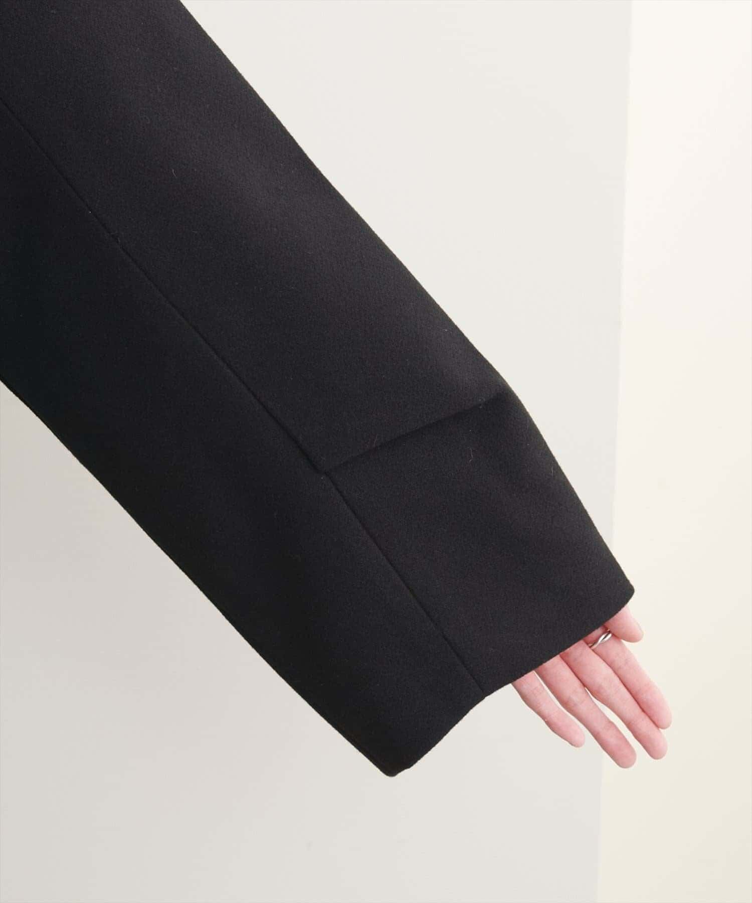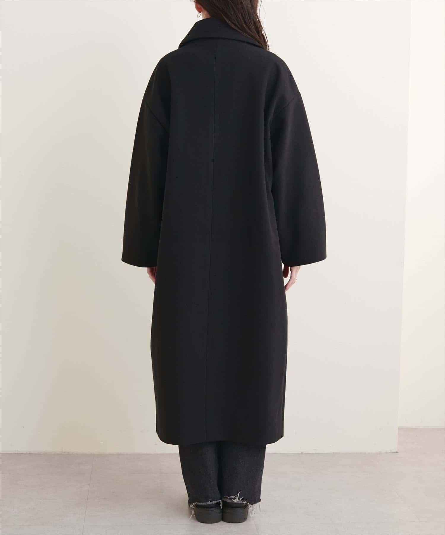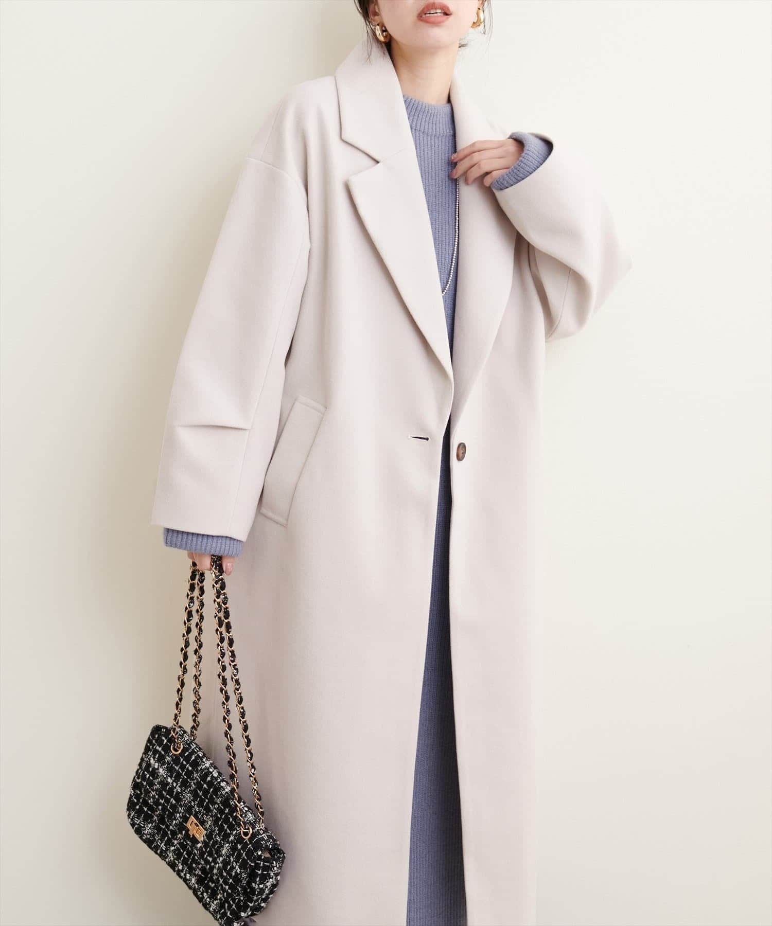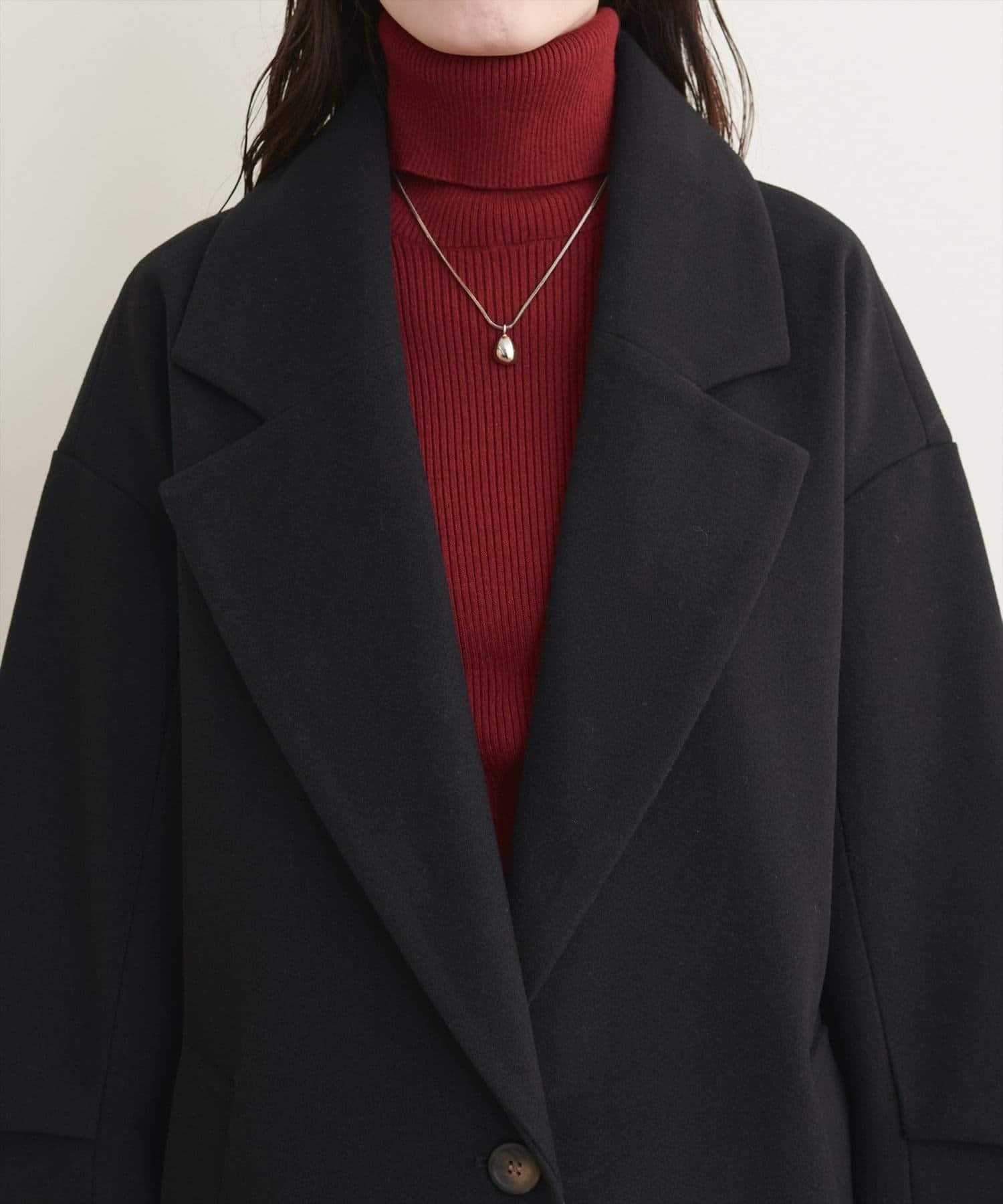 大きめの襟は顔周りをすっきりと見せ、小顔効果も期待できます。