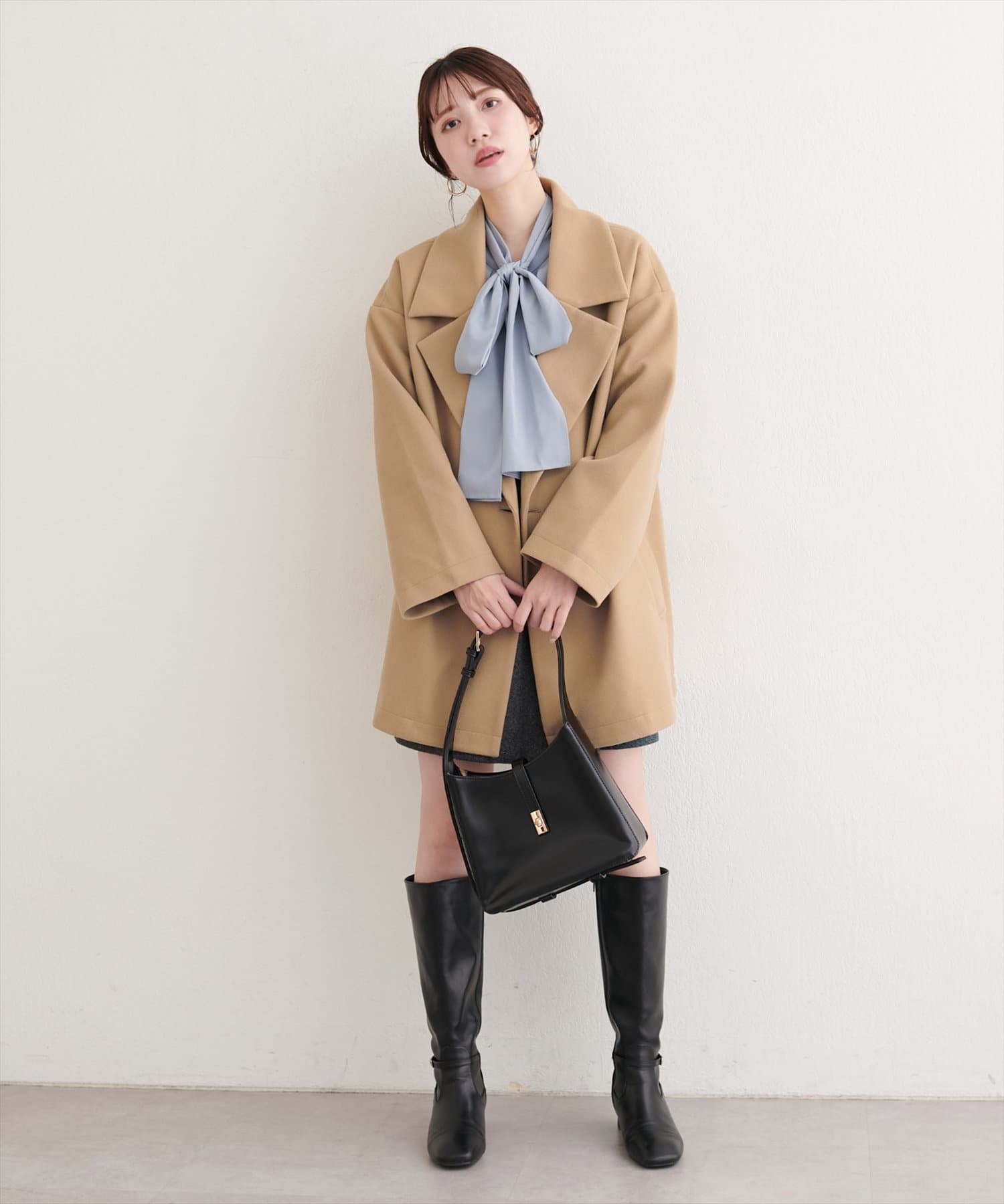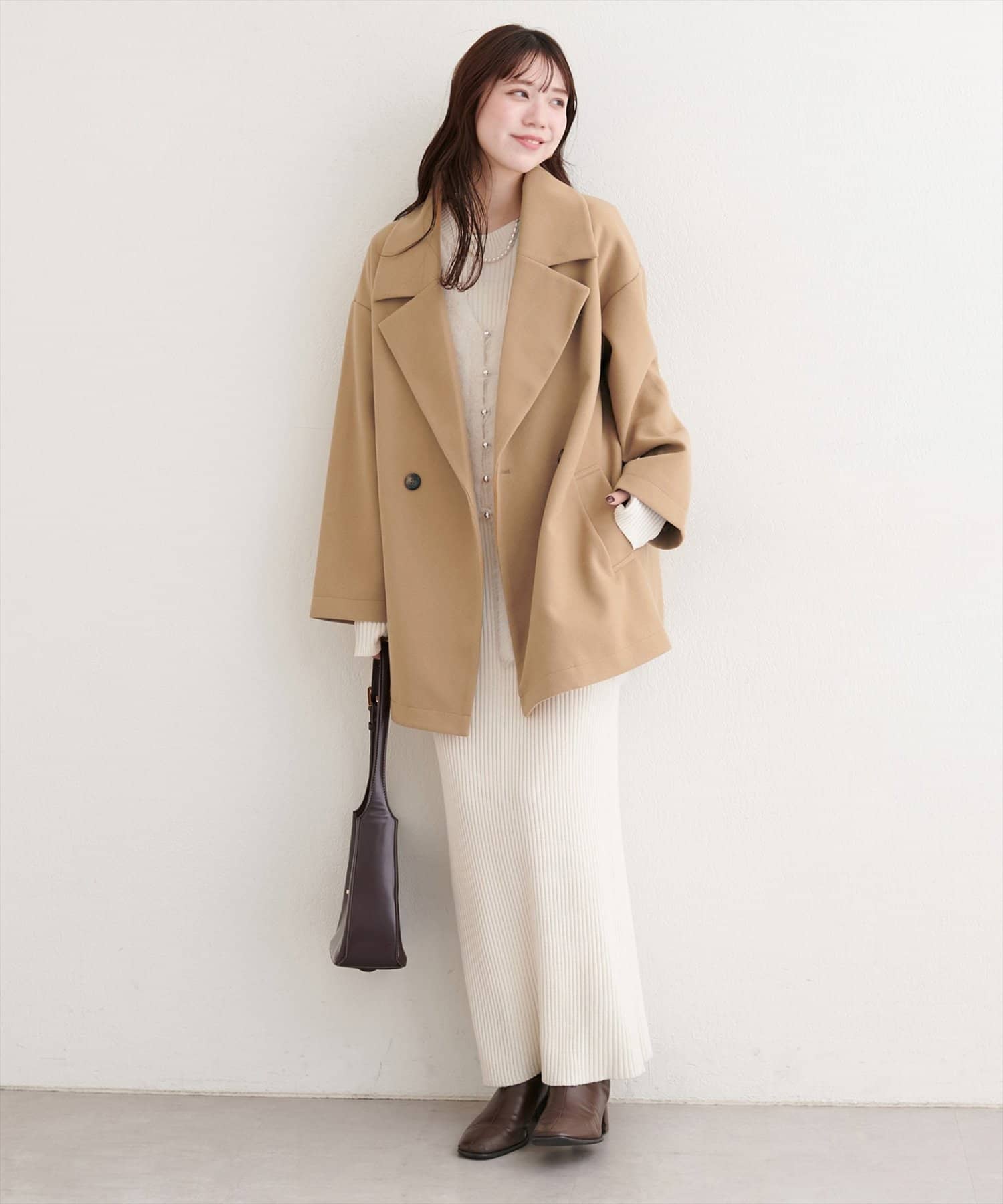 ミドル丈なので、スカートやパンツ、ワンピースなど、どんなボトムスともバランス良く決まります。