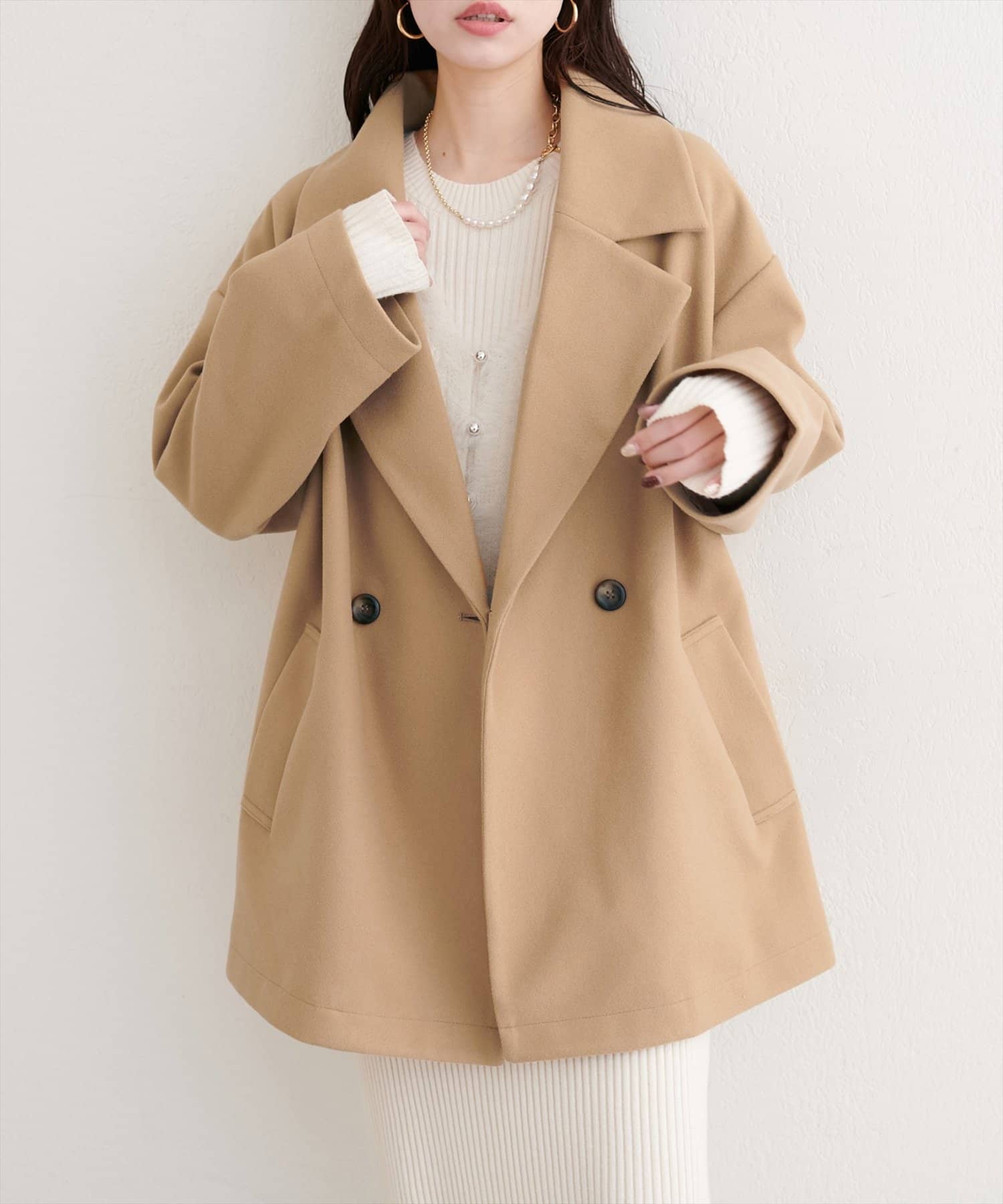 0352080060 ニットモッサ袖タックチェスターコート