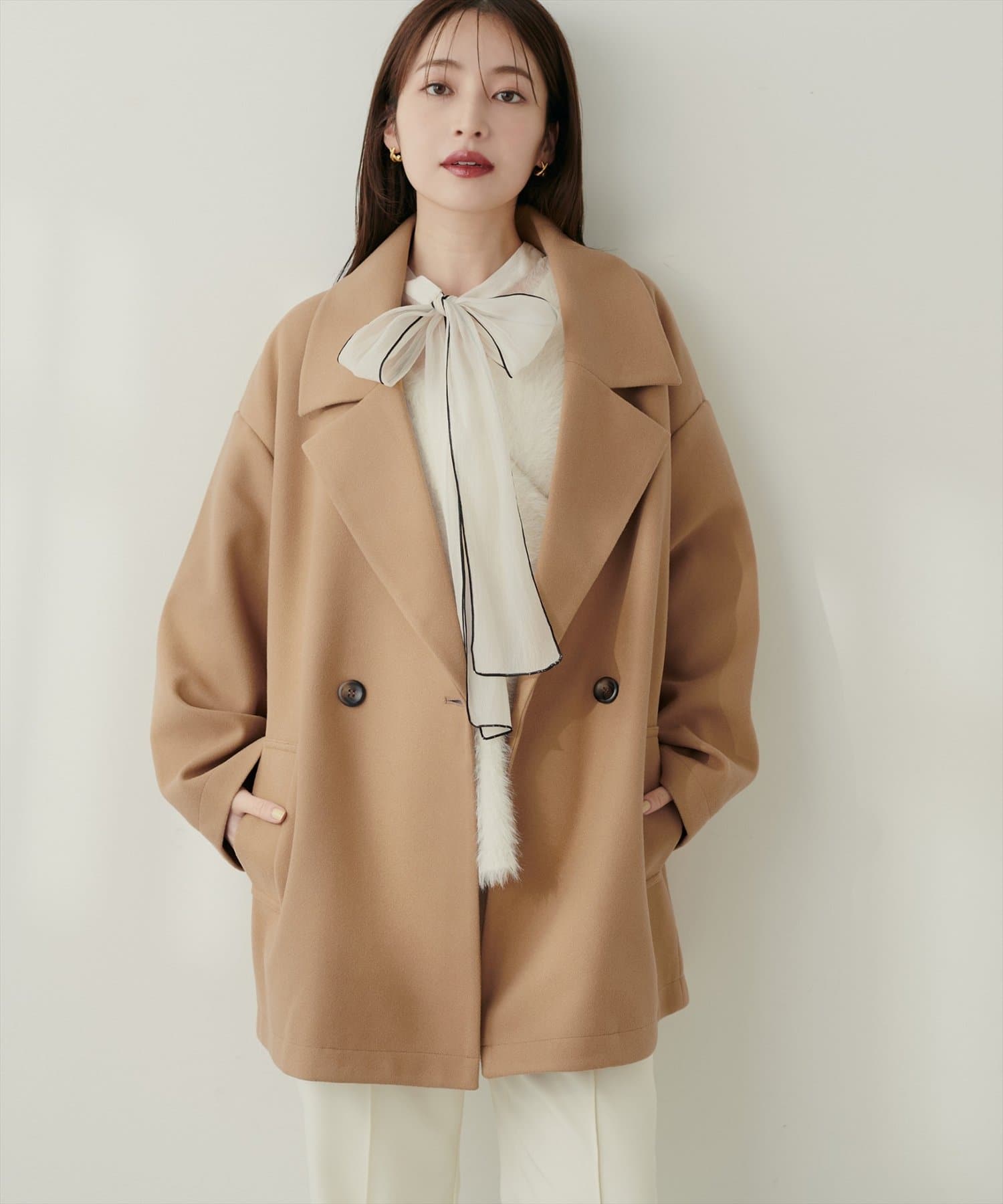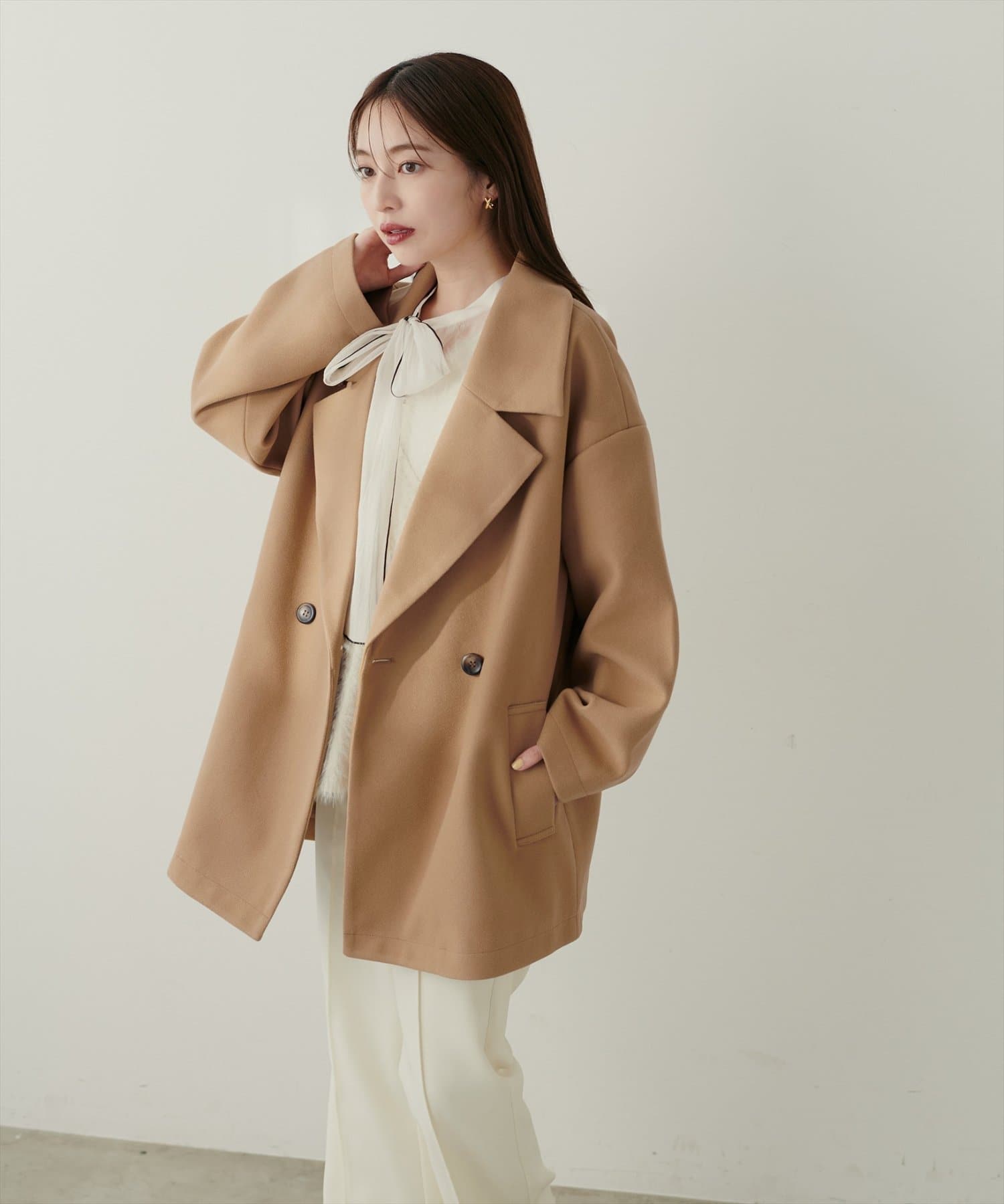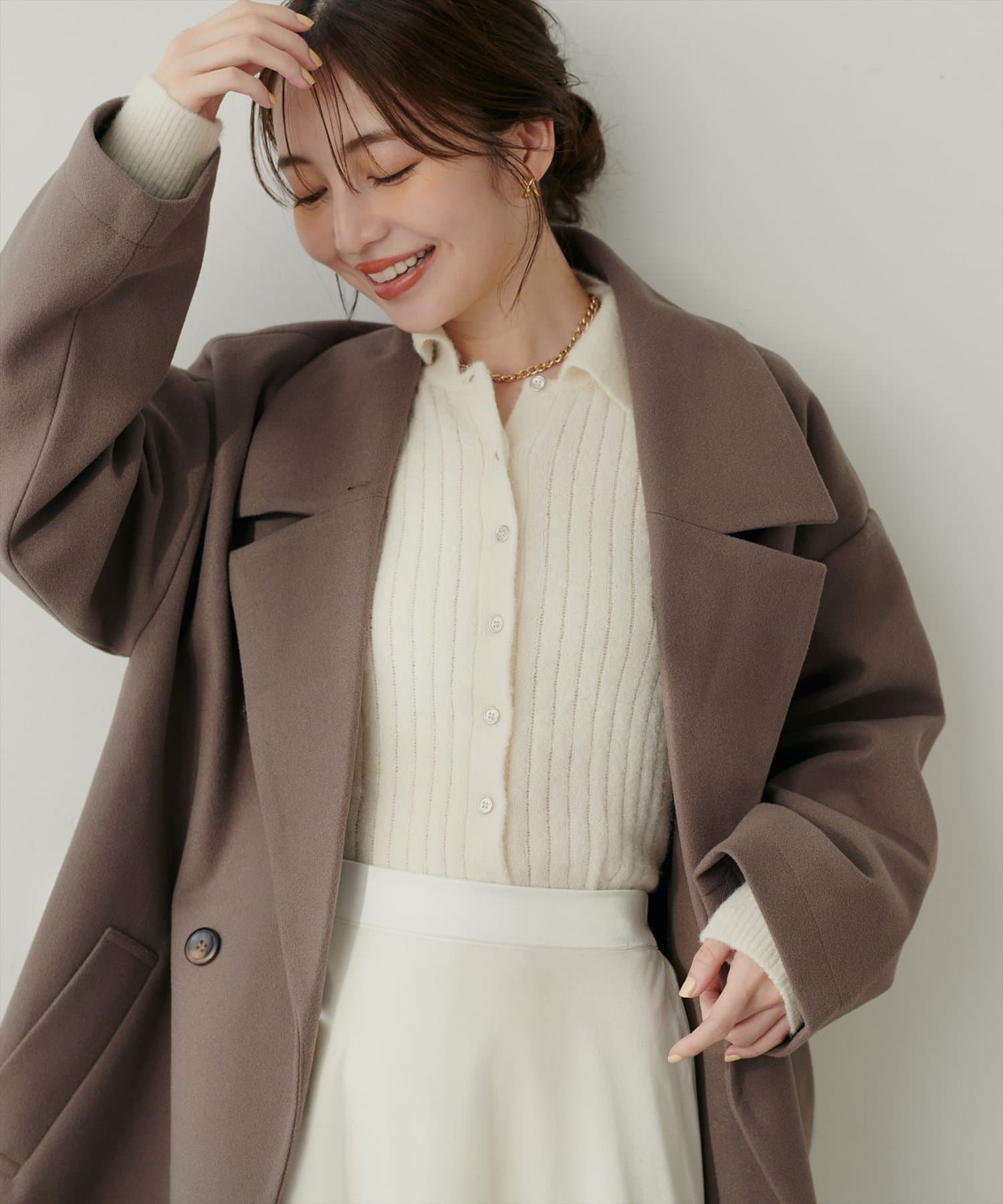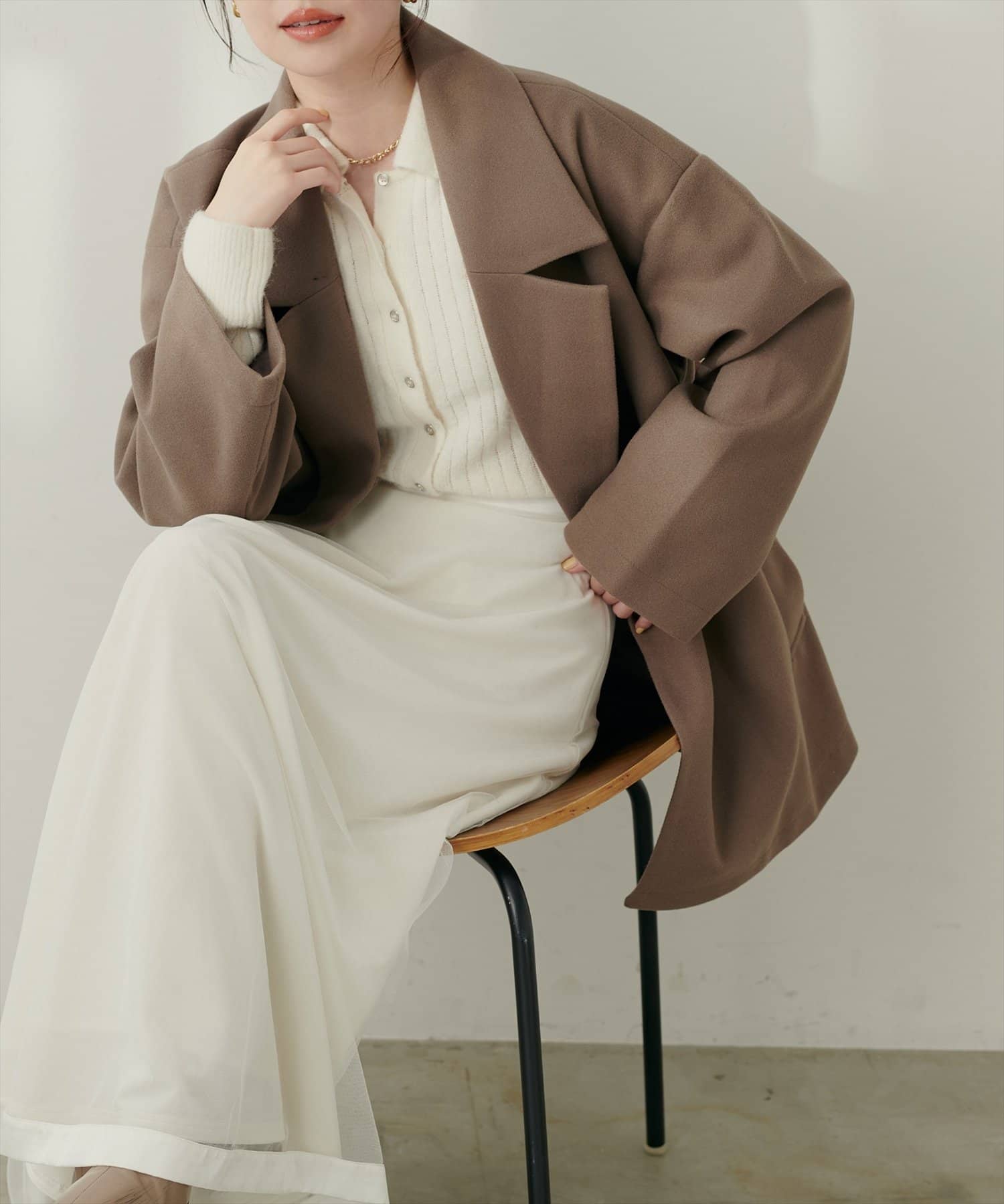 クラシカルなテーラードカラーが、顔周りをシャープに引き立てます。