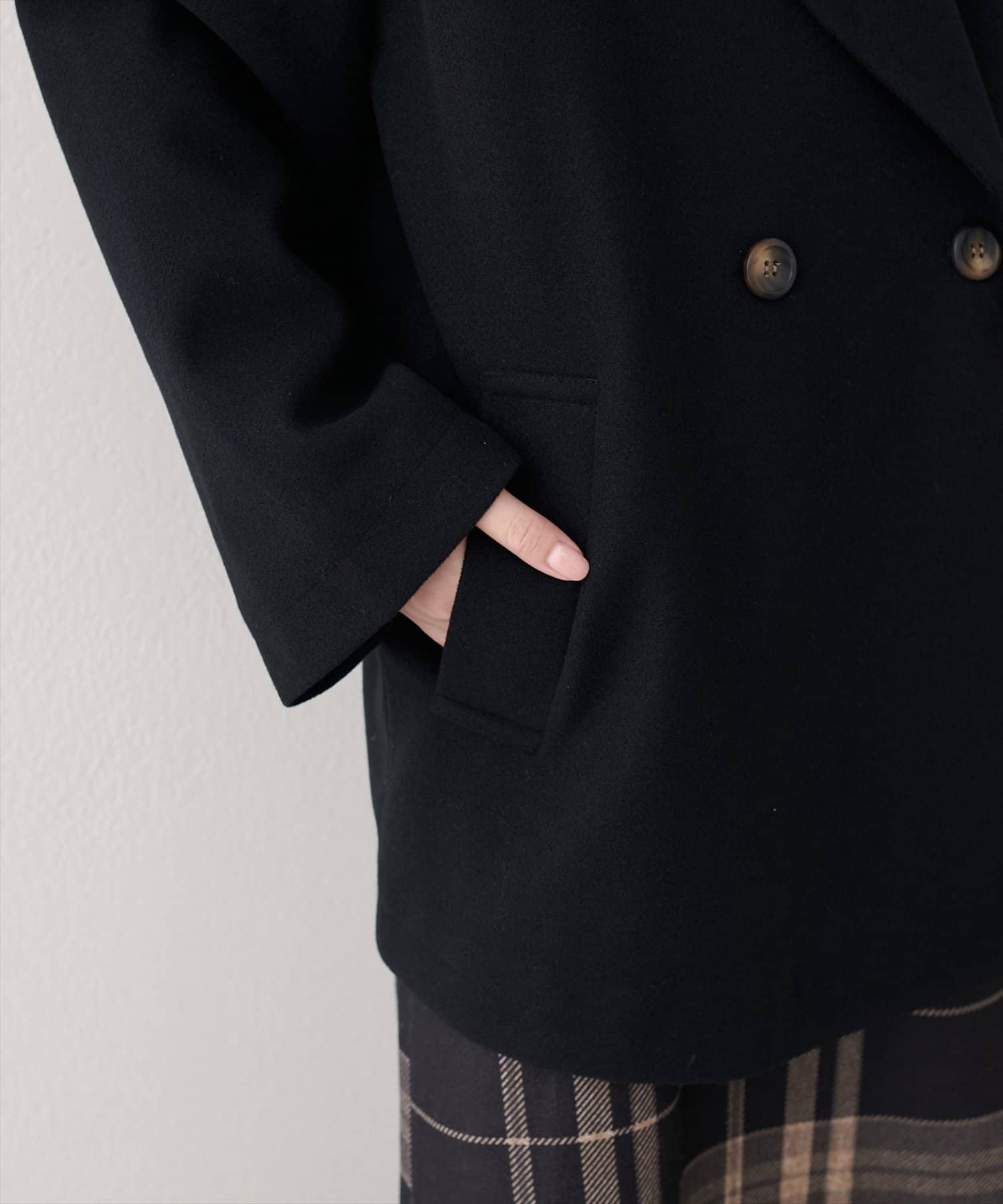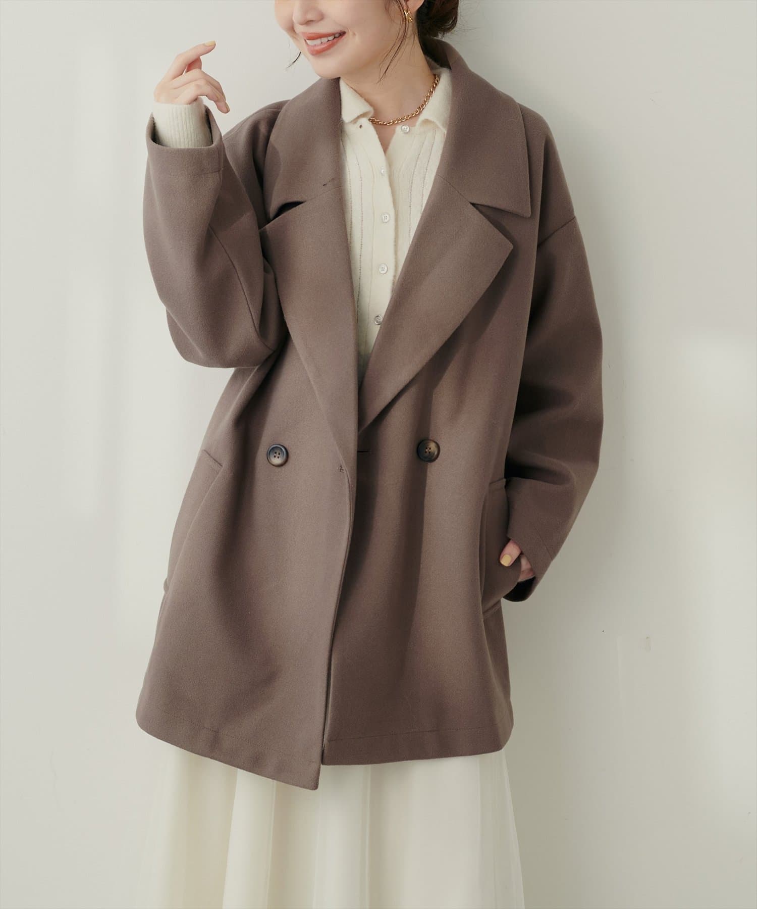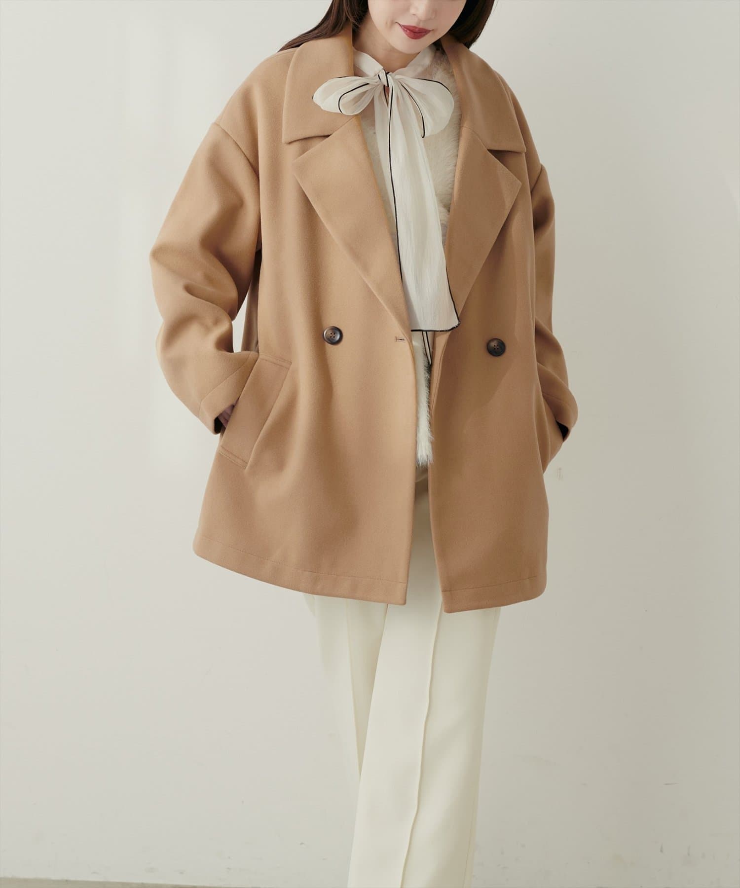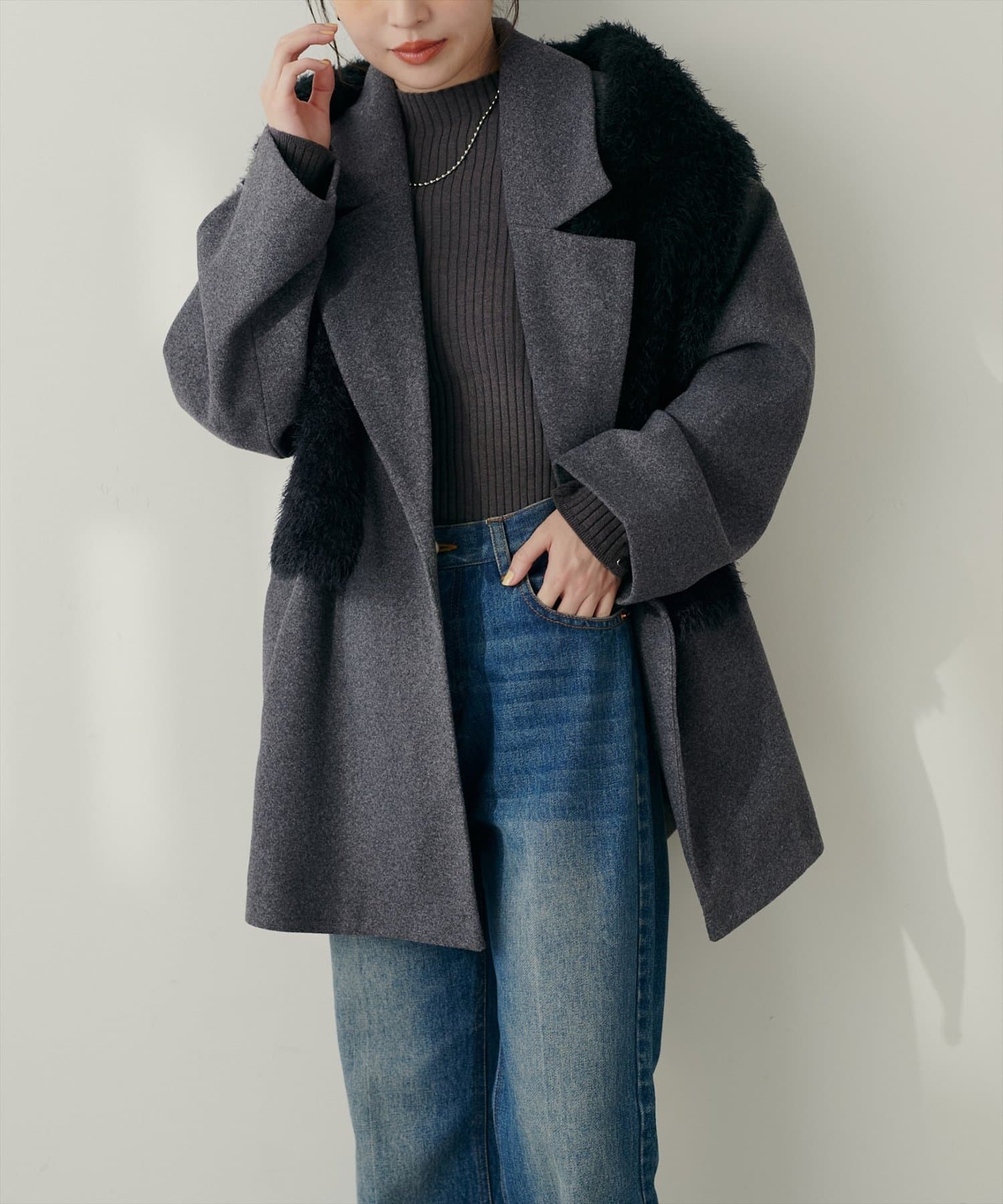 クラシカルなテーラードカラーが、顔周りをシャープに引き立てます。