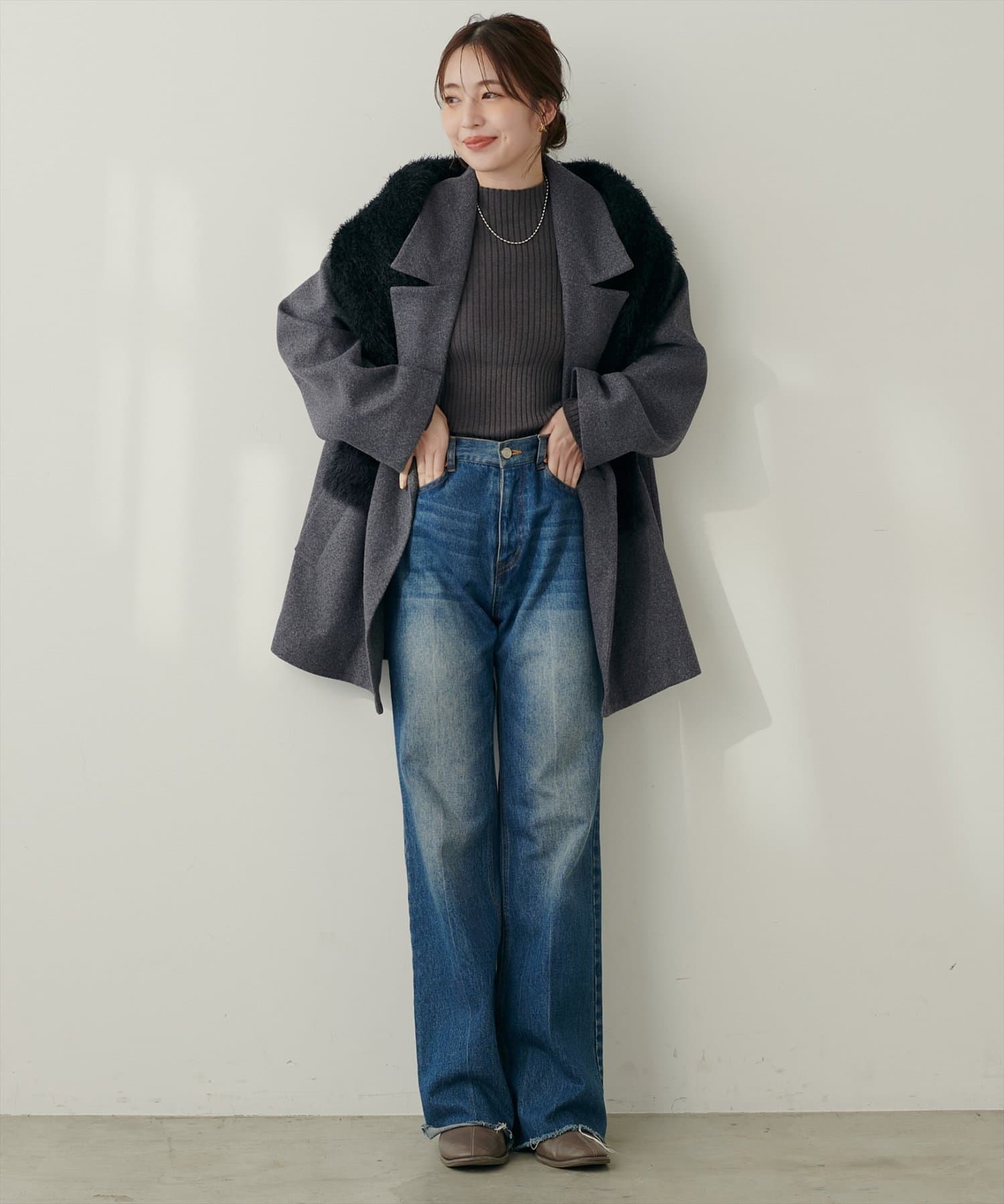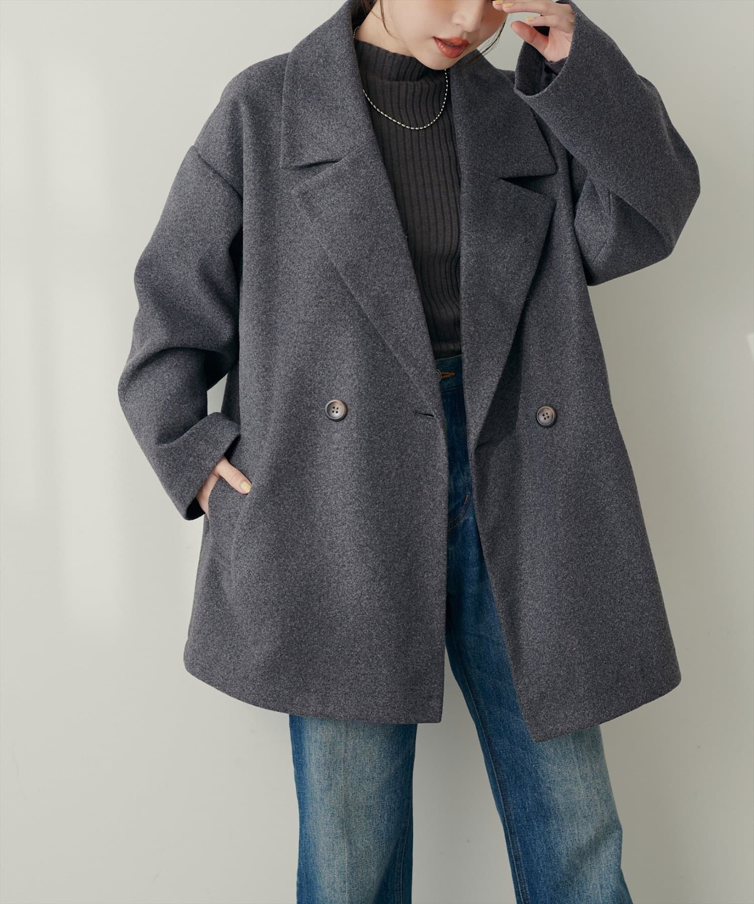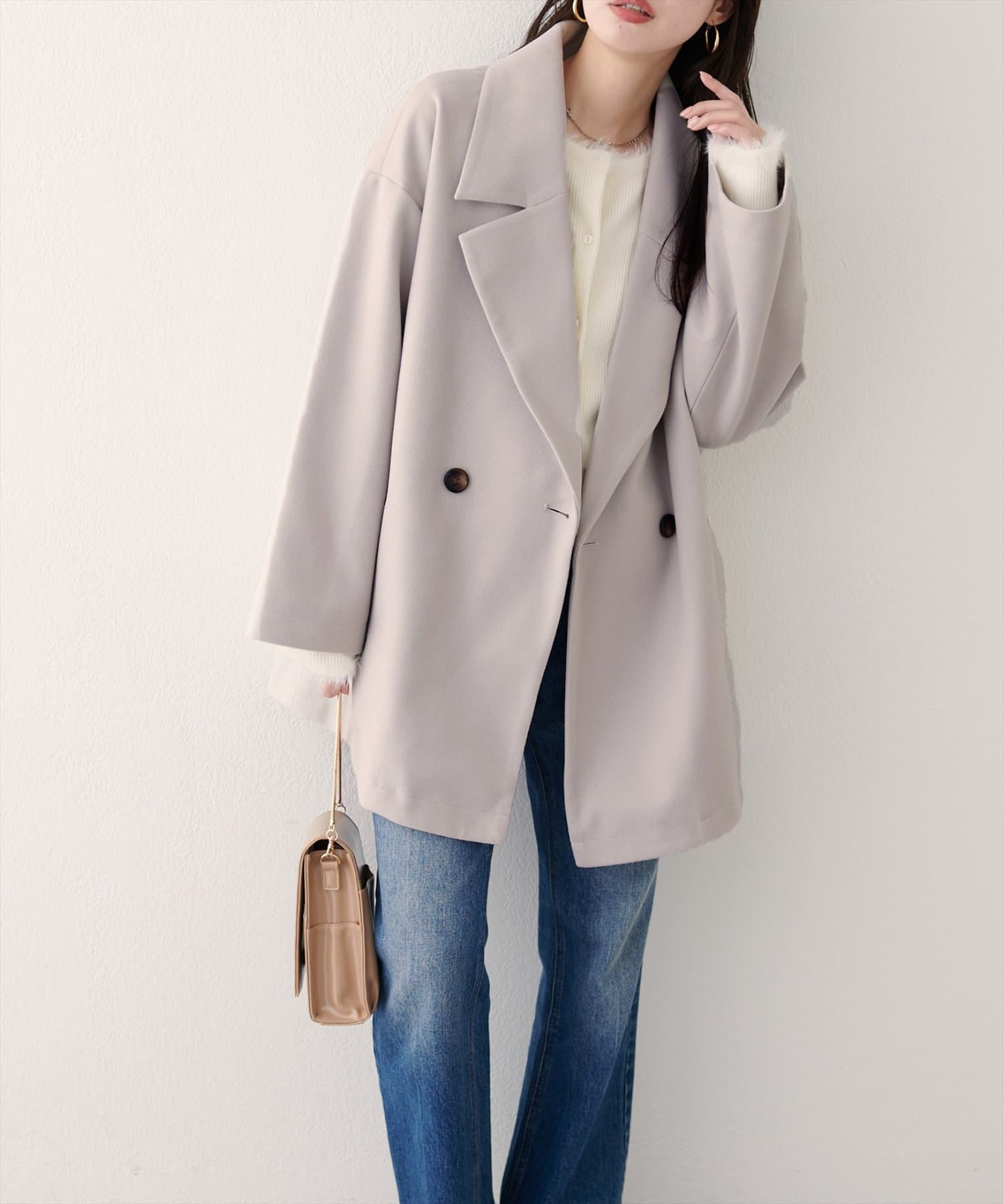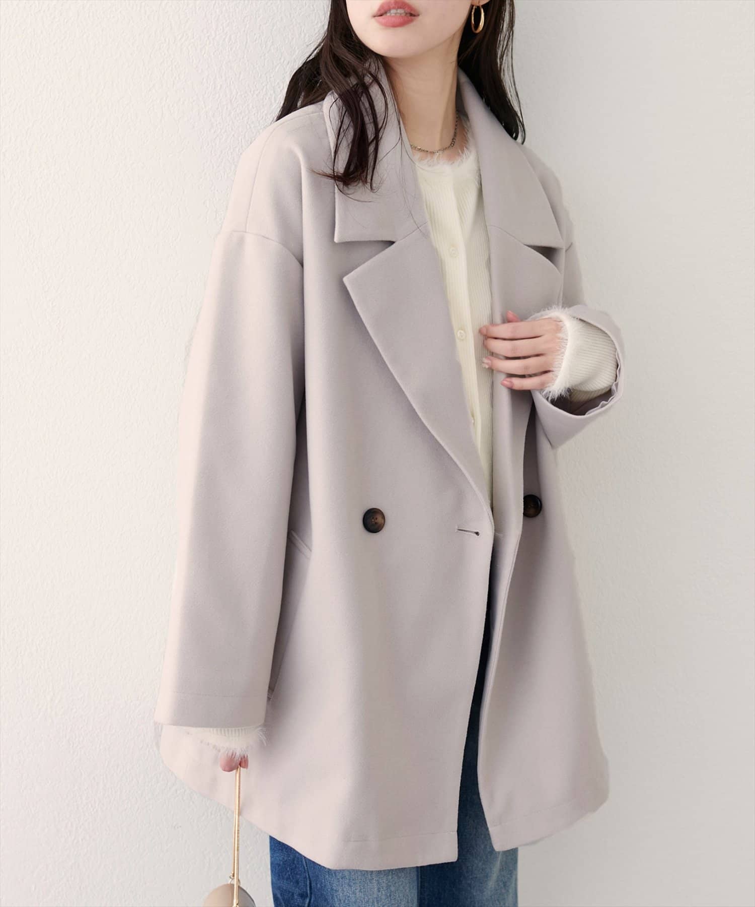 クラシカルなテーラードカラーが、顔周りをシャープに引き立てます。