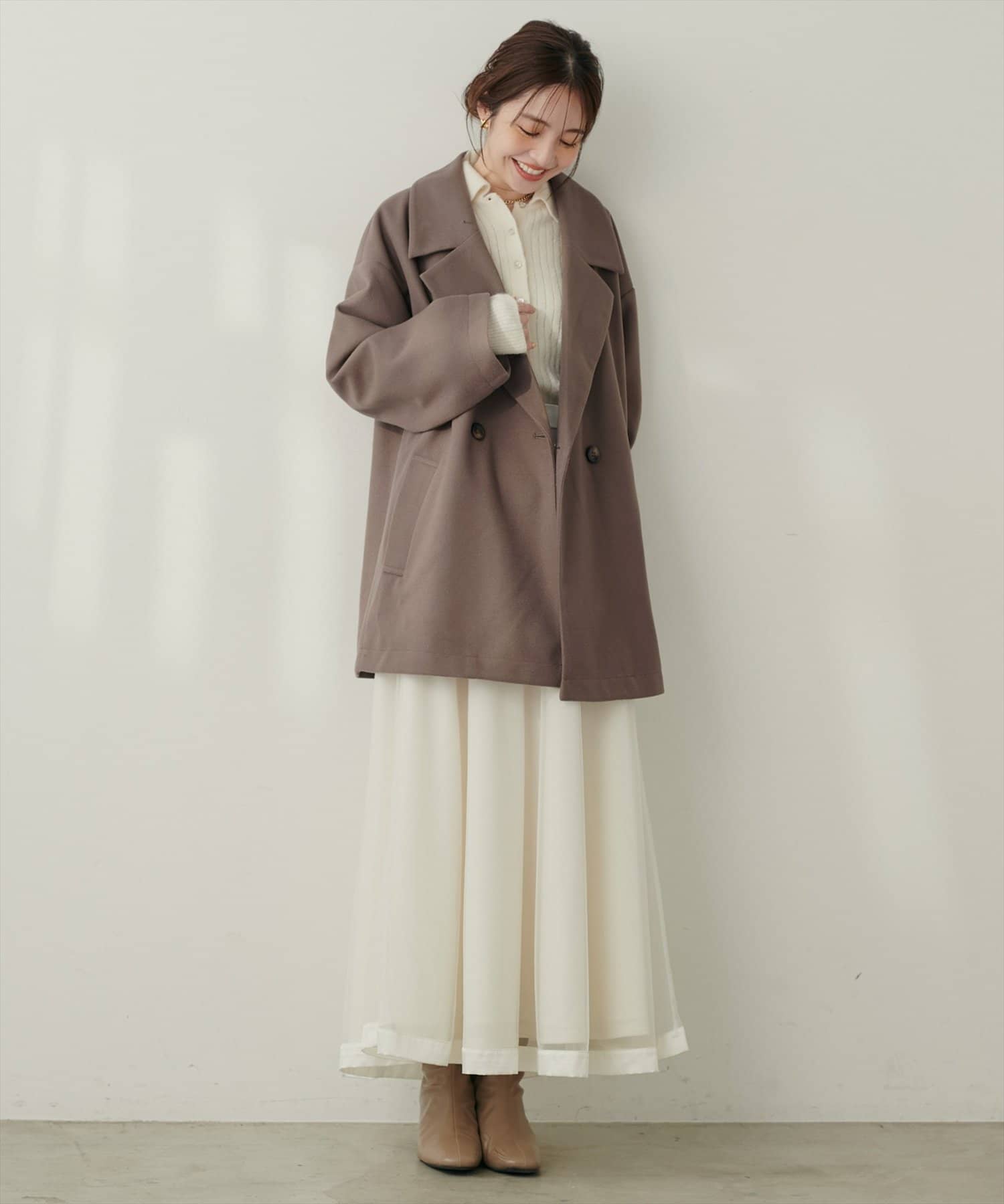 ミドル丈なので、スカートやパンツ、ワンピースなど、どんなボトムスともバランス良く決まります。
