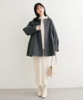 ラグランスリーブで肩まわりにゆとりがあり、厚手のニットやインナーダウンを合わせても快適に着られます。