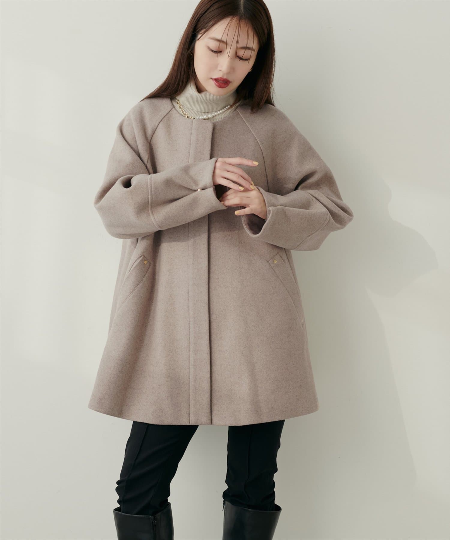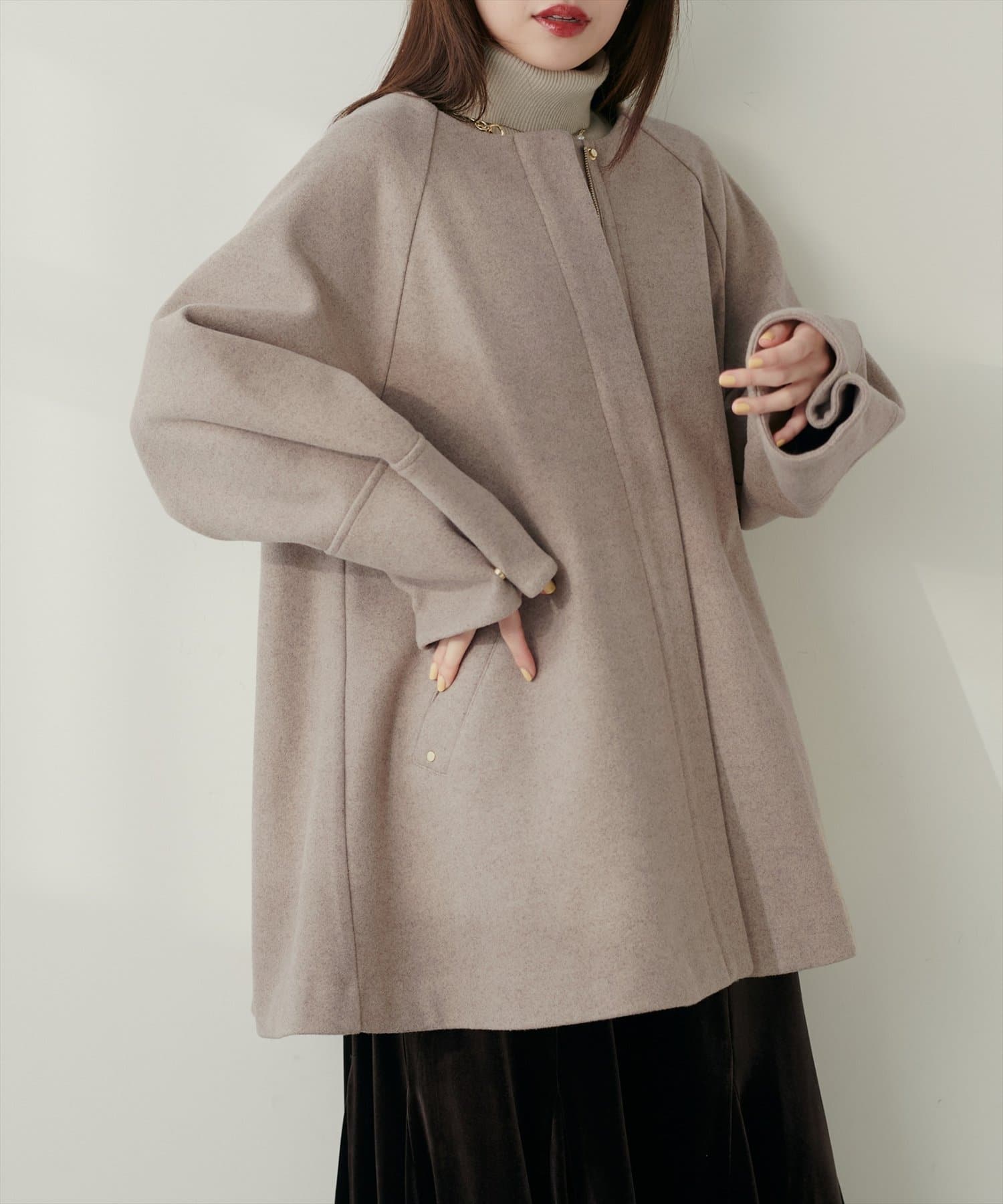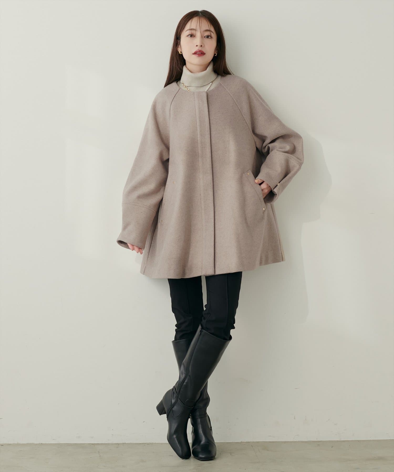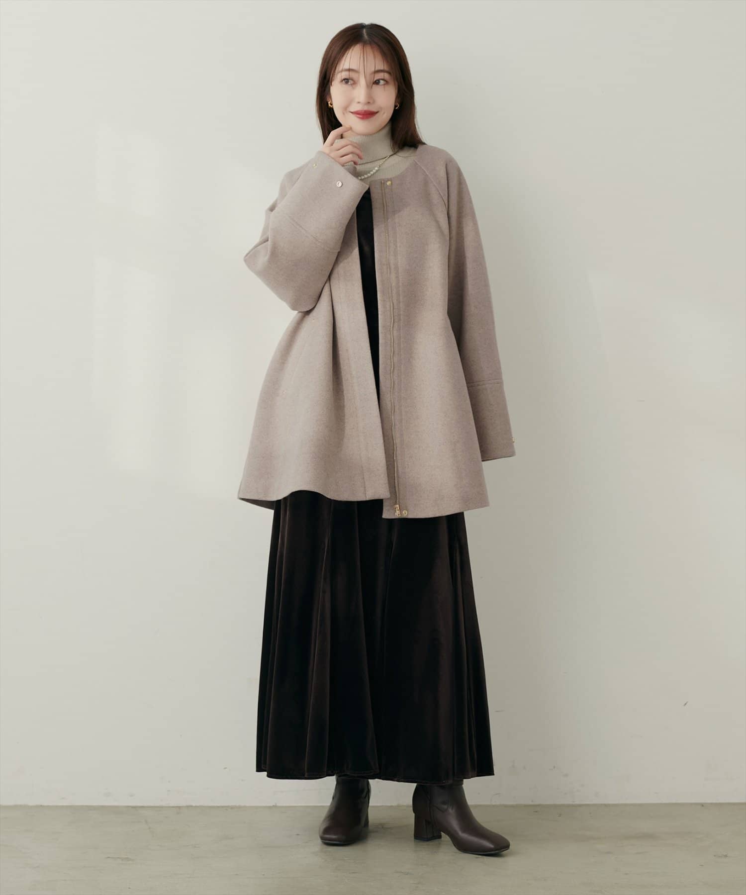 ノーカラー仕様なのでマフラーやストールを合わせてもすっきり見え、首元のアレンジも楽しめます。