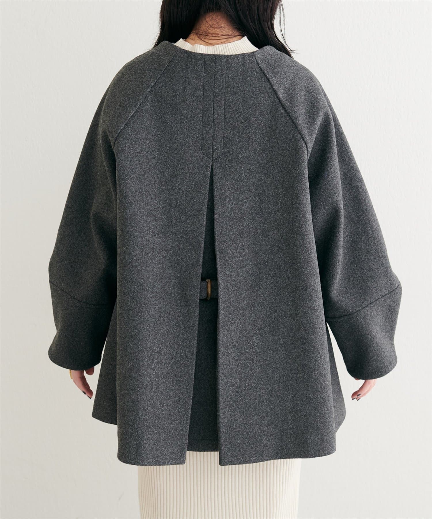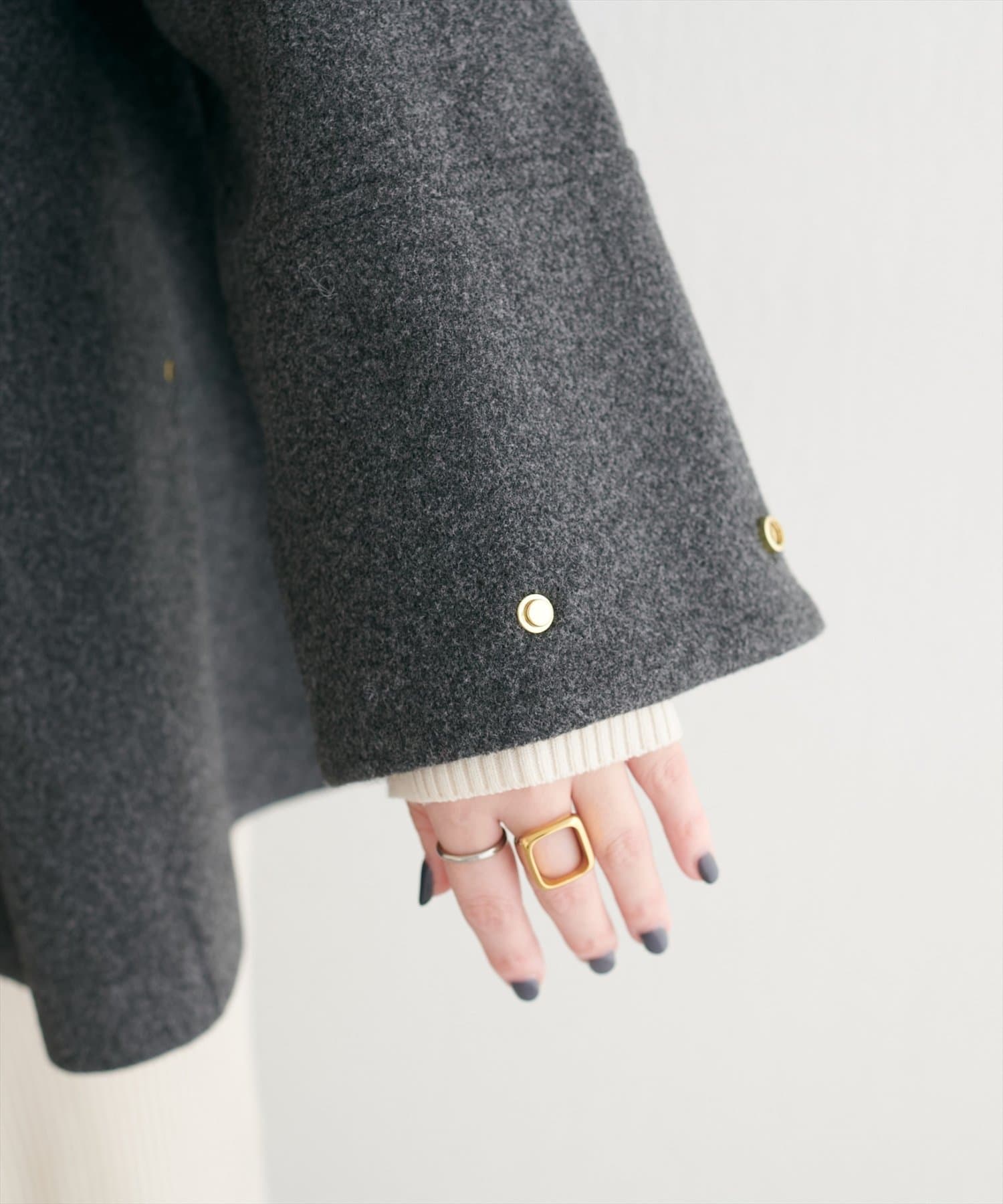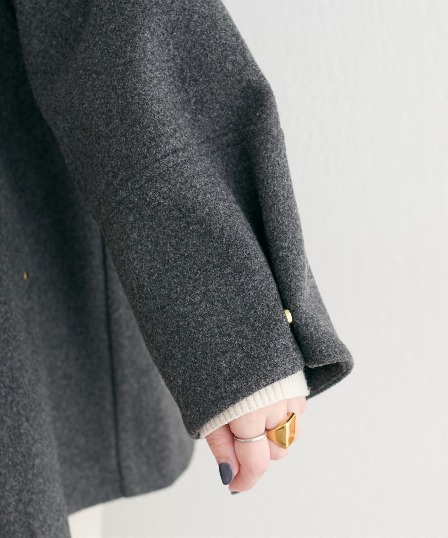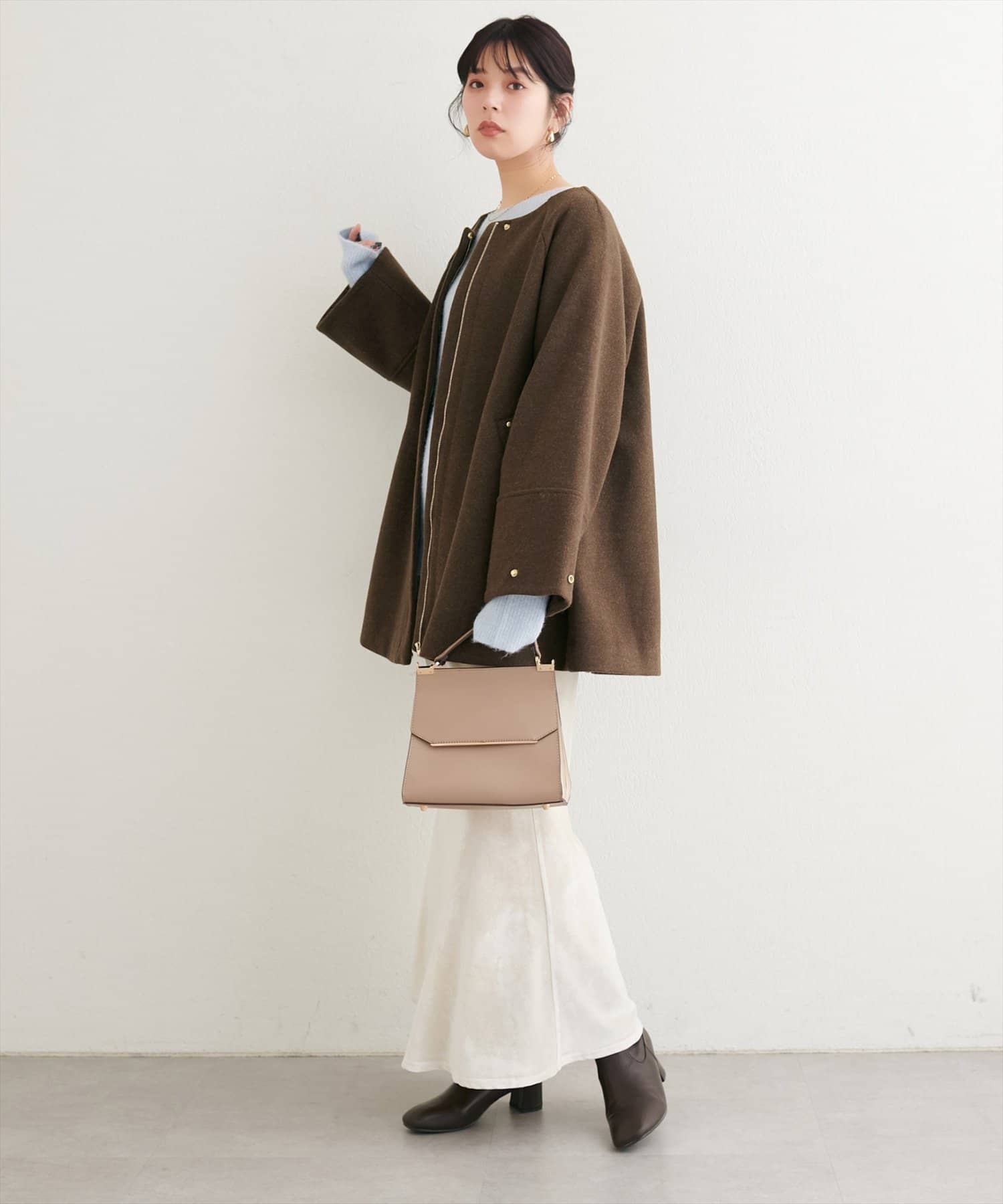 ノーカラー仕様なのでマフラーやストールを合わせてもすっきり見え、首元のアレンジも楽しめます。