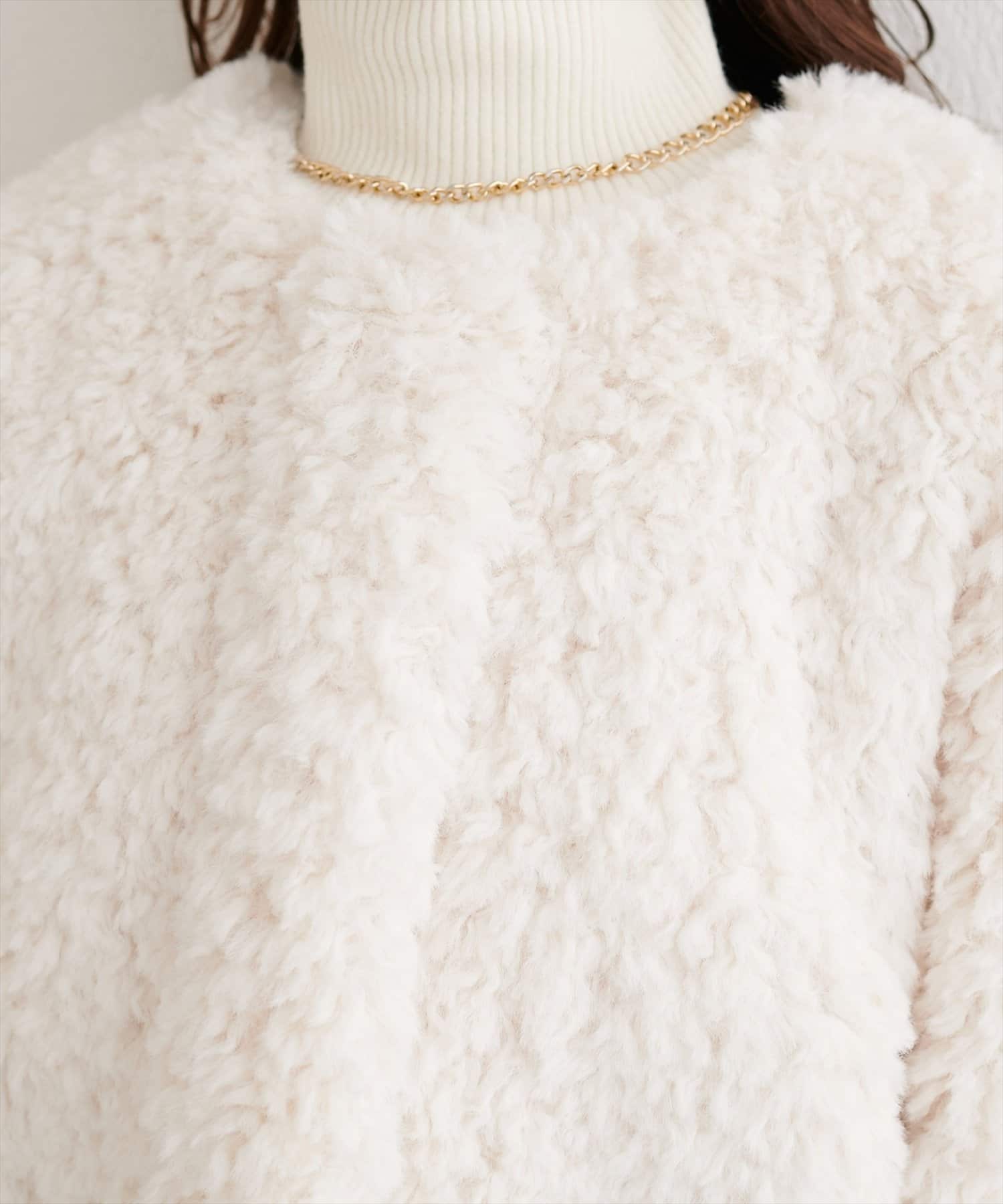 全体を覆うボア素材が、女性らしい柔らかな雰囲気を演出。